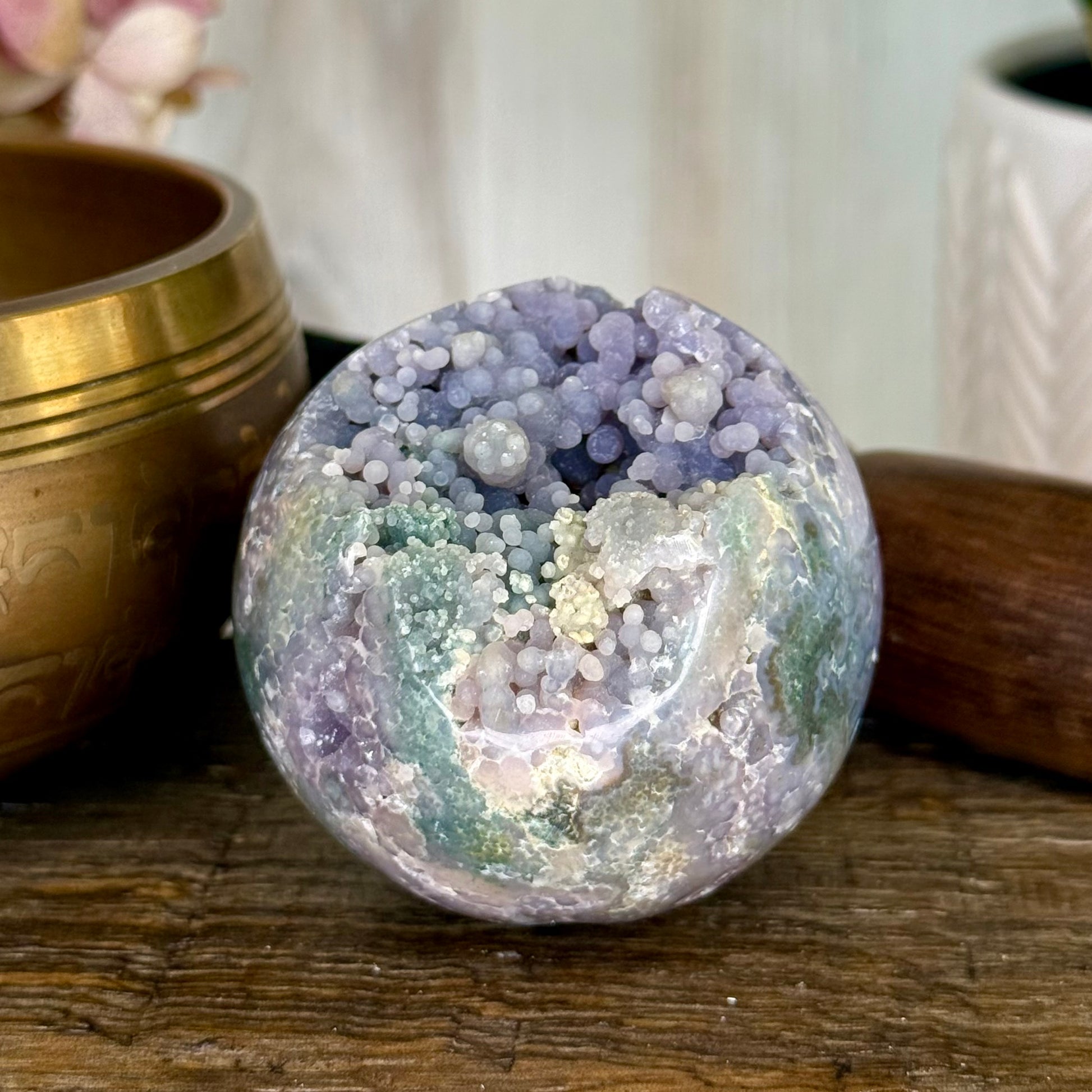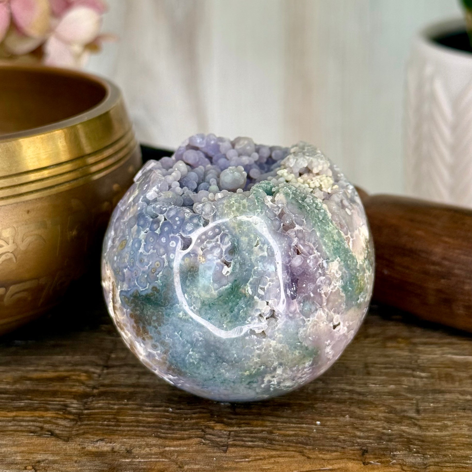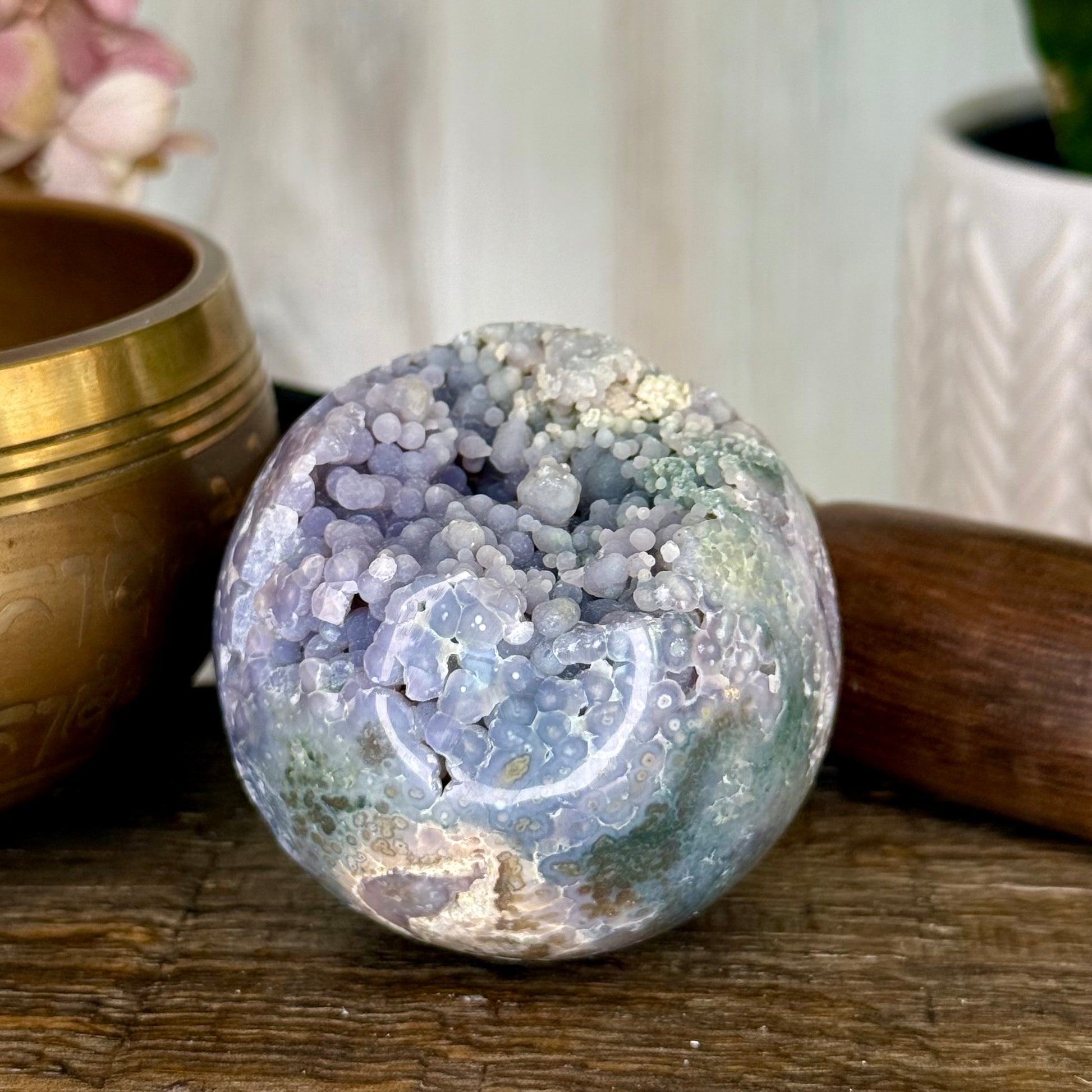 A stone for the mind, improved focus, drive, & concentration // Can help focus energy & attention on what is wanted & where you may need to go to get there // It is calming, soothing & is generally a happy stone // Great for meditation // Works well in a home, office or sacred space, bringing tranquil energy to any larger space // Vibrates at such a high frequency & allows one to transition between this realm & higher realms with ease // A powerful intuitive stone that activates and links the crown and third eye chakras together.
