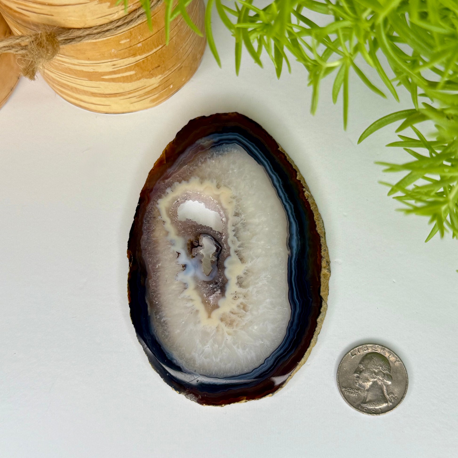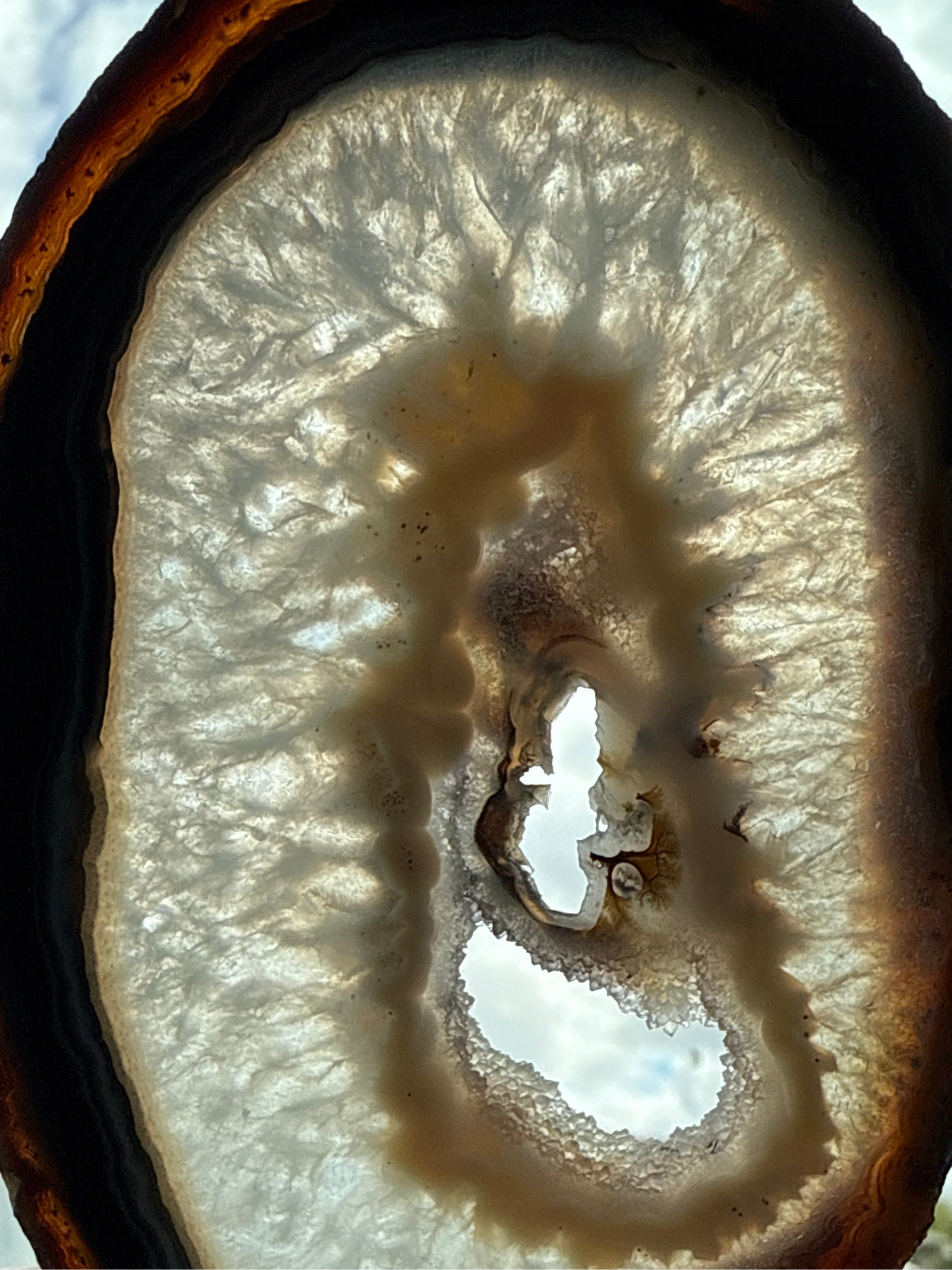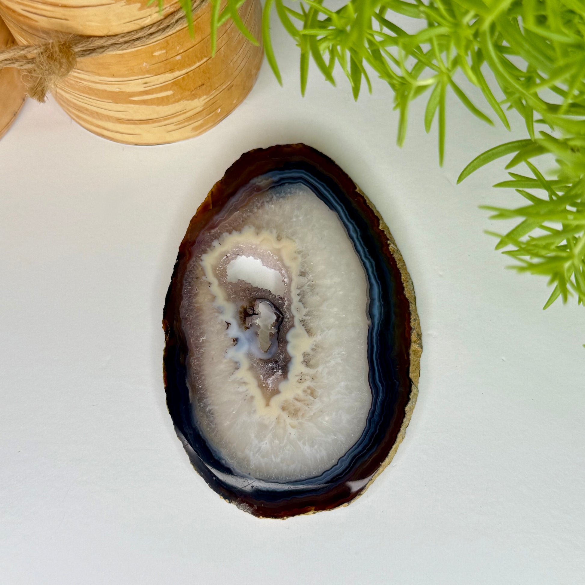 Agate is a variety of banded chalcedony, a microcrystalline form of Quartz known for its layered patterns and earthy hues // Found worldwide, Agate forms in volcanic rock cavities over time, creating uniquely beautiful bands that reflect its slow, grounding energy // Though it carries a lower intensity than some crystals, agate is revered for its deeply stabilizing and harmonizing influence.