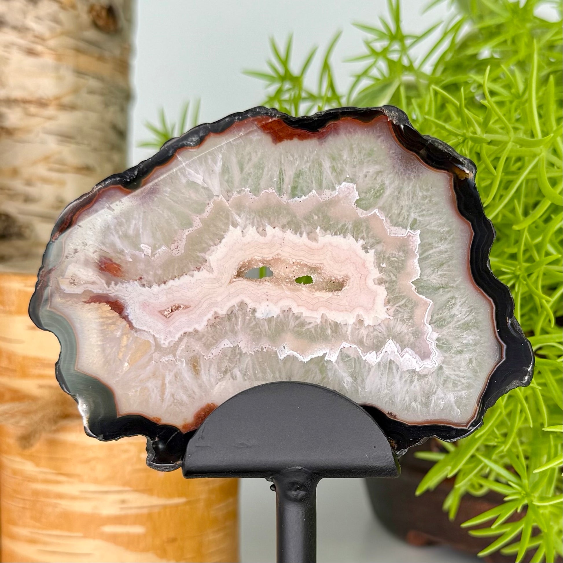 A stone of balance, protection, and gentle strength // Agate helps align emotional, physical, and mental bodies, promoting maturity, self-control, and inner stability // Its calming vibration encourages self-confidence and a steady sense of security, especially during periods of stress or transition // It’s also known for its powerful aura-cleansing properties, helping to transform and release negative energies on all levels.