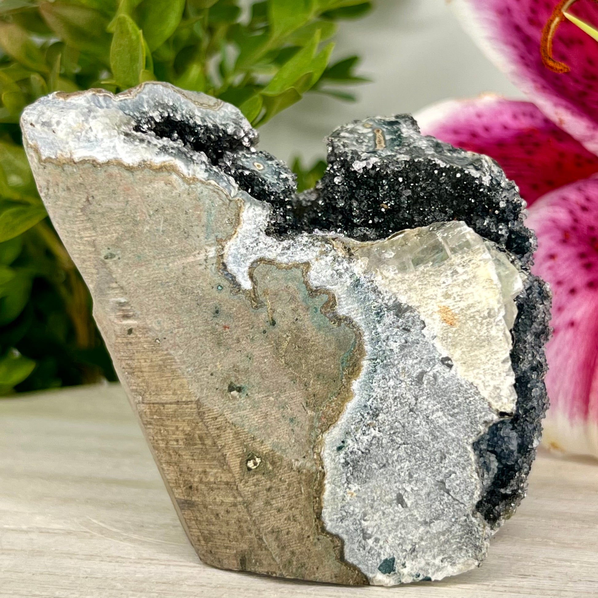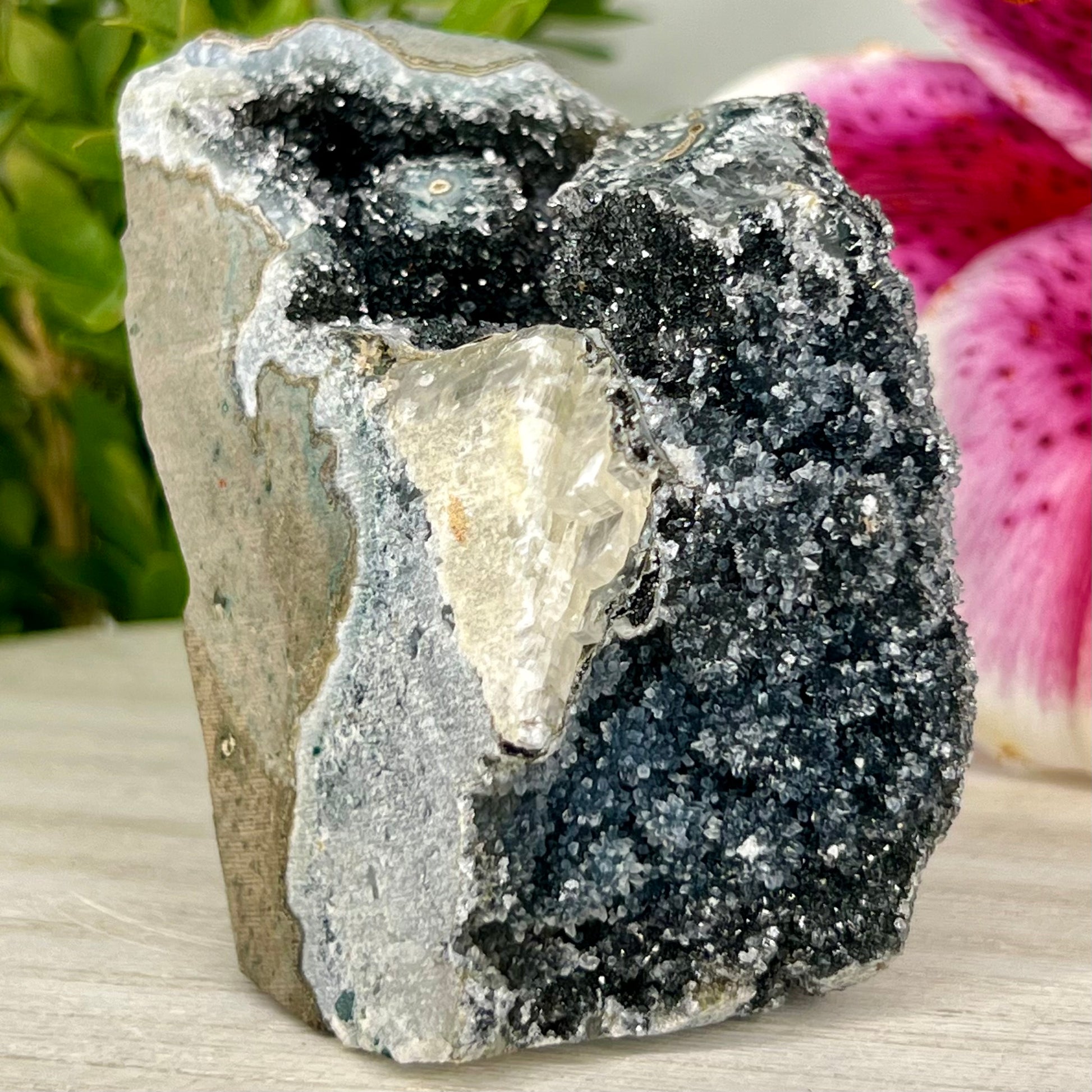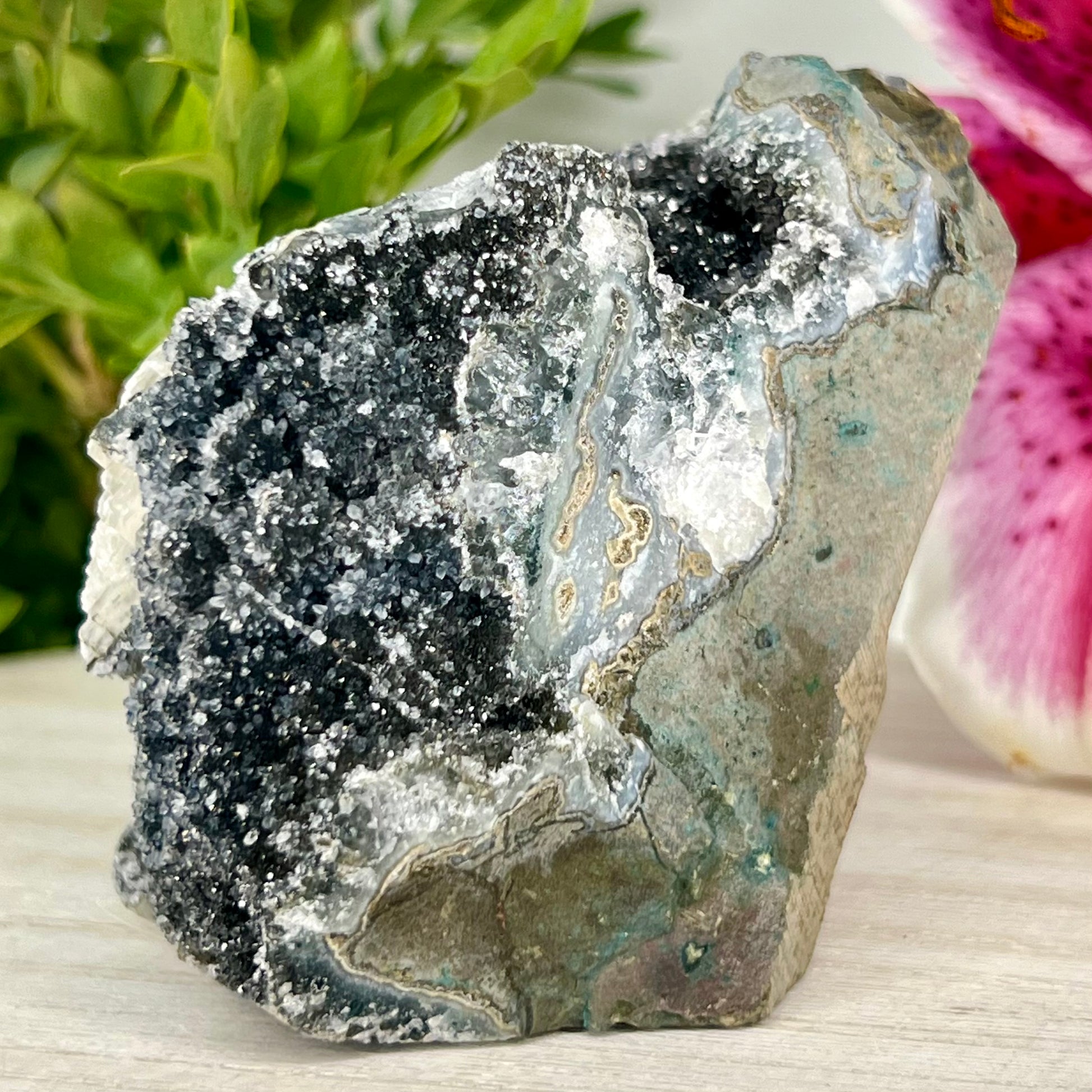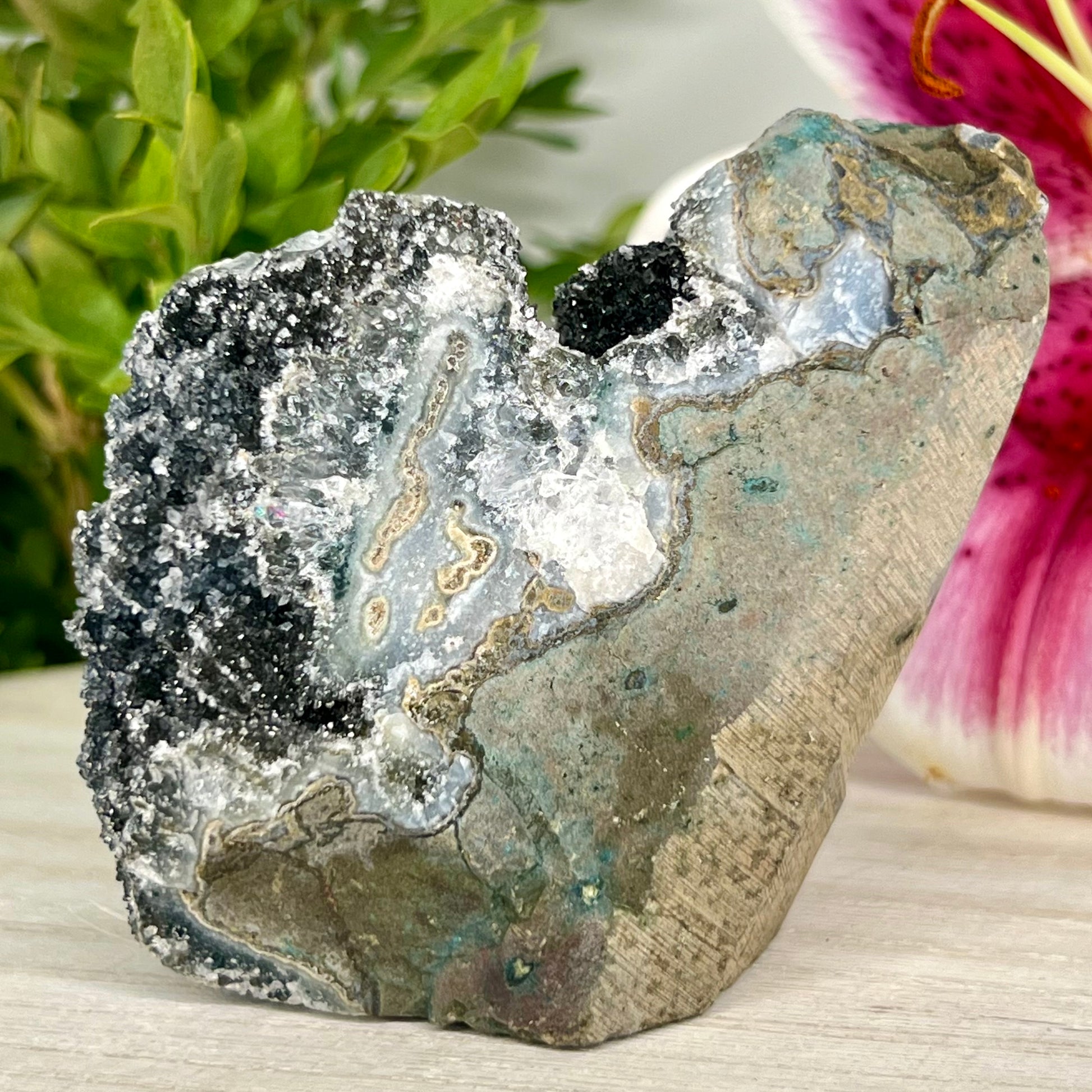 Black Amethyst is a variety of Amethyst with a higher count of iron inclusions of other crystals that make the color of the stone appear dark gray or black // A natural stress reliever // Emanates peaceful & calming energy // With the higher content of iron, Black Amethyst also helps to ground & protect you // Stimulates the Crown Chakra, but can also strengthens the Root Chakra // A protection stone that helps to get rid of negative energy // Can open your mind while also connecting you to the Earth.