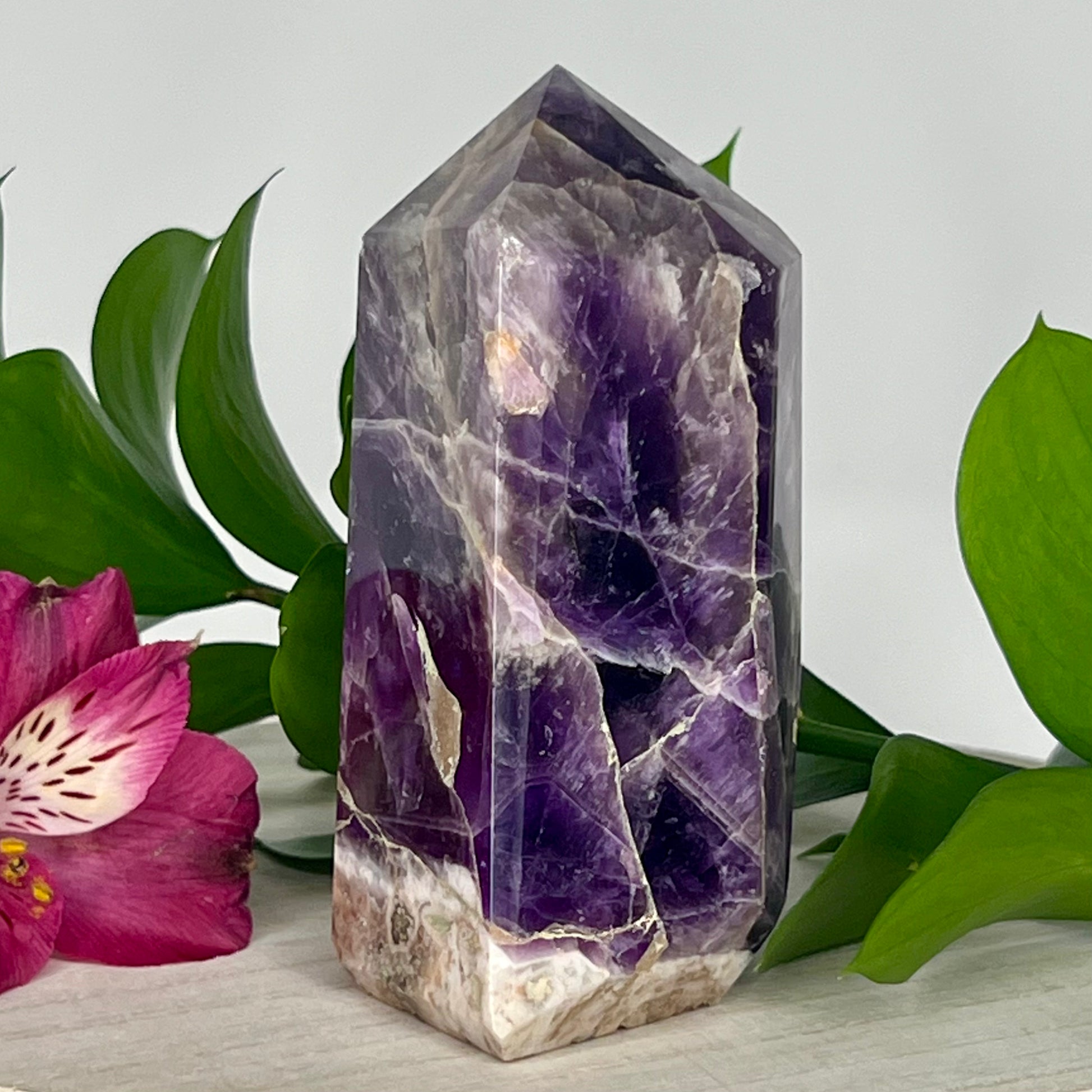 Amethyst is a variety of Quartz // The presence of manganese in clear Quartz produces Amethyst // The amount of iron within the amethyst will determine the depth of purple // The “stone of meditation”, excellent for calm & peacefulness needed to enter & maintain the meditative state // Also known as the “stone of spirituality & contentment”. It can help change lower energies into higher frequencies // Very calming to the mind & can be an energy purifier // Can open & activate the Third Eye & Crown Chakras.