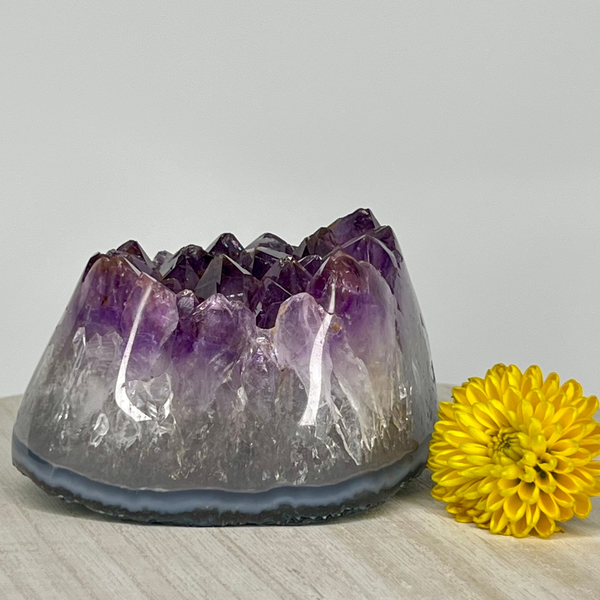 Amethyst is a variety of Quartz // The presence of manganese in clear Quartz produces Amethyst // The amount of iron within the amethyst will determine the depth of purple // The “stone of meditation”, excellent for calm & peacefulness needed to enter & maintain the meditative state // Also known as the “stone of spirituality & contentment”. It can help change lower energies into higher frequencies // Very calming to the mind & can be an energy purifier // Can open & activate the Third Eye & Crown Chakras.