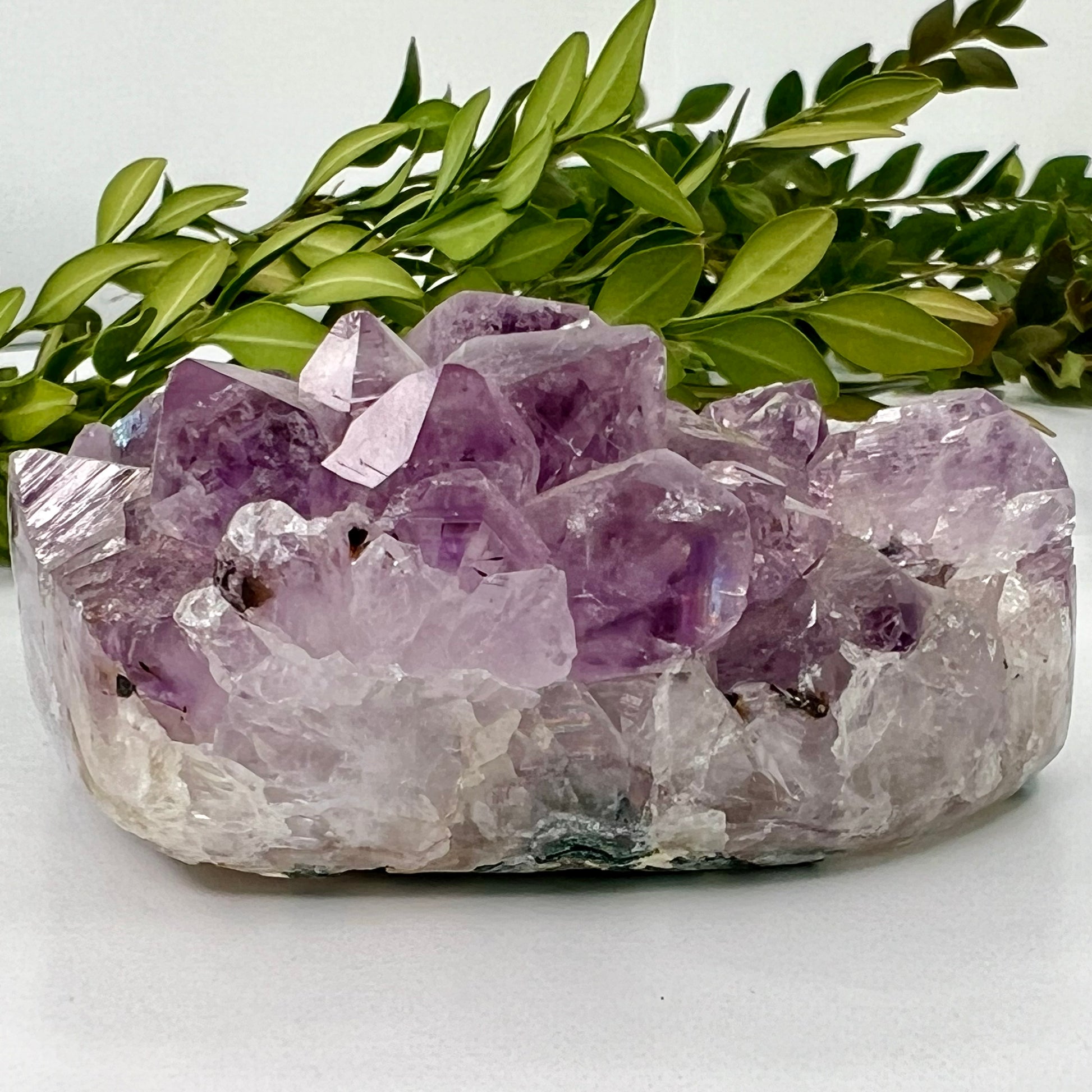 Amethyst is a variety of Quartz // The presence of manganese in clear Quartz produces Amethyst // The amount of iron within the amethyst will determine the depth of purple // The “stone of meditation”, excellent for calm & peacefulness needed to enter & maintain the meditative state // Also known as the “stone of spirituality & contentment”. It can help change lower energies into higher frequencies // Very calming to the mind & can be an energy purifier // Can open & activate the Third Eye & Crown Chakras.