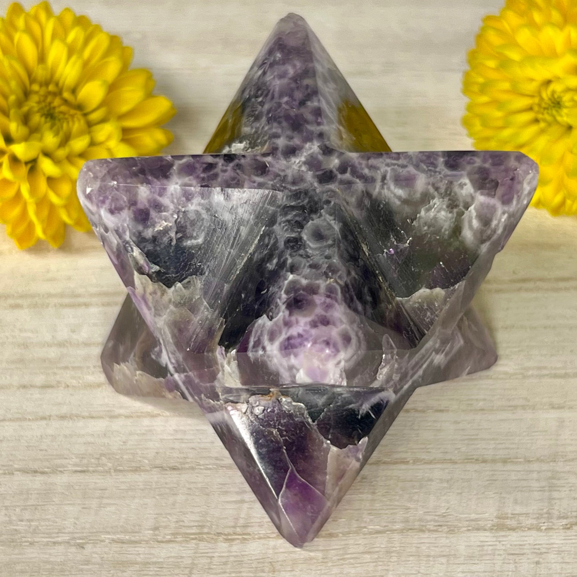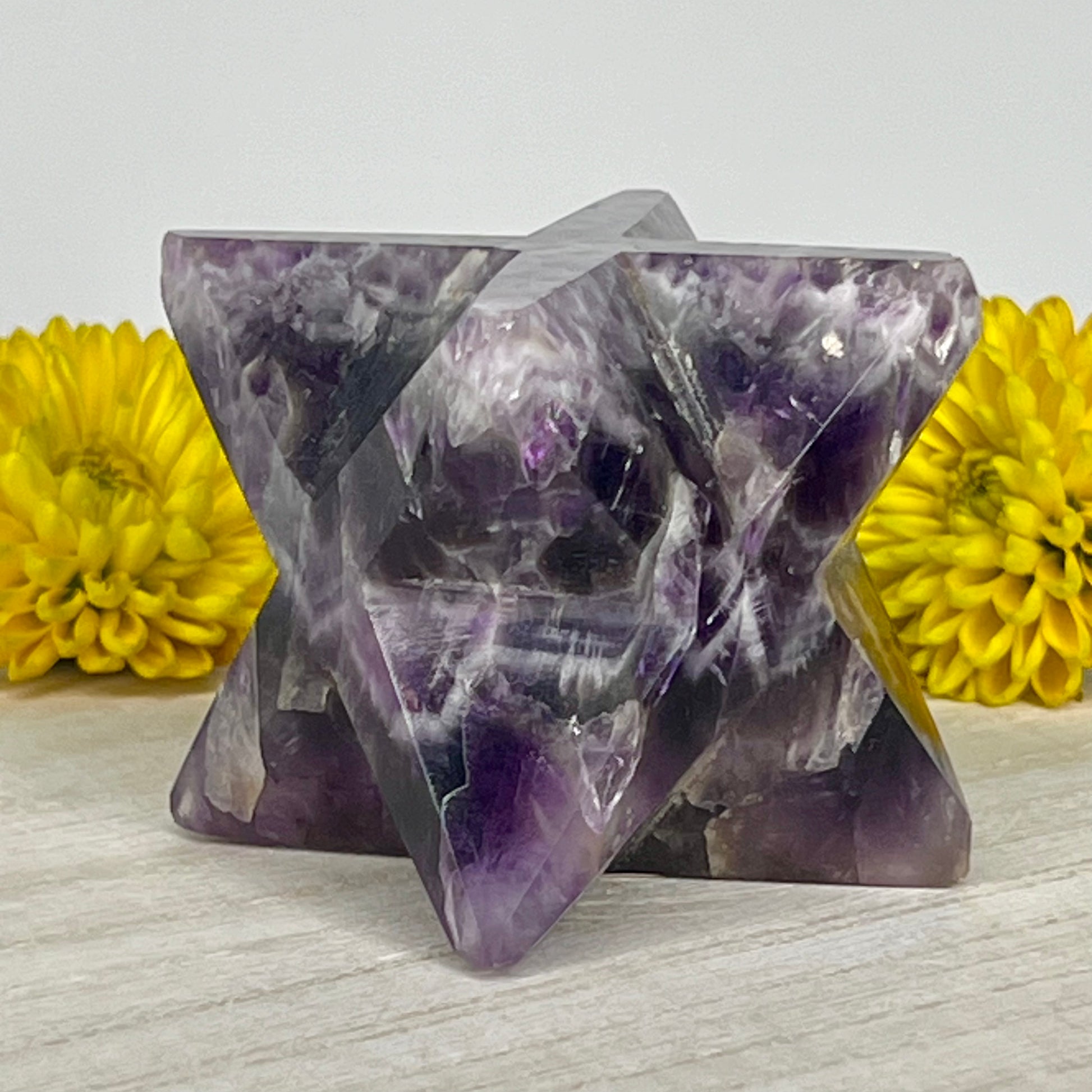 Merkaba // Sacred Geometry // Derived from 3 ancient Egyptian words: Mer, meaning light; Ka, referring to the spirit; & ba, referring to the body. When combined, they signify the integration of spirit & body, surrounded by light // Associated with transformation, ascension & expansion of the consciousness // Know as the “light body” // A symbol of protection & a tool for meditation & energy work // Harness Divine energy that shields against negativity & promotes well-being // Facilitates spiritual growth & enlightenment // Consists of 2 tetrahedrons interlocked, creating a 3-D star, symbolizing the harmonious balance between opposing forces & the interconnectedness of all aspects of existence.
