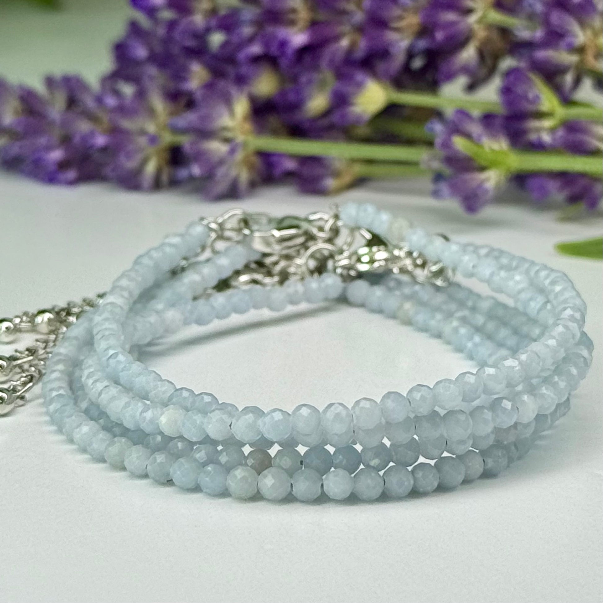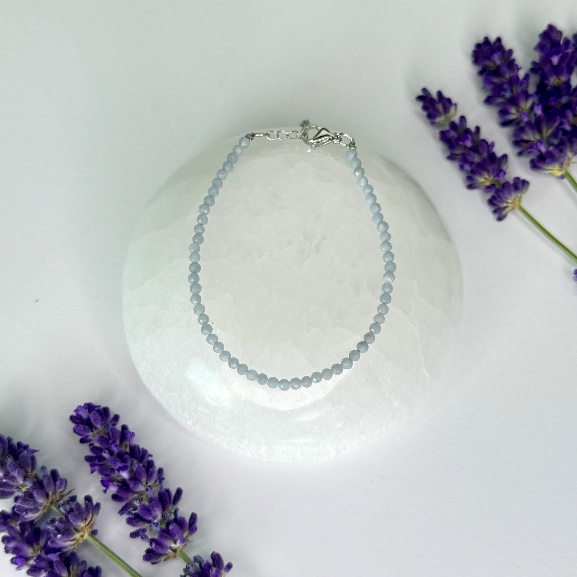 Angelite // 3mm // Faceted // Adjustable Bracelet