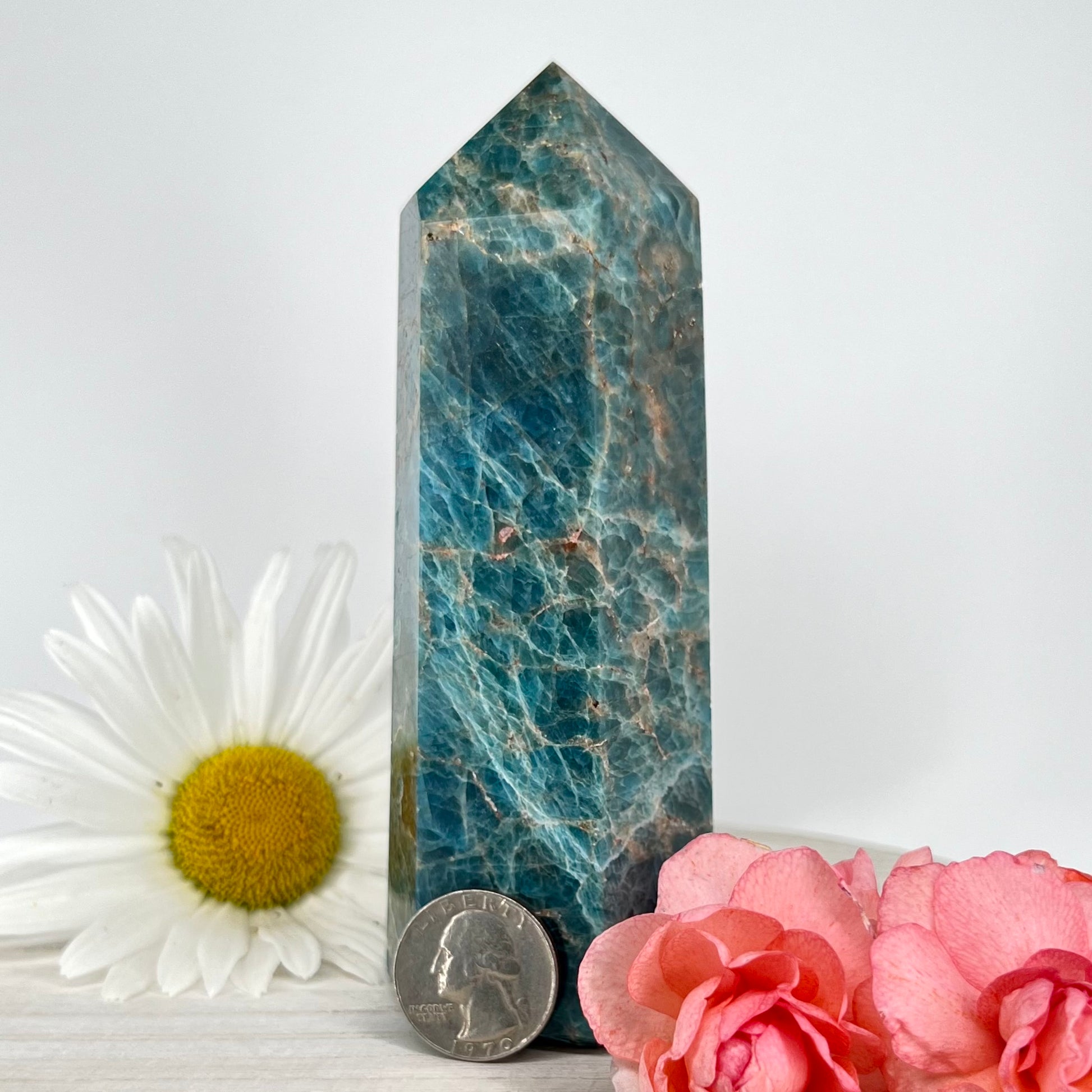 Blue Apatite is a vibrant blue crystal known for its ability to inspire motivation and awaken inner vision // Found in regions such as Madagascar, Brazil, and Mexico, it is prized for both its striking color and its high-frequency energy // Often called the “stone of the future,” it connects you with higher levels of awareness and insight.