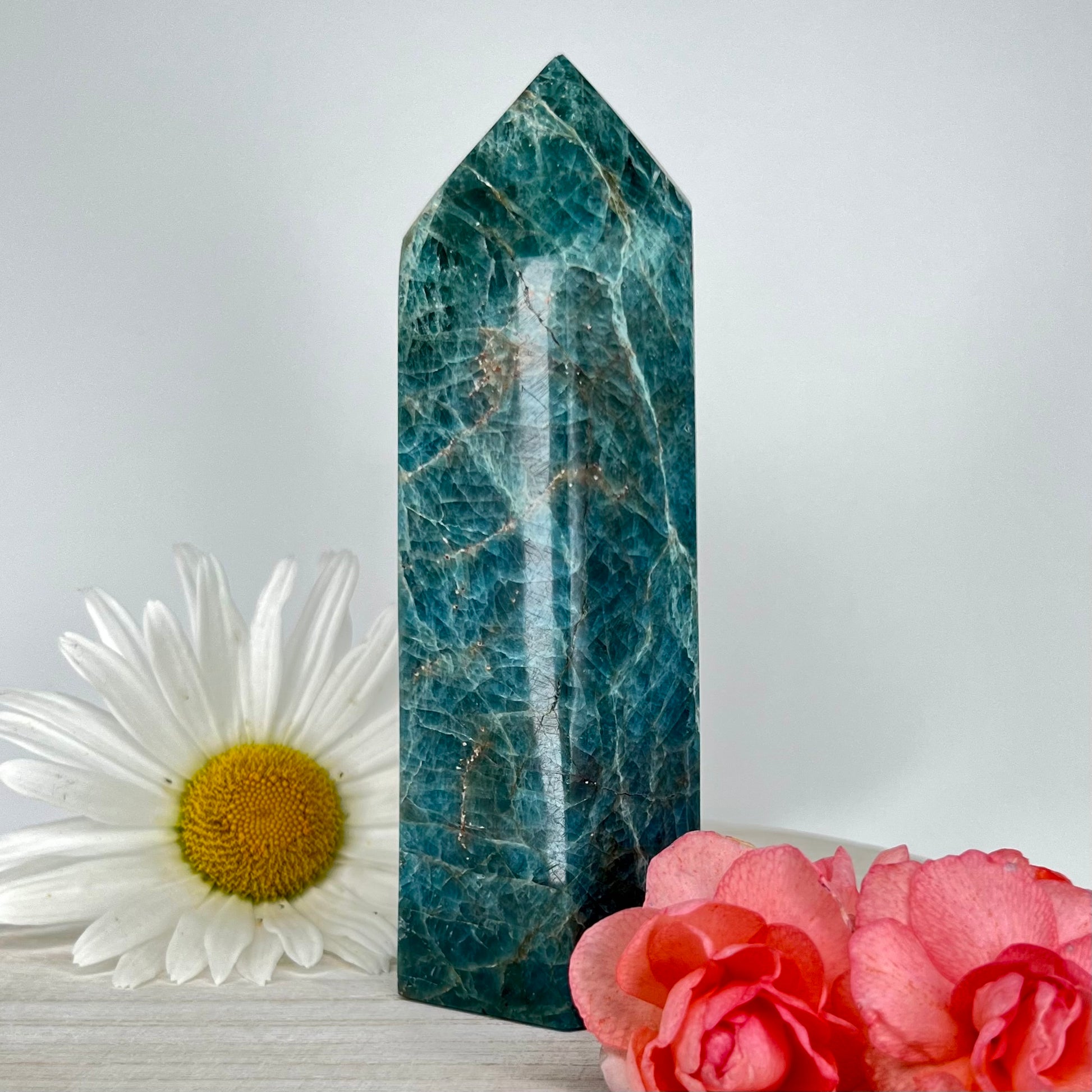 Blue Apatite is a vibrant blue crystal known for its ability to inspire motivation and awaken inner vision // Found in regions such as Madagascar, Brazil, and Mexico, it is prized for both its striking color and its high-frequency energy // Often called the “stone of the future,” it connects you with higher levels of awareness and insight.