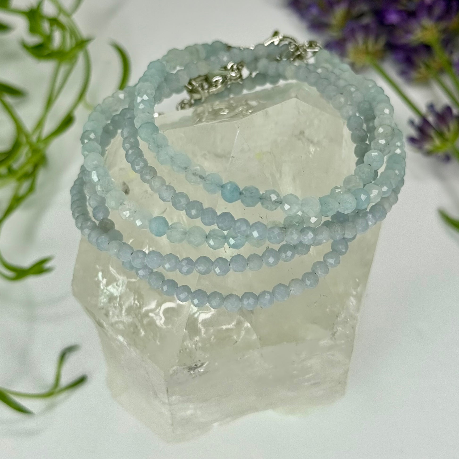 Aquamarine // 3mm // Faceted // Adjustable Bracelets