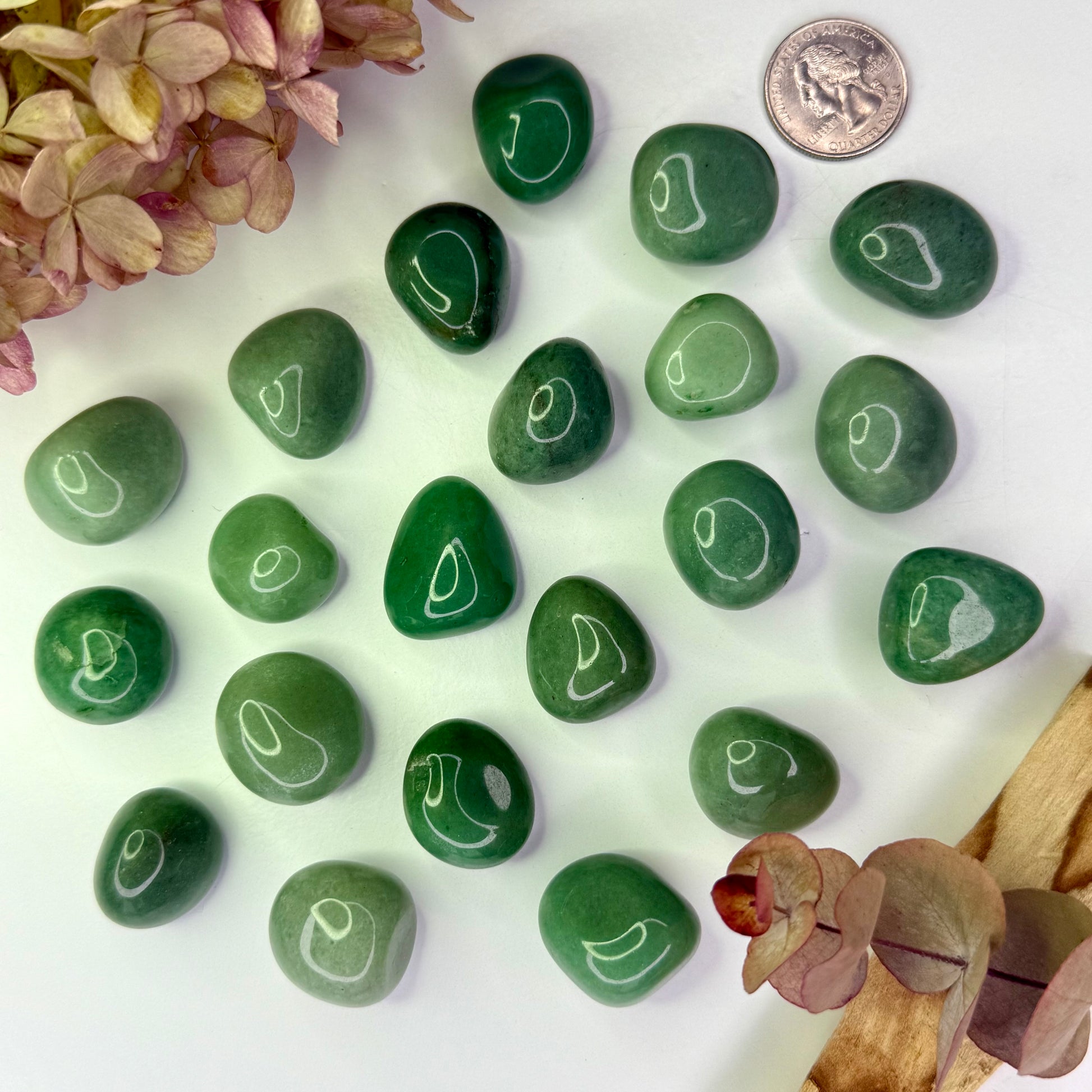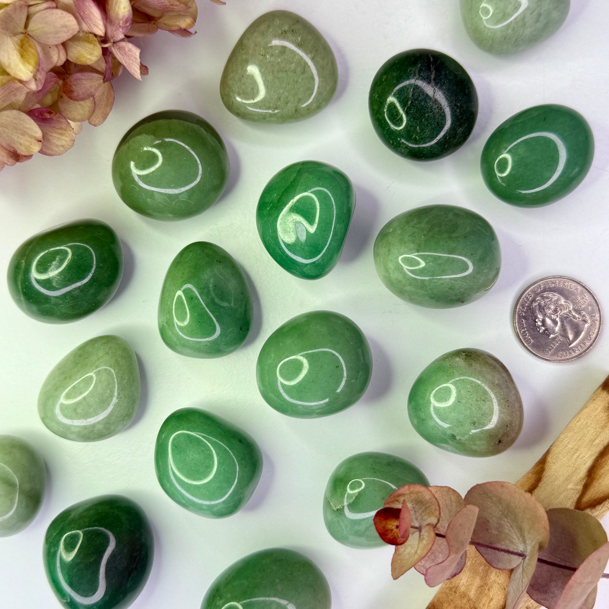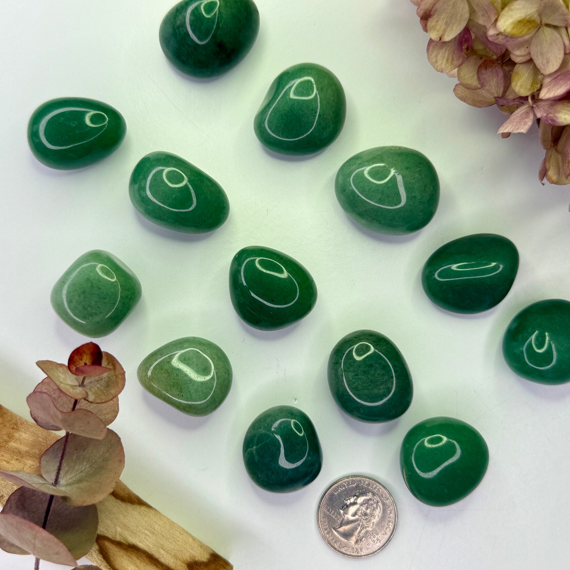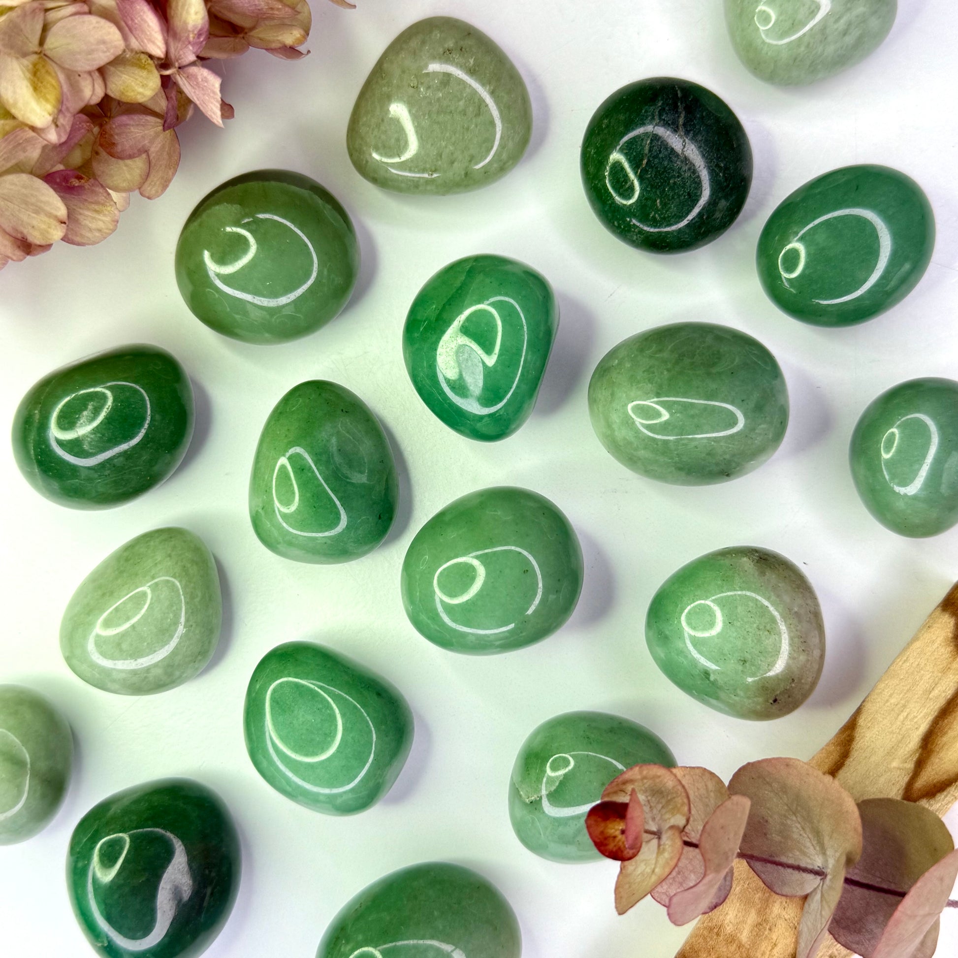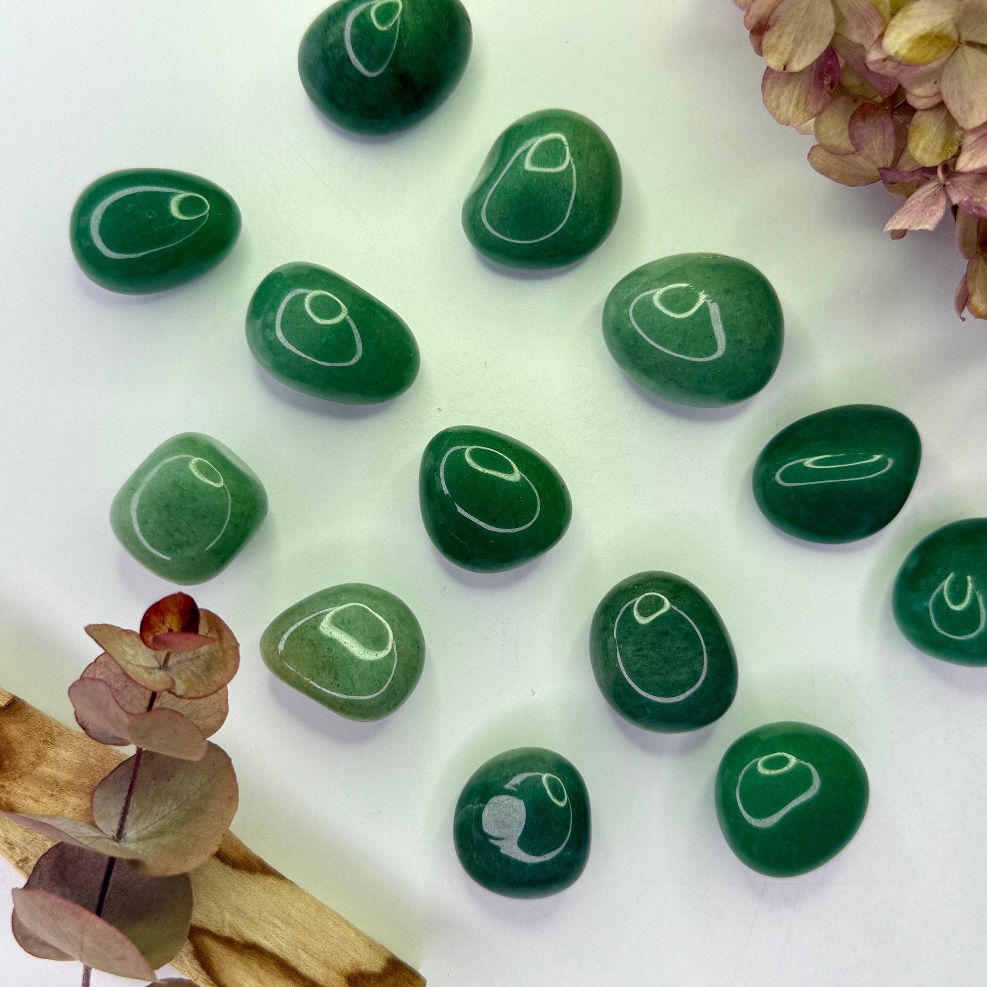 Green Aventurine is a vibrant green variety of quartz, known for its uplifting energy and connection to growth and renewal // Its subtle shimmer comes from inclusions of Fuchsite or Mica, giving it a sparkling, light-reflective quality // Found in India, Brazil, Russia, and the United States, it’s often turned to for support during times of change and personal expansion.