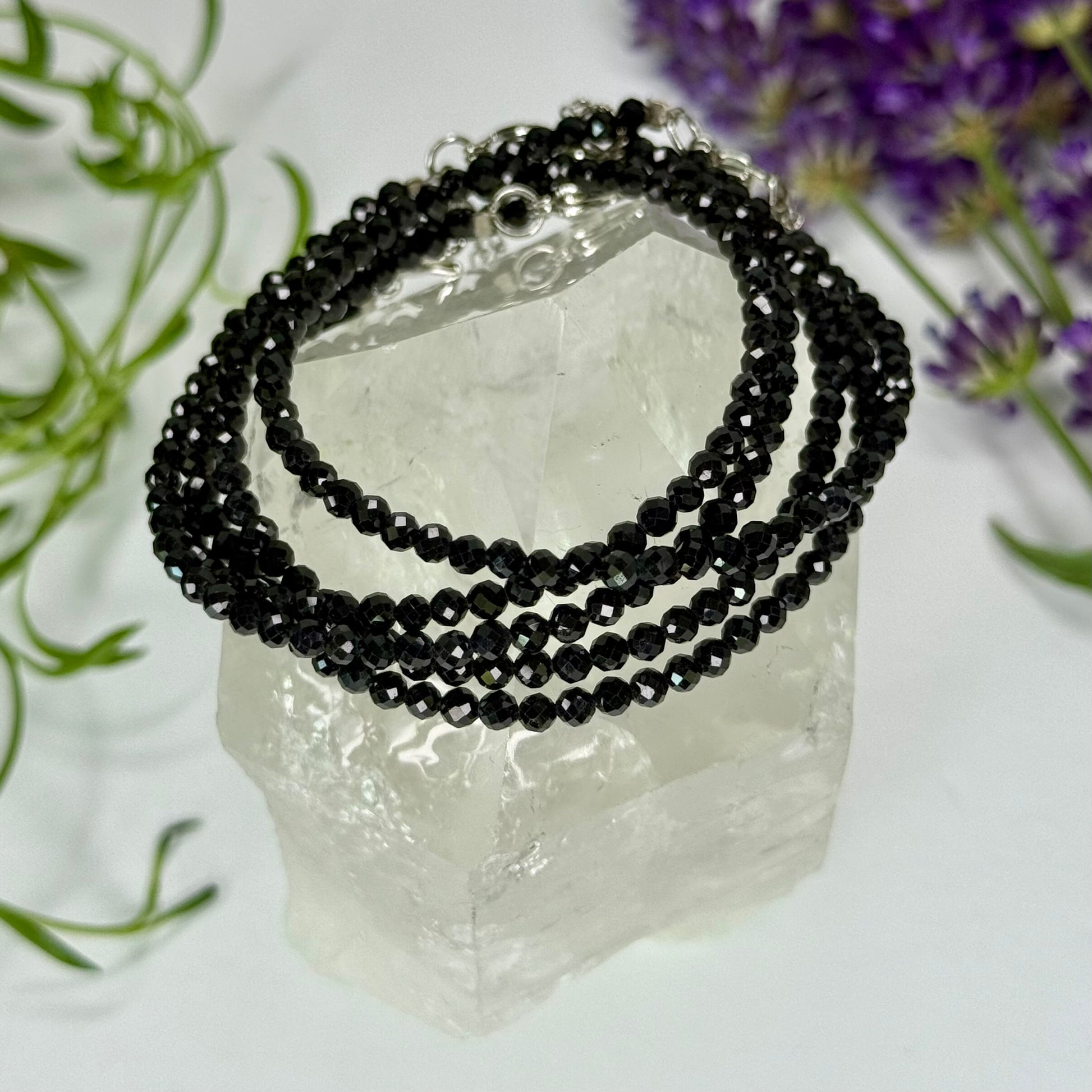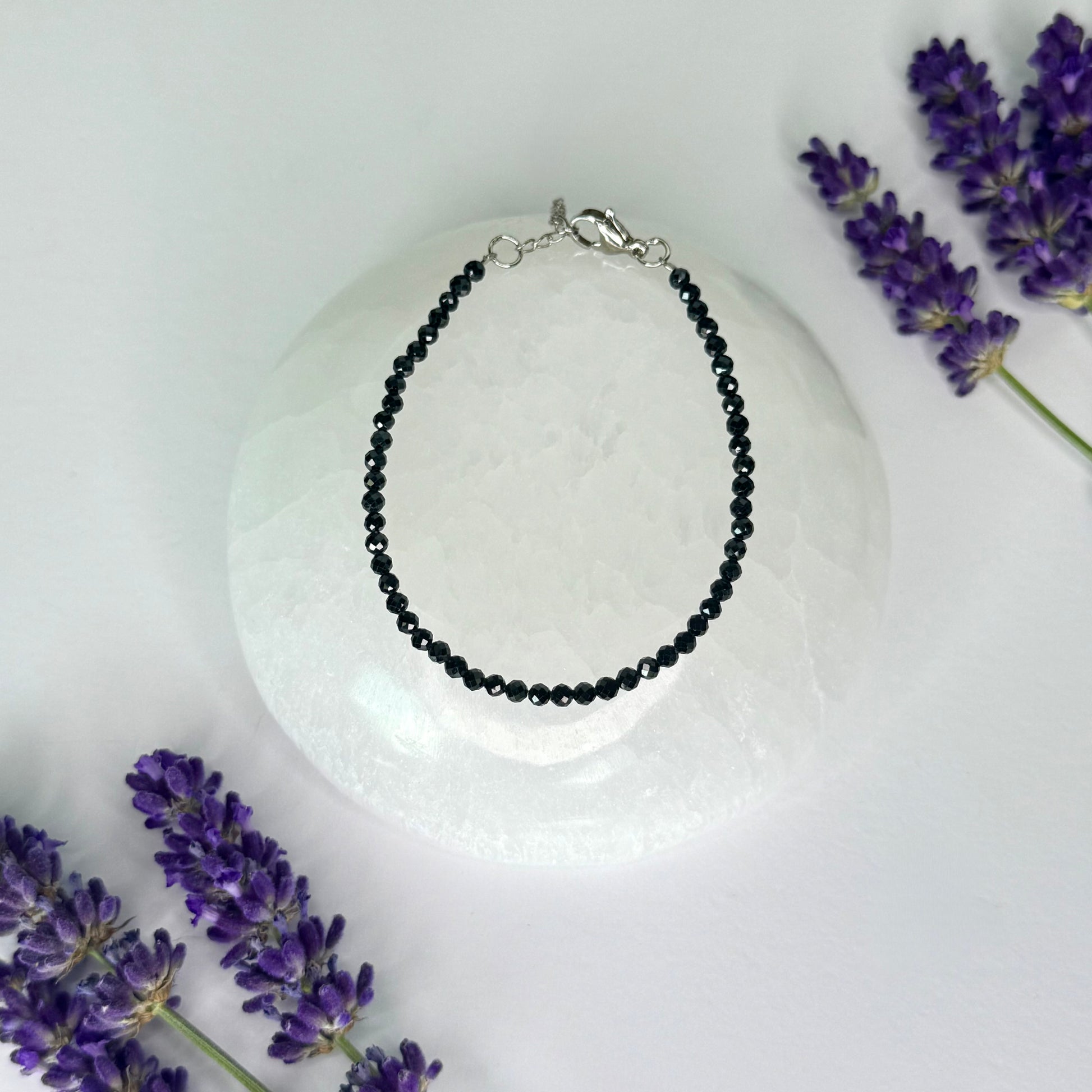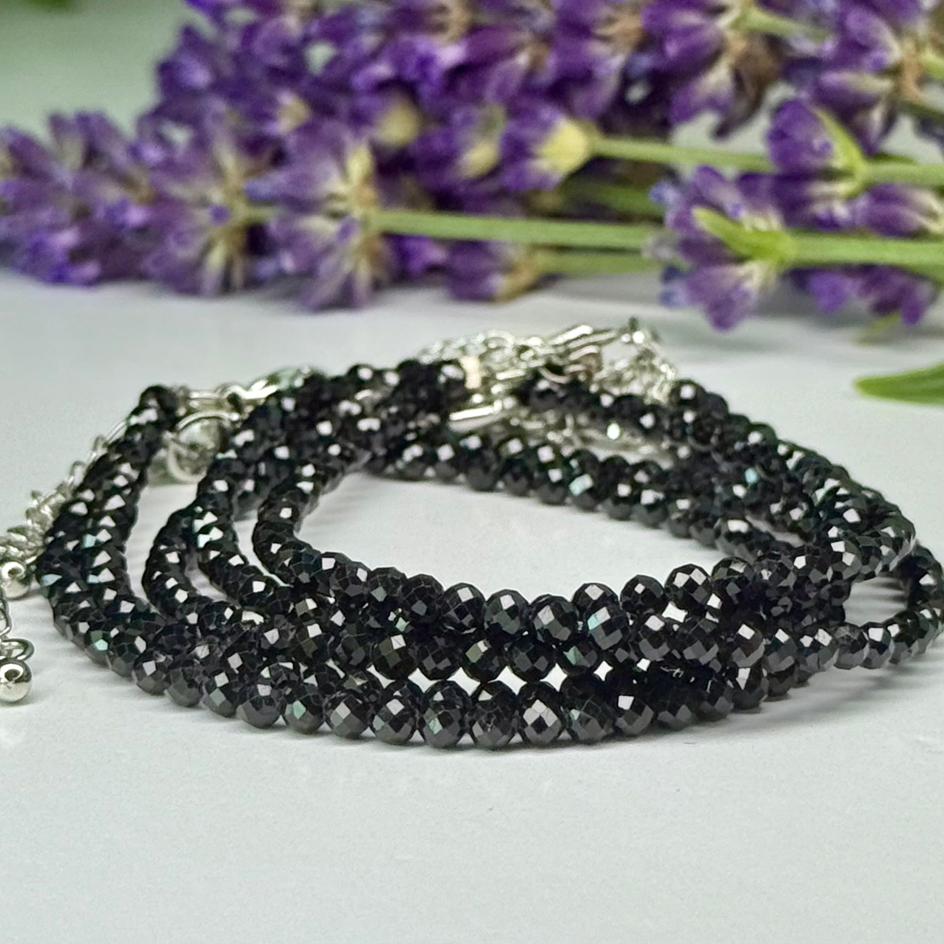 Black Spinel // 3mm // Faceted // Adjustable Bracelet
