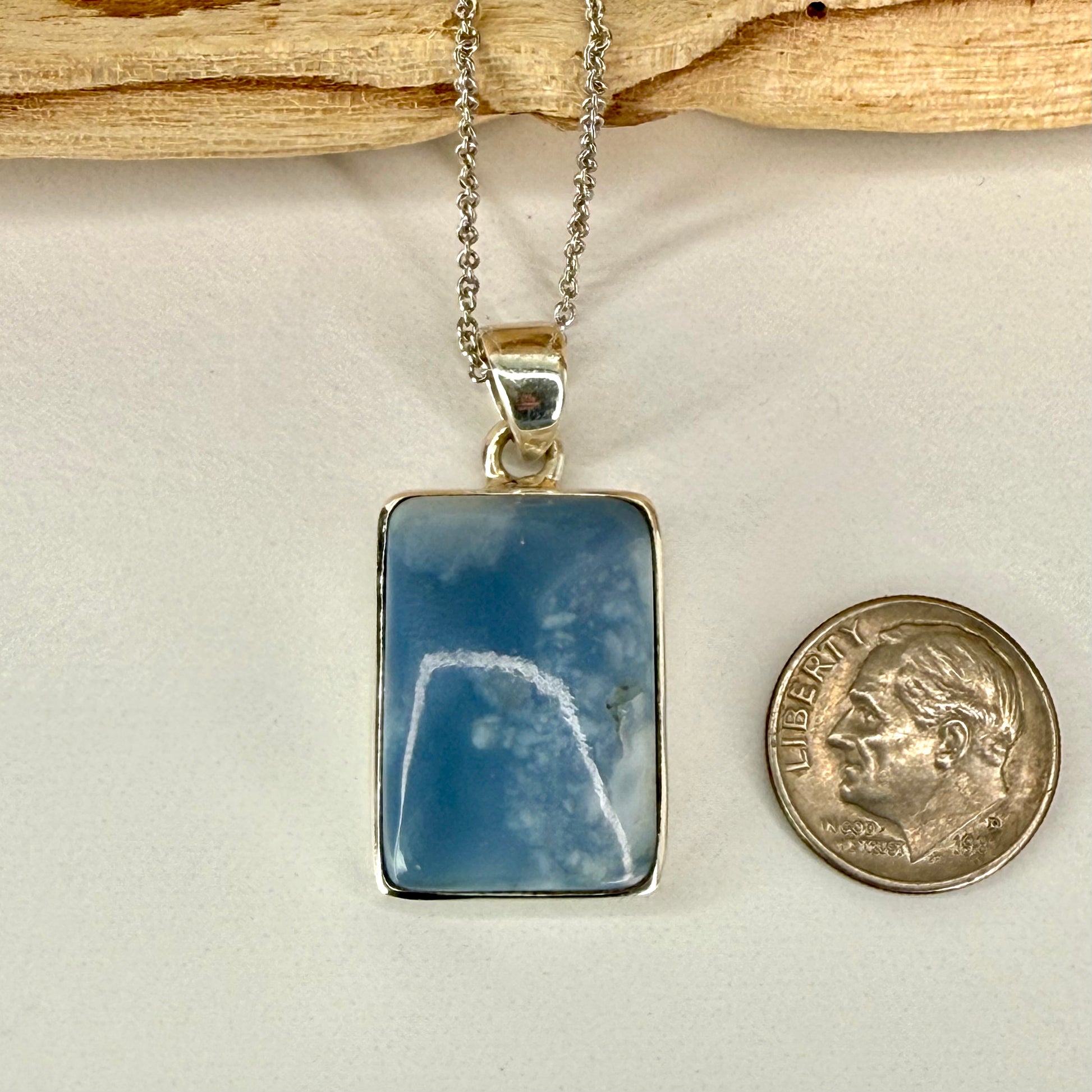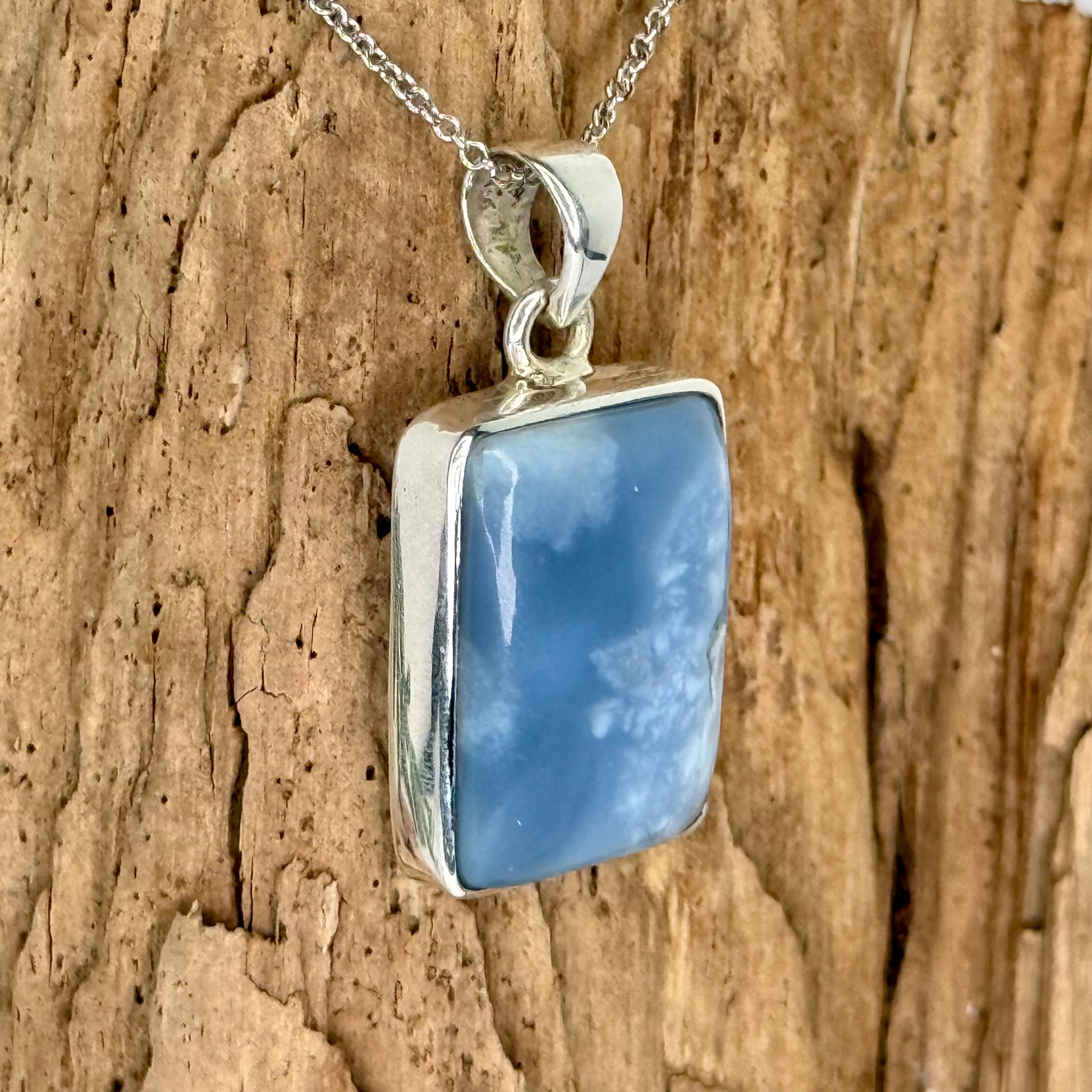 Blue Opal is a hydrous silica mineral known for its soft, watery hues ranging from sky blue to deep ocean tones // Found primarily in Peru and Oregon, Blue Opal often forms in volcanic rock cavities and is commonly found near chrysocolla, quartz, and andesite // Its calming color and gentle vibration reflect its ability to support emotional balance and energetic flow.