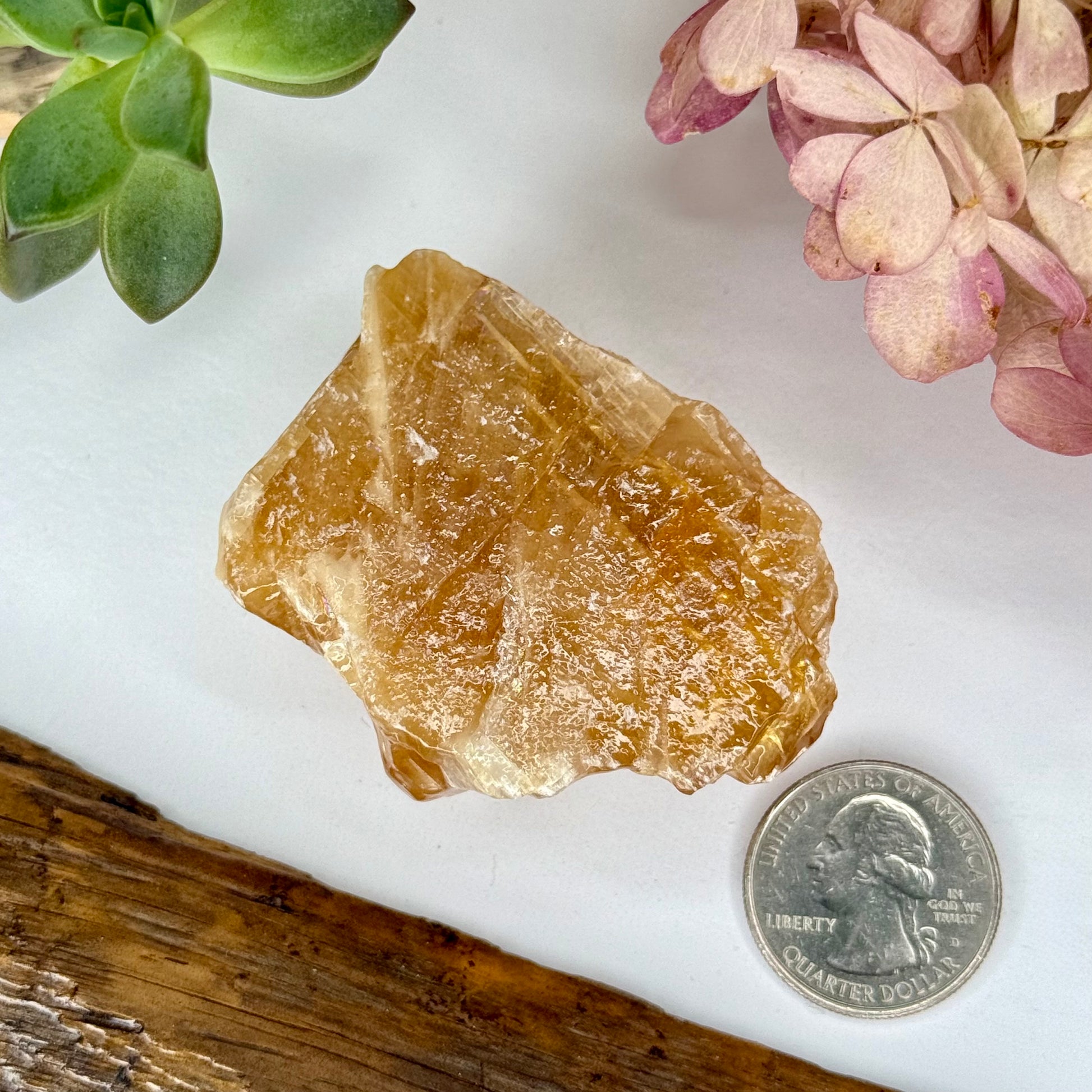 Honey Calcite // A warm, golden variety of calcite formed in sedimentary environments, often found in Mexico and the U.S. // Its rich color comes from natural iron inclusions, giving it a glowing, sunlit energy // Commonly found with minerals like aragonite and quartz.