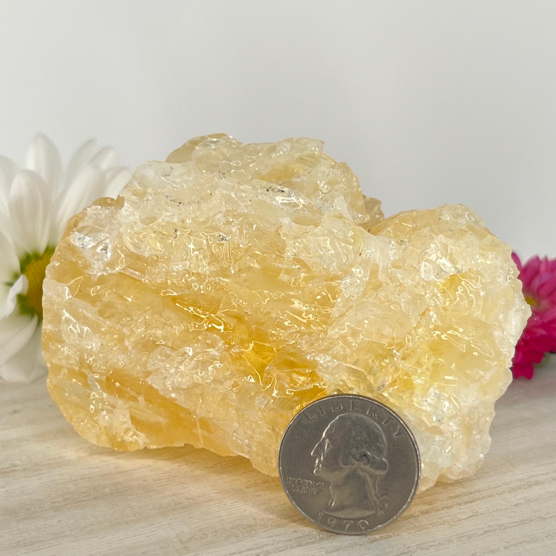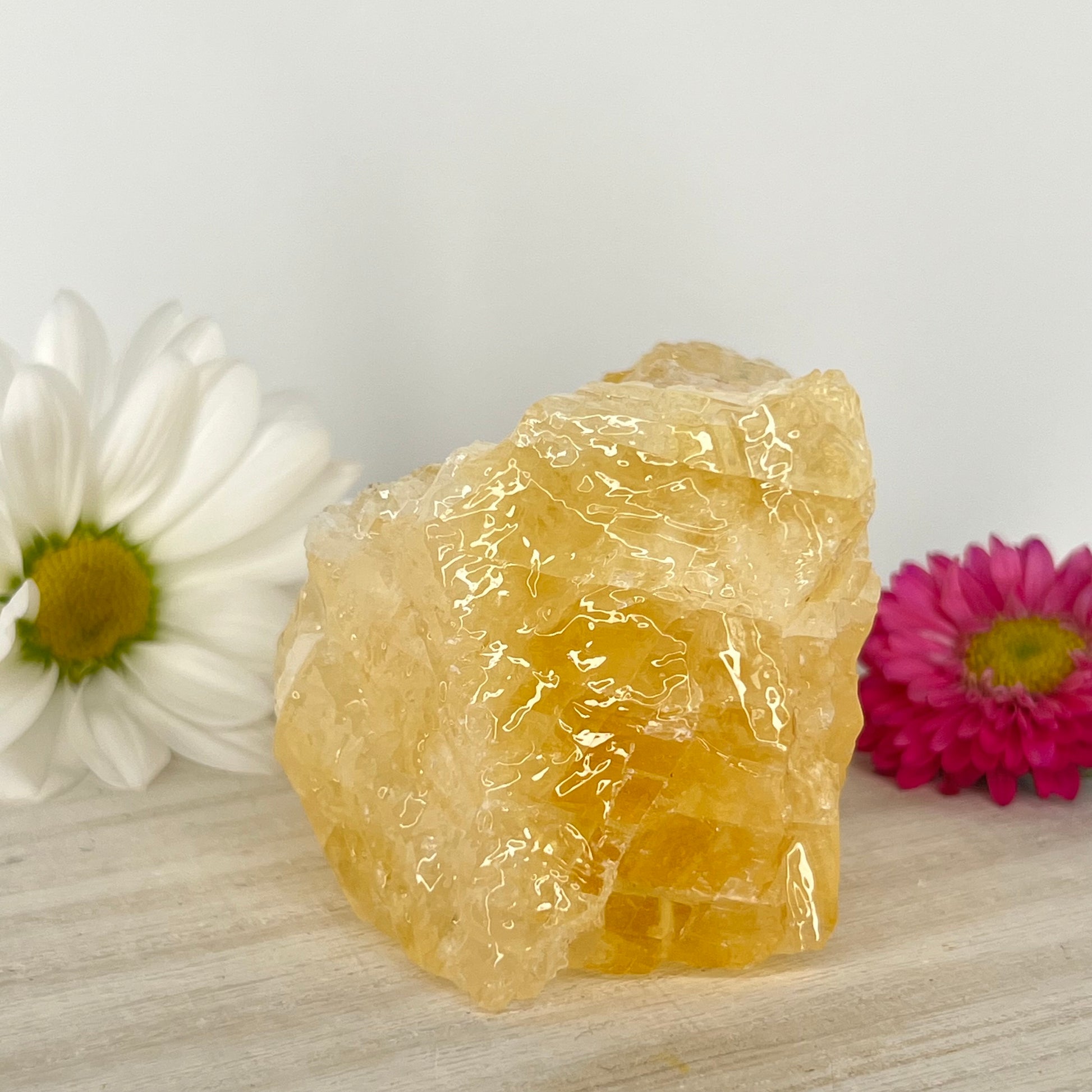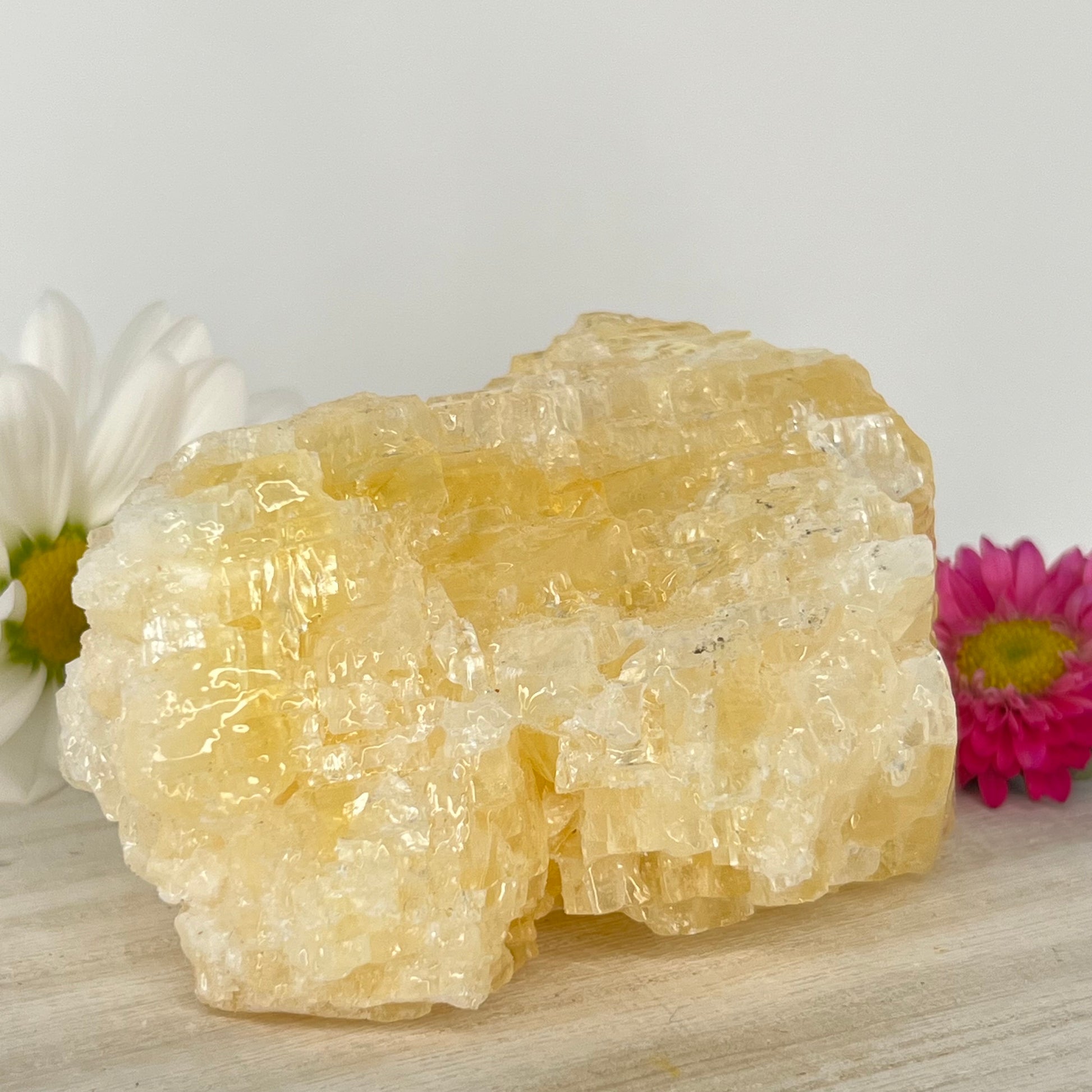 Honey Calcite // A warm, golden variety of calcite formed in sedimentary environments, often found in Mexico and the U.S. // Its rich color comes from natural iron inclusions, giving it a glowing, sunlit energy // Commonly found with minerals like aragonite and quartz.