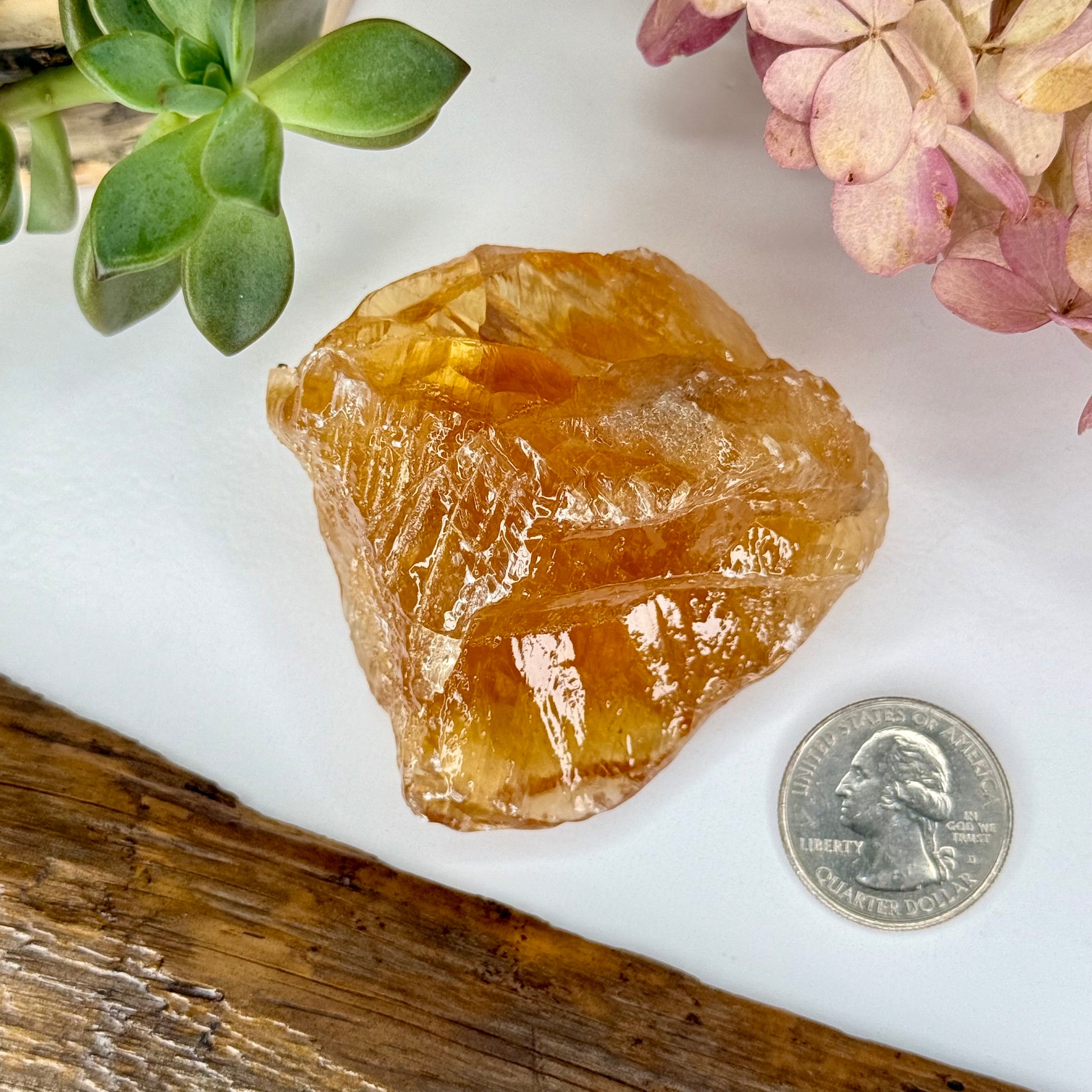 Honey Calcite // A warm, golden variety of calcite formed in sedimentary environments, often found in Mexico and the U.S. // Its rich color comes from natural iron inclusions, giving it a glowing, sunlit energy // Commonly found with minerals like aragonite and quartz.