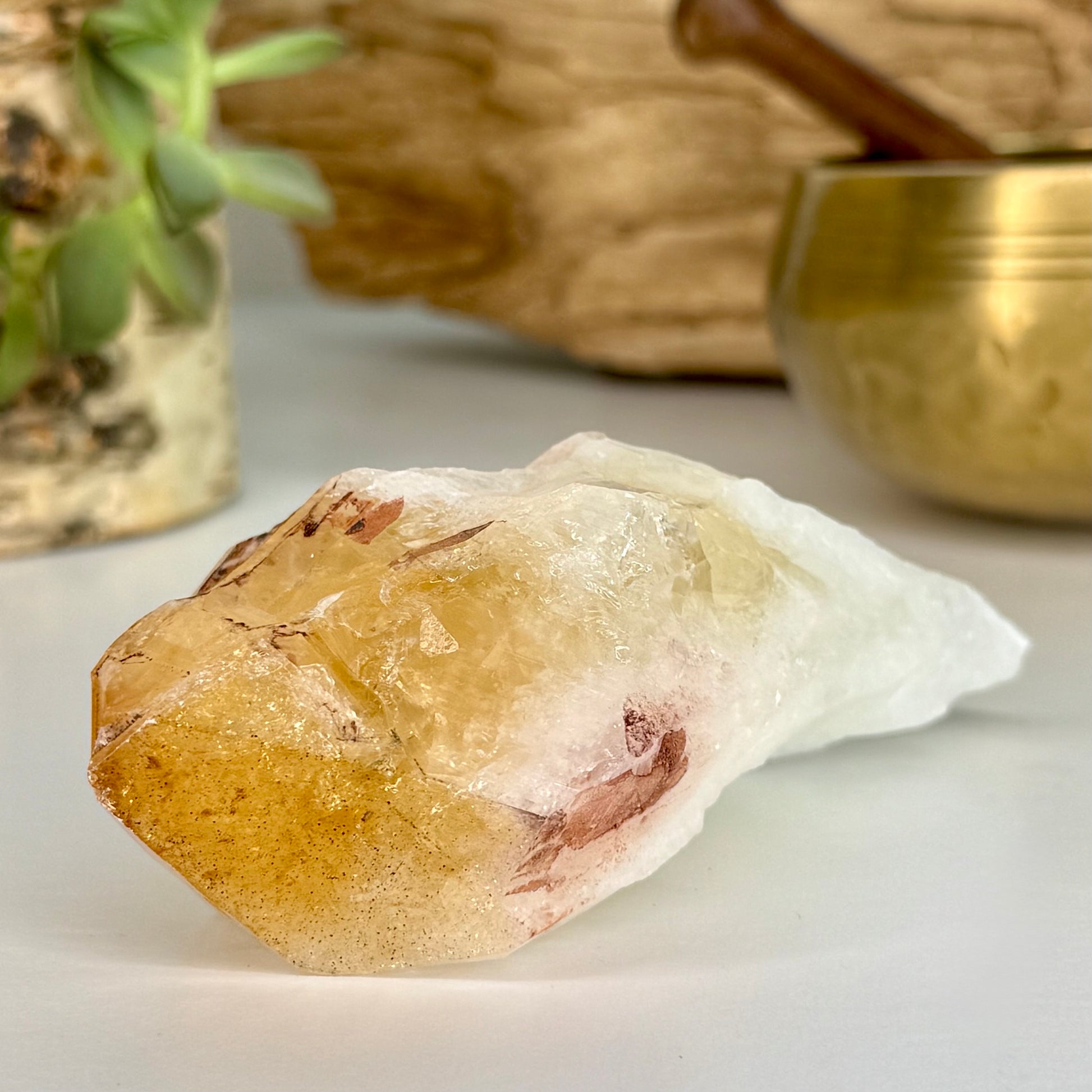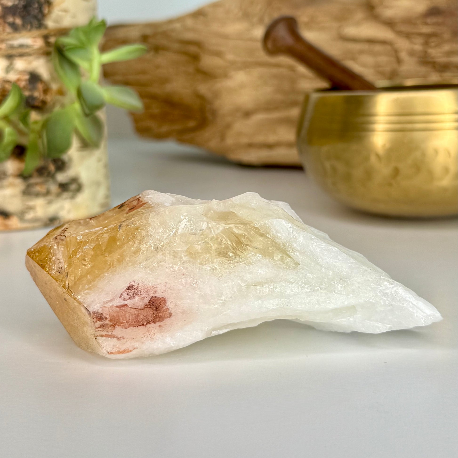 A stone of creativity, positivity, and energetic renewal // Citrine clears stagnant energy, elevates mood, and invigorates the spirit, making it especially helpful for those feeling depleted or creatively blocked // Its cleansing properties extend beyond the body to your environment, effortlessly transforming negativity into light // Encourages honesty, optimism, and the ability to envision new possibilities with clarity and confidence.