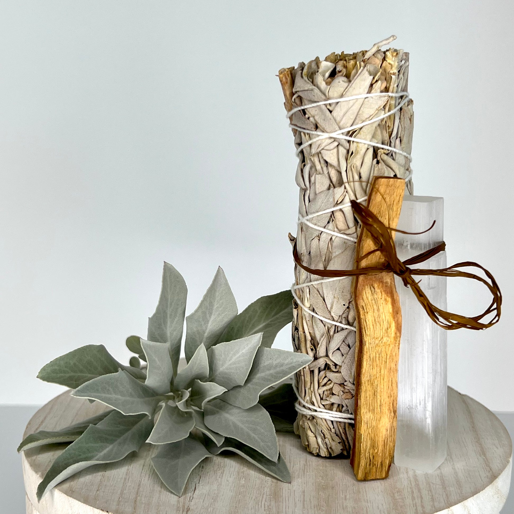 Each bundle includes a sustainably harvested Sage stick, Selenite and Palo Santo. These are NOT farmed or sprayed with anything, they grew naturally with Mother Earth, water and the Sun☀️
