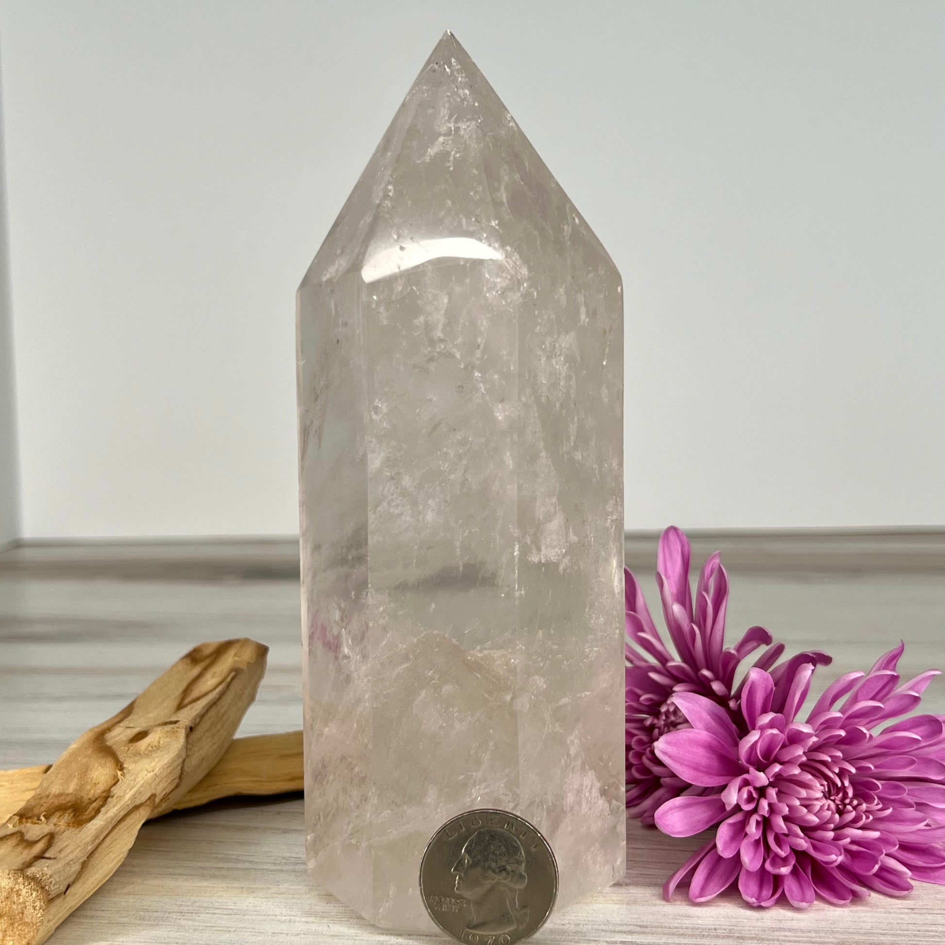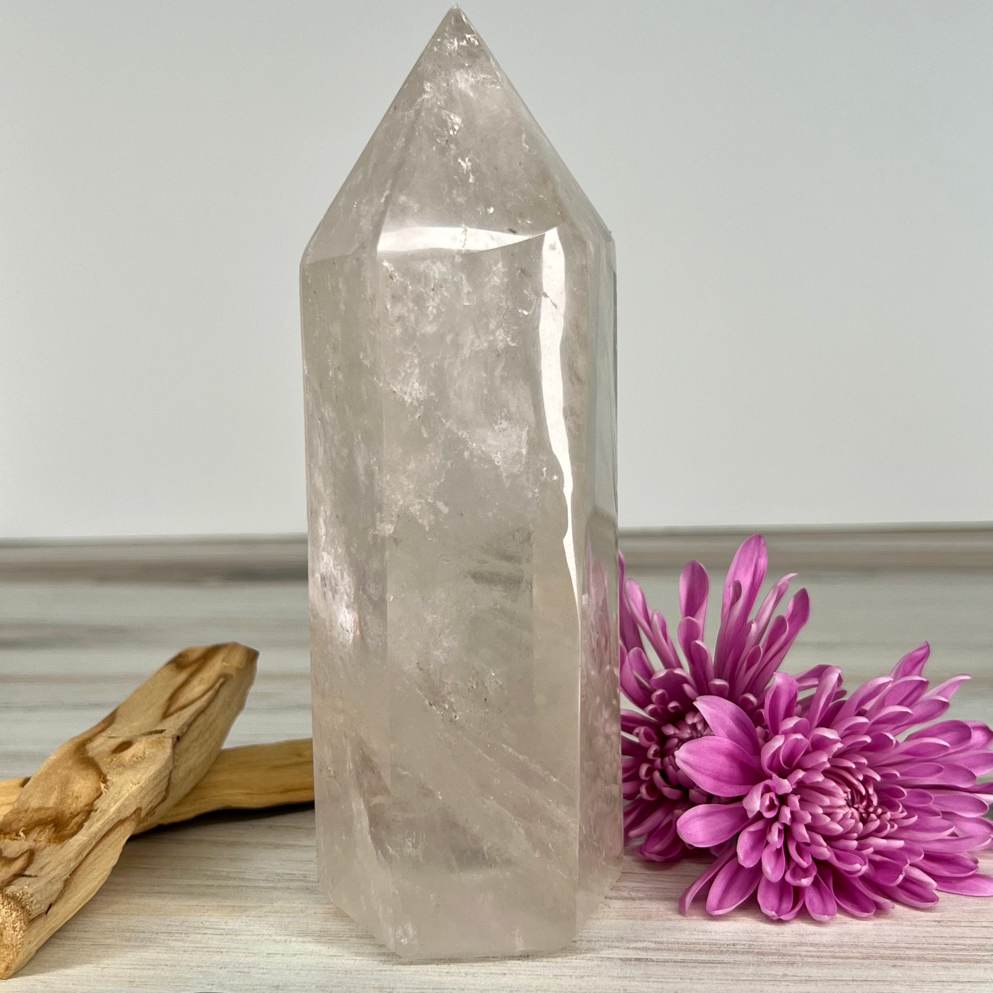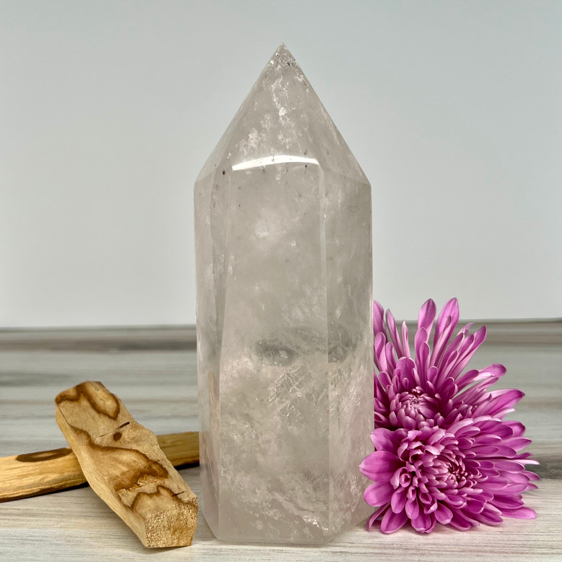 Clear Quartz is one of the most popular & essential crystal healing stones // Starting out on a crystal journey, clear quartz is one of the first materials crystal enthusiasts start with // This crystal encourages clarity on all levels // Stimulates & opens all chakras & energy pathways in the body, allowing for a more enlightened & expansive auric field // It is emotionally neutral, but will amplify any emotion with which it moves into resonance with // Quartz is a crystal for the Crown Chakra & excellent stone when working & connecting to the higher self.