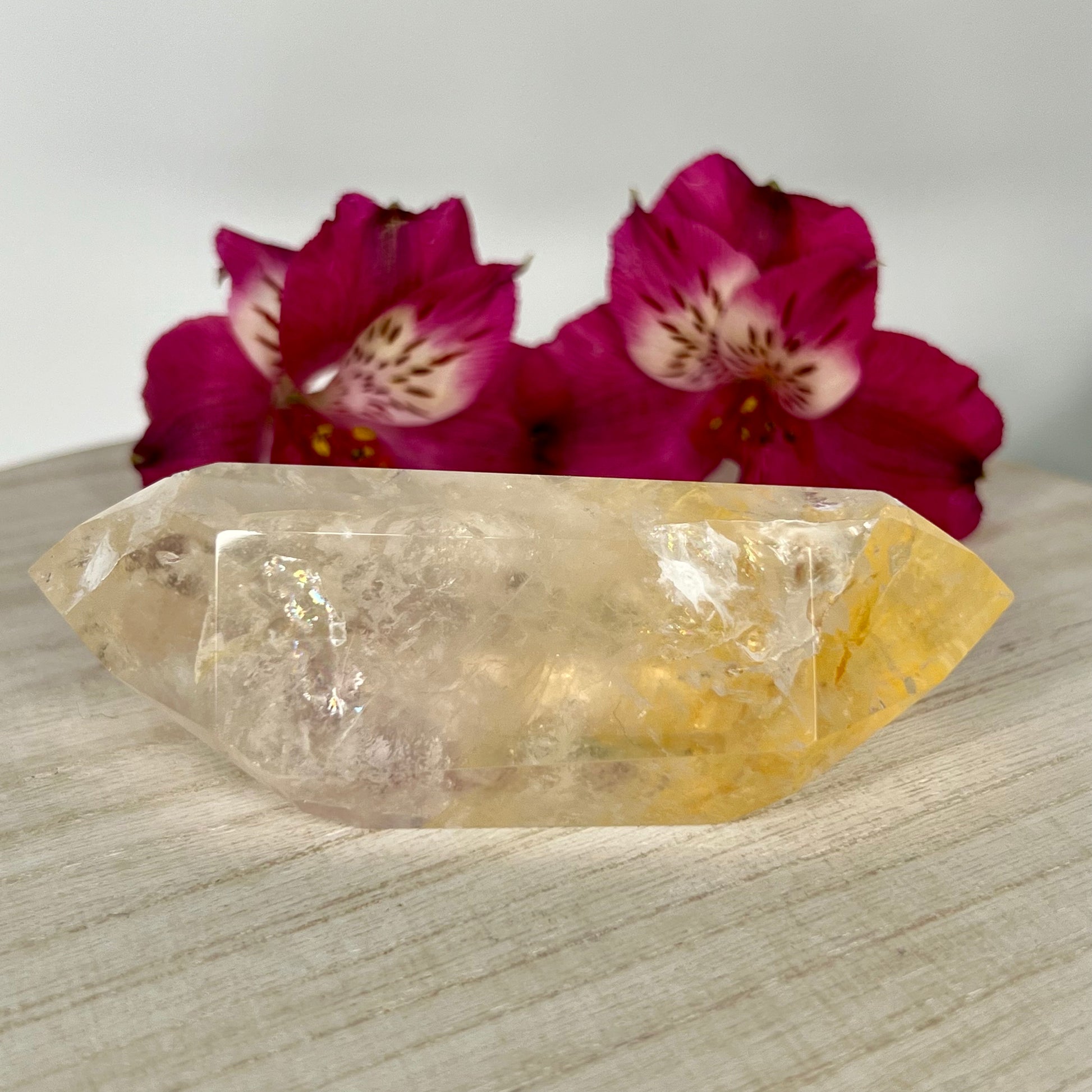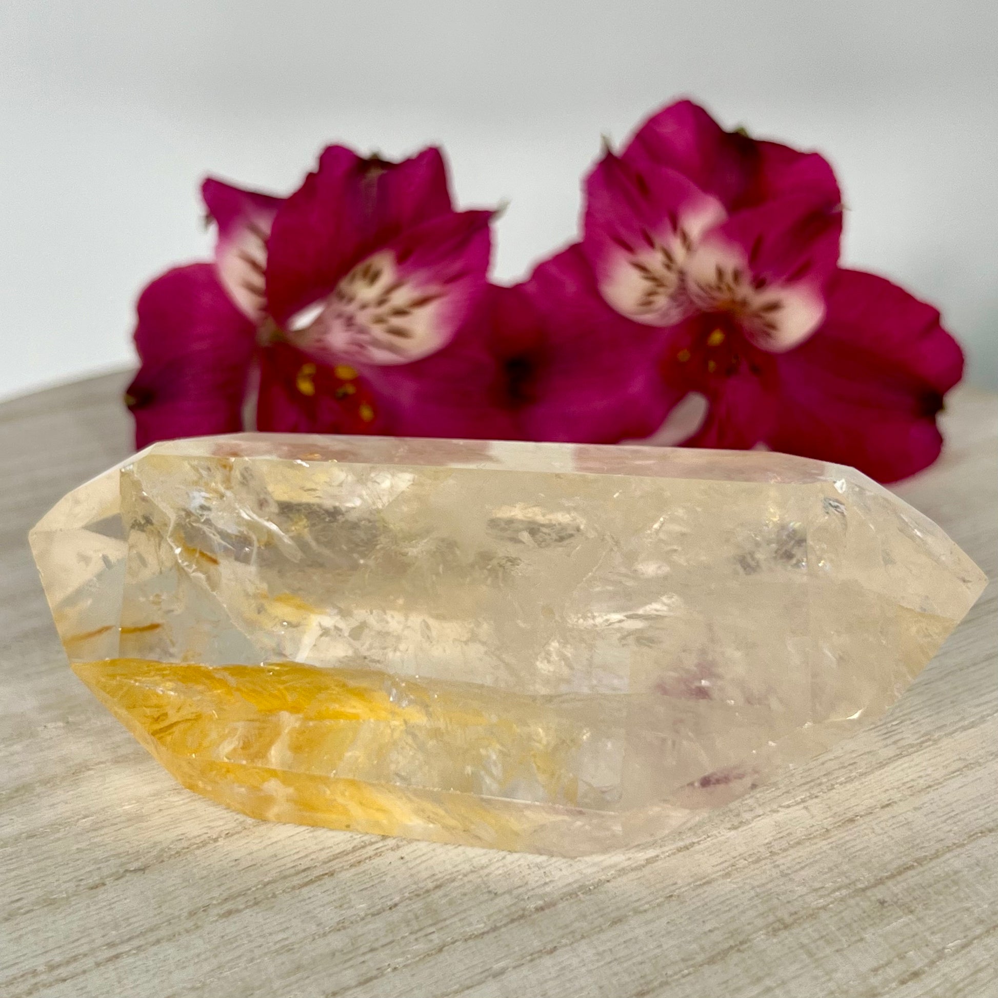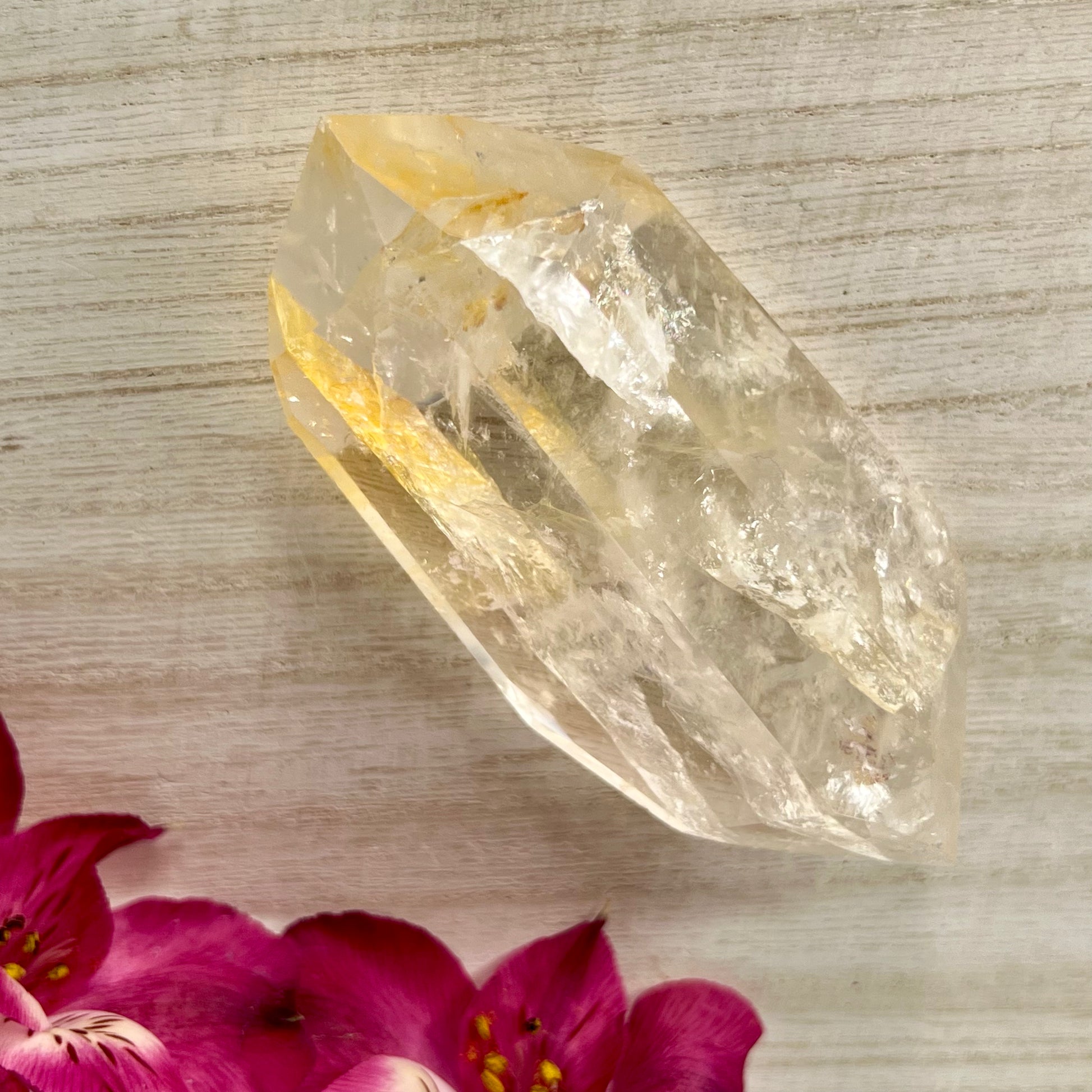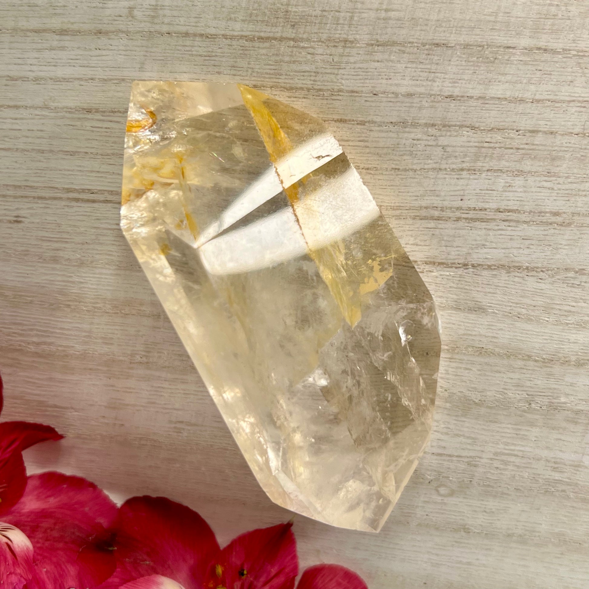 Golden Healer is a master healing crystal that can elevate to the highest level with the already masterful healing energy of quartz // A highly respected crystal in the healing community & is considered one of the minerals that is excellent for energy healing // With this mineral one may understand that healing could be a physical ailment, an emotional wound, or an incorrect thought pattern that keeps one from success. With that, one may start to realize that your healing includes issues of physical, emotional, mental, spiritual, and subtle bodies // Activates & balances your Root, Solar plexus & Crown chakras // This energy will stabilize & nurture you.