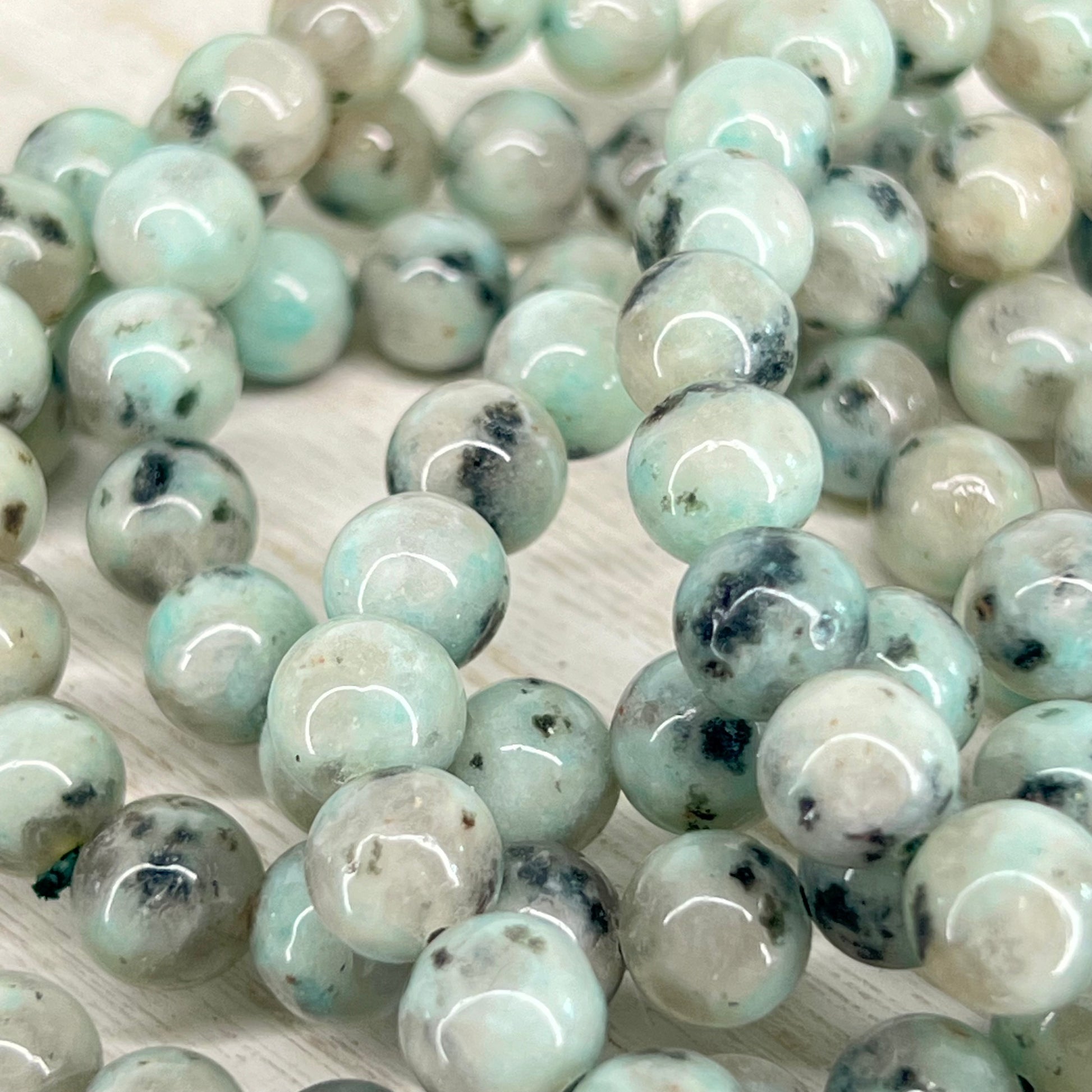 Combines the communicative power of Amazonite with the grounding & protective qualities of Tourmaline // Beneficial to carry or wear when drawing upon feelings that resonate deep within your heart // The Quartz contained in Kiwi Jasper can help enlighten your mental fortitude while enhancing the energies you produce // Useful when trying to put into words your current emotional state or seeking a discussion with important & sensitive matters which require the correct tone, speech & word selection // Produces great communication that easily delivers messages; but also reinforces self-confidence & strength that you are capable of providing.