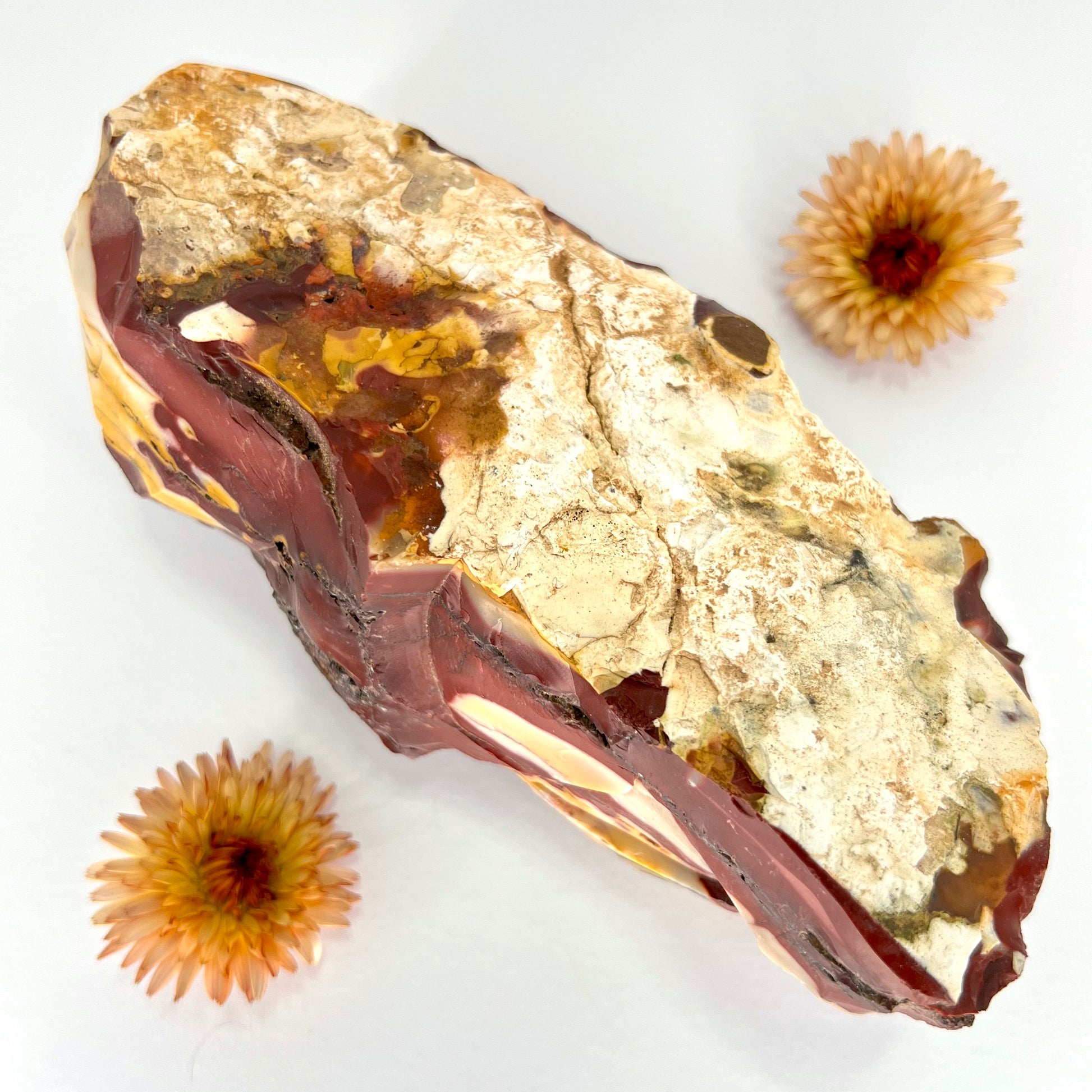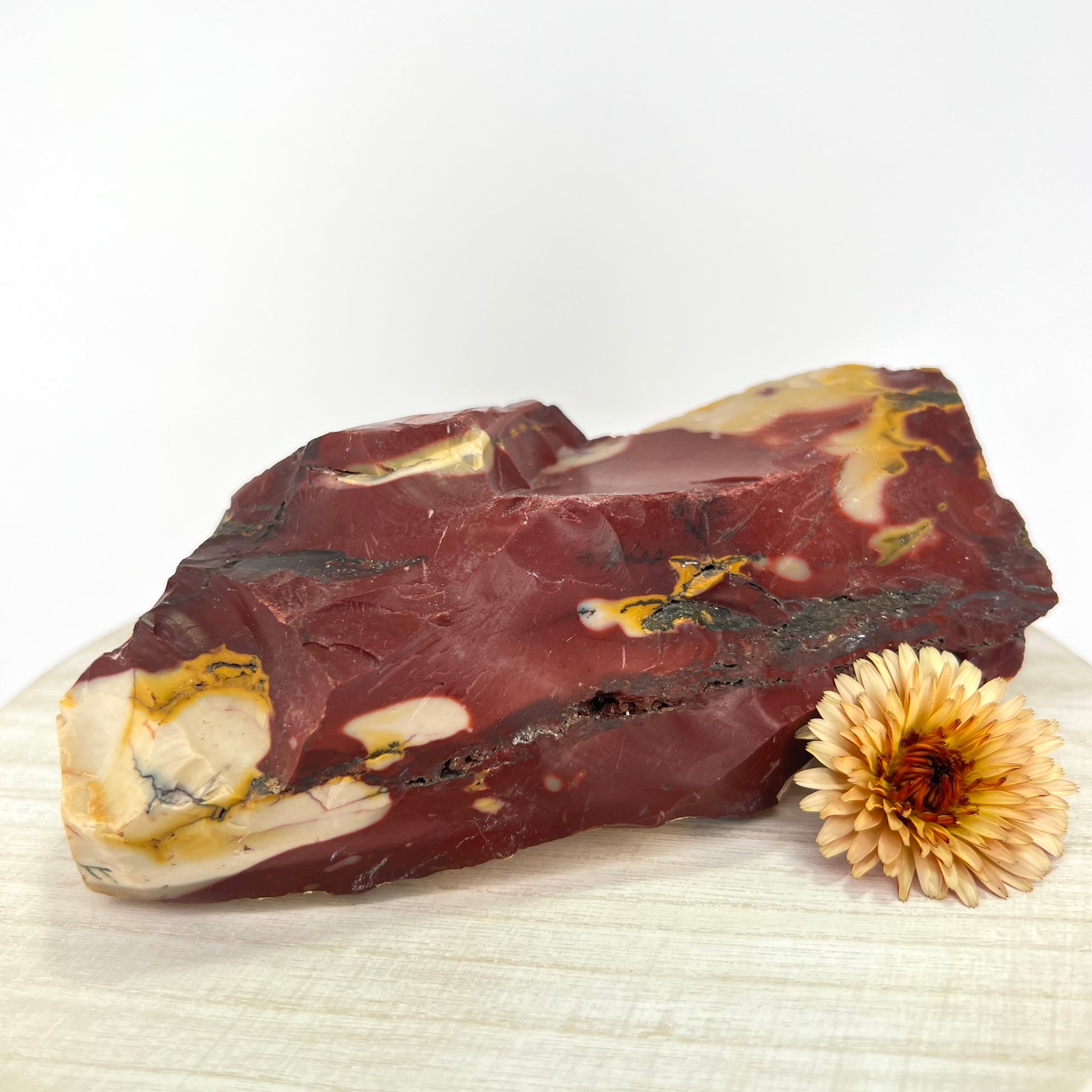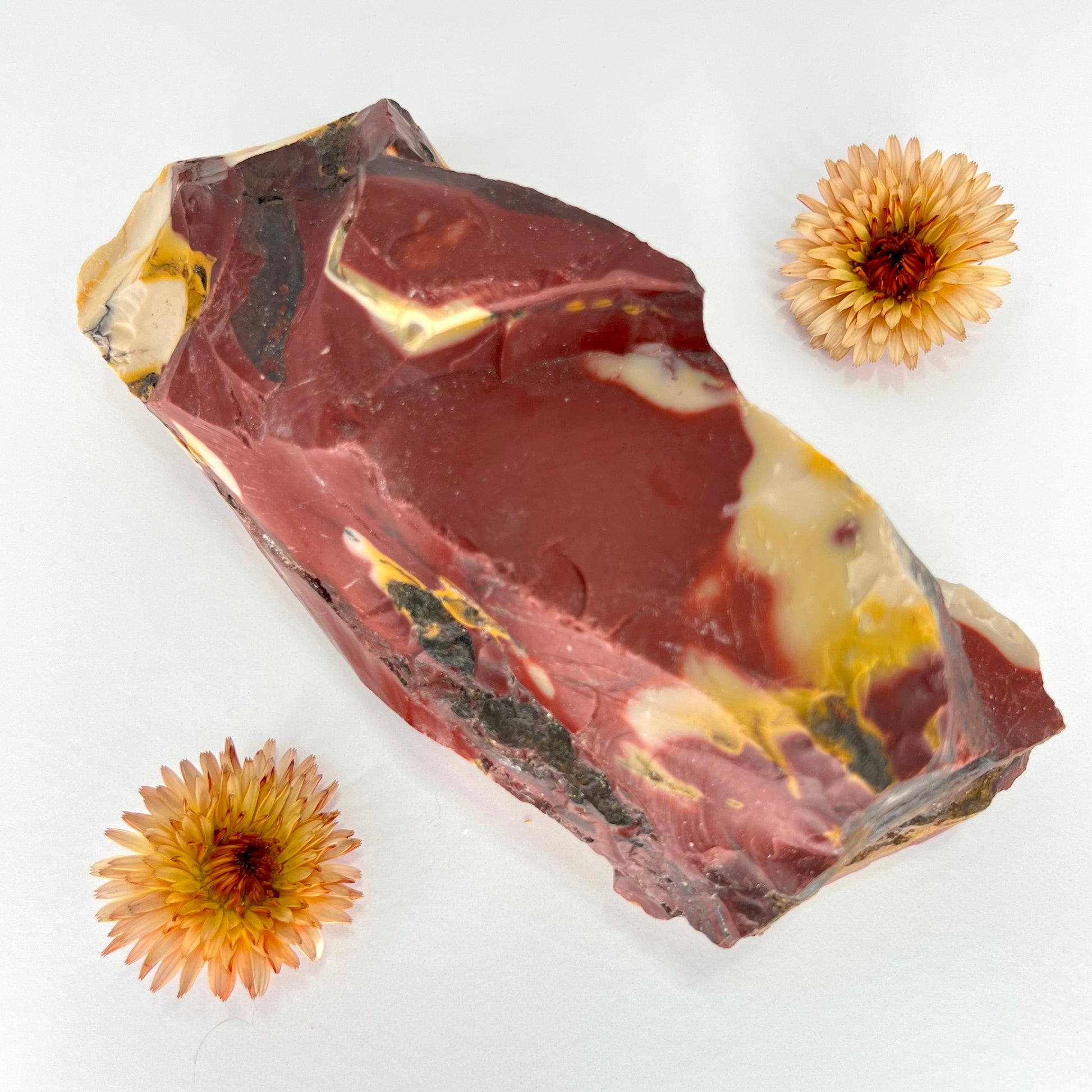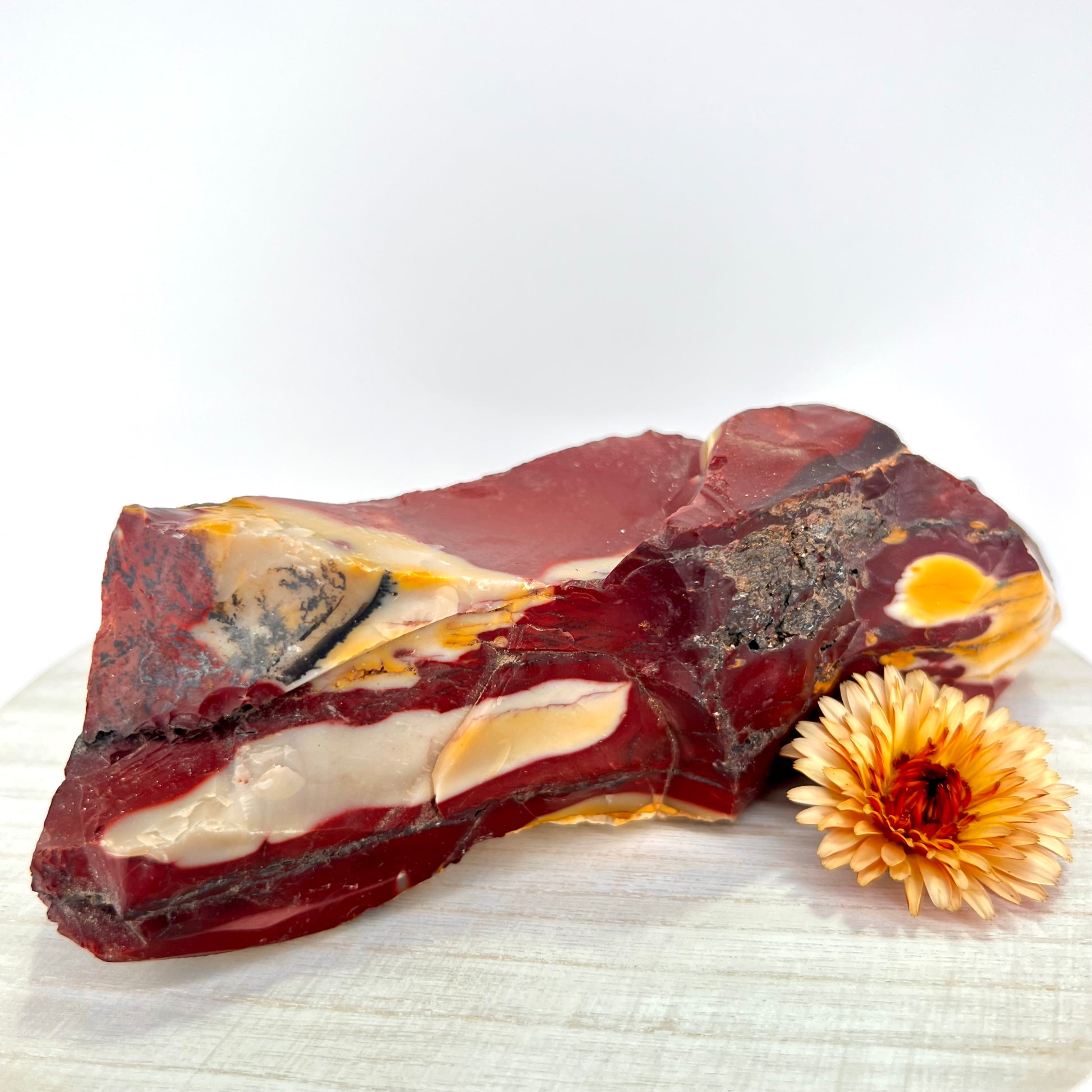 Mookaite Jasper is a vibrant, multi-colored stone found exclusively in Western Australia, known for its rich earth tones—ranging from deep reds and yellows to creams and purples // Formed from ancient sea sediments, Mookaite carries the grounding energy of the land and the adaptability of water, making it a powerful stone for strength, protection, and embracing change.