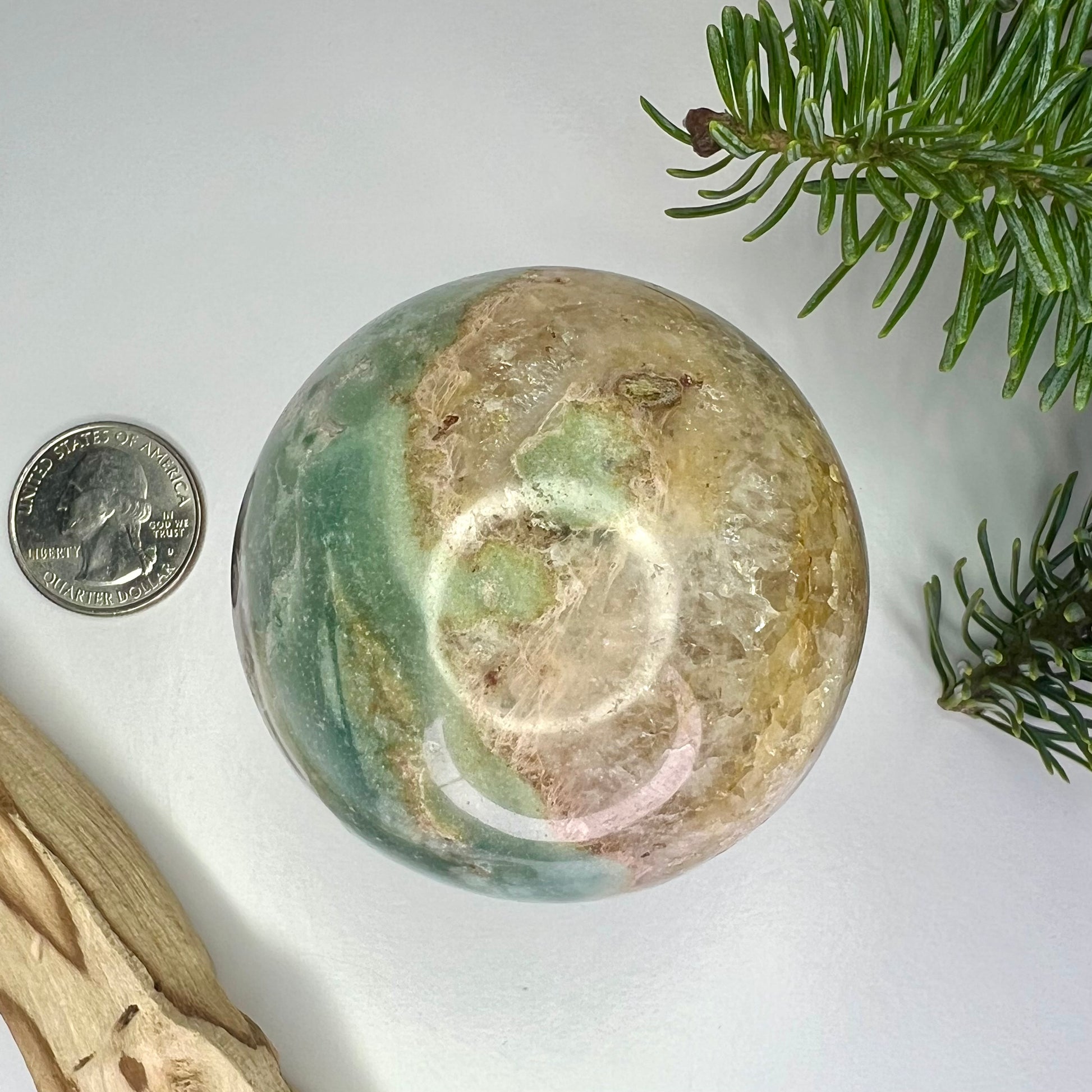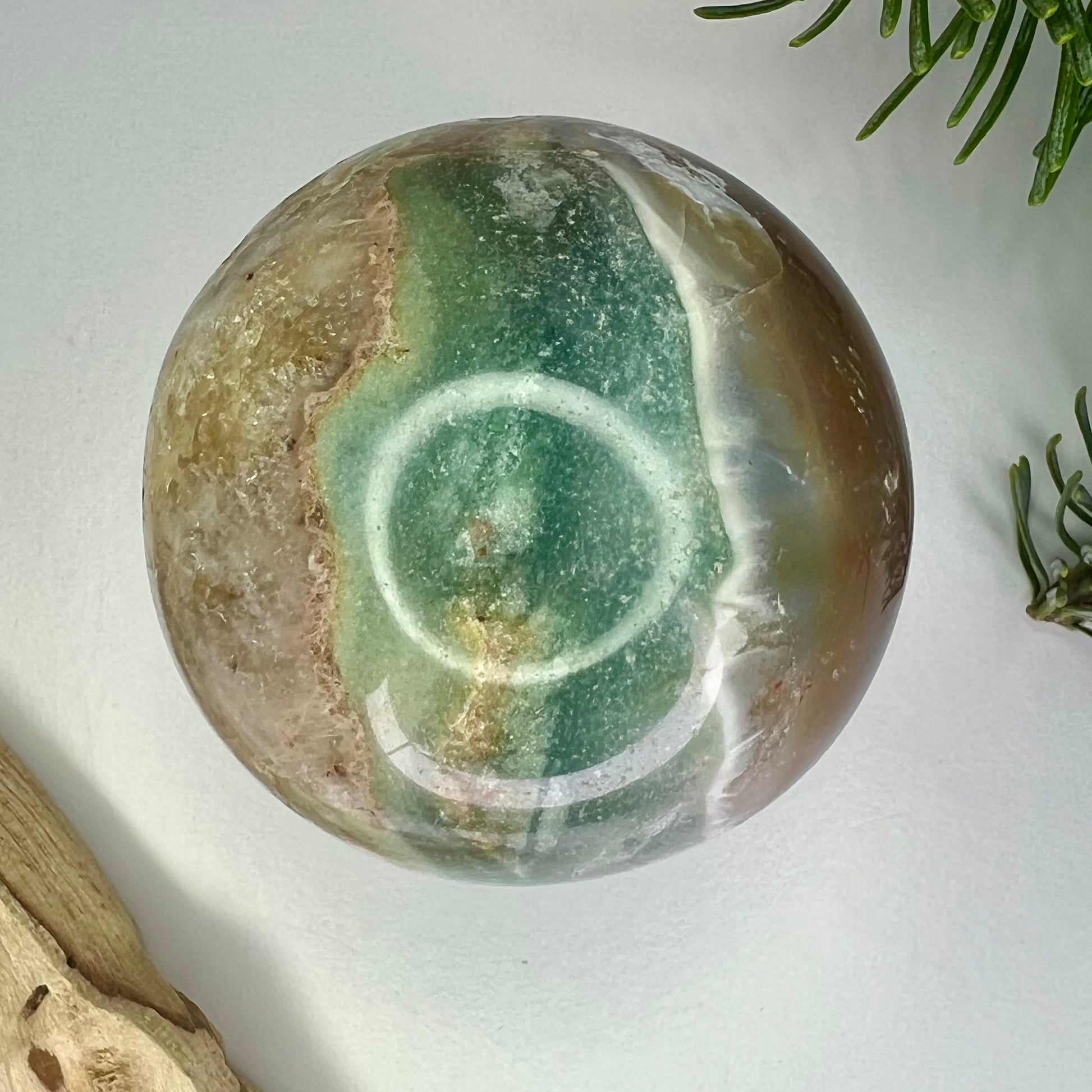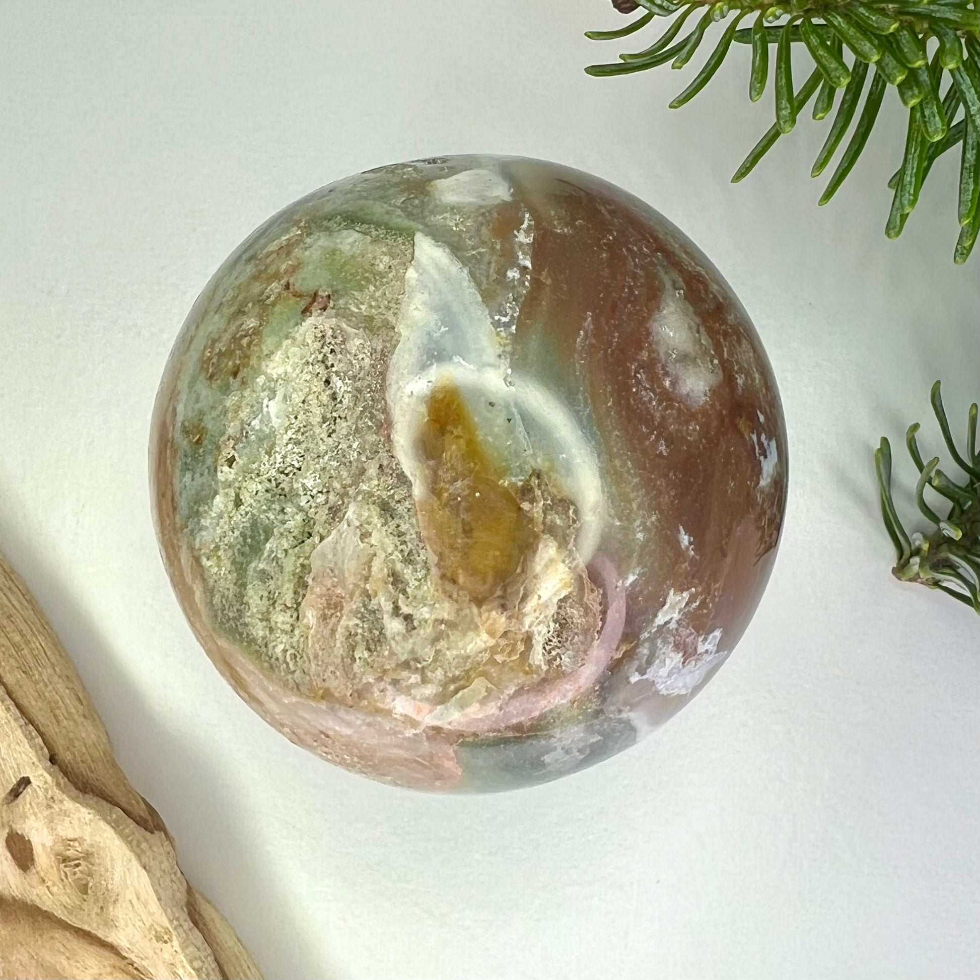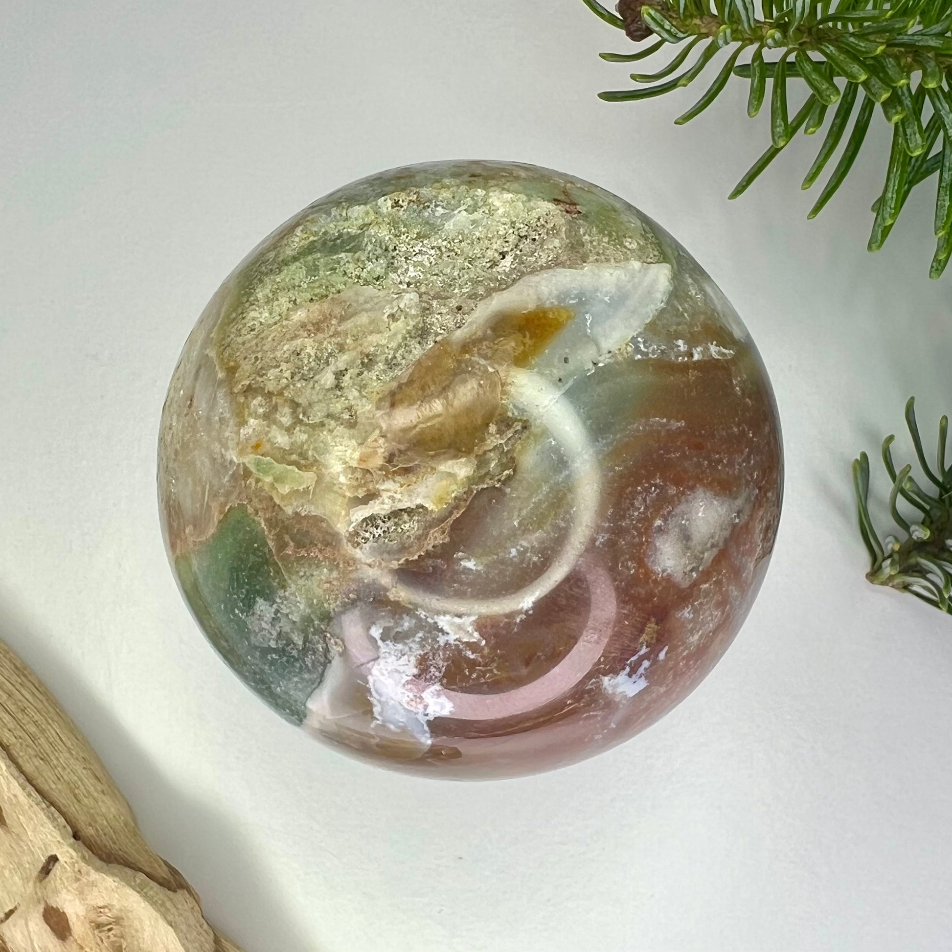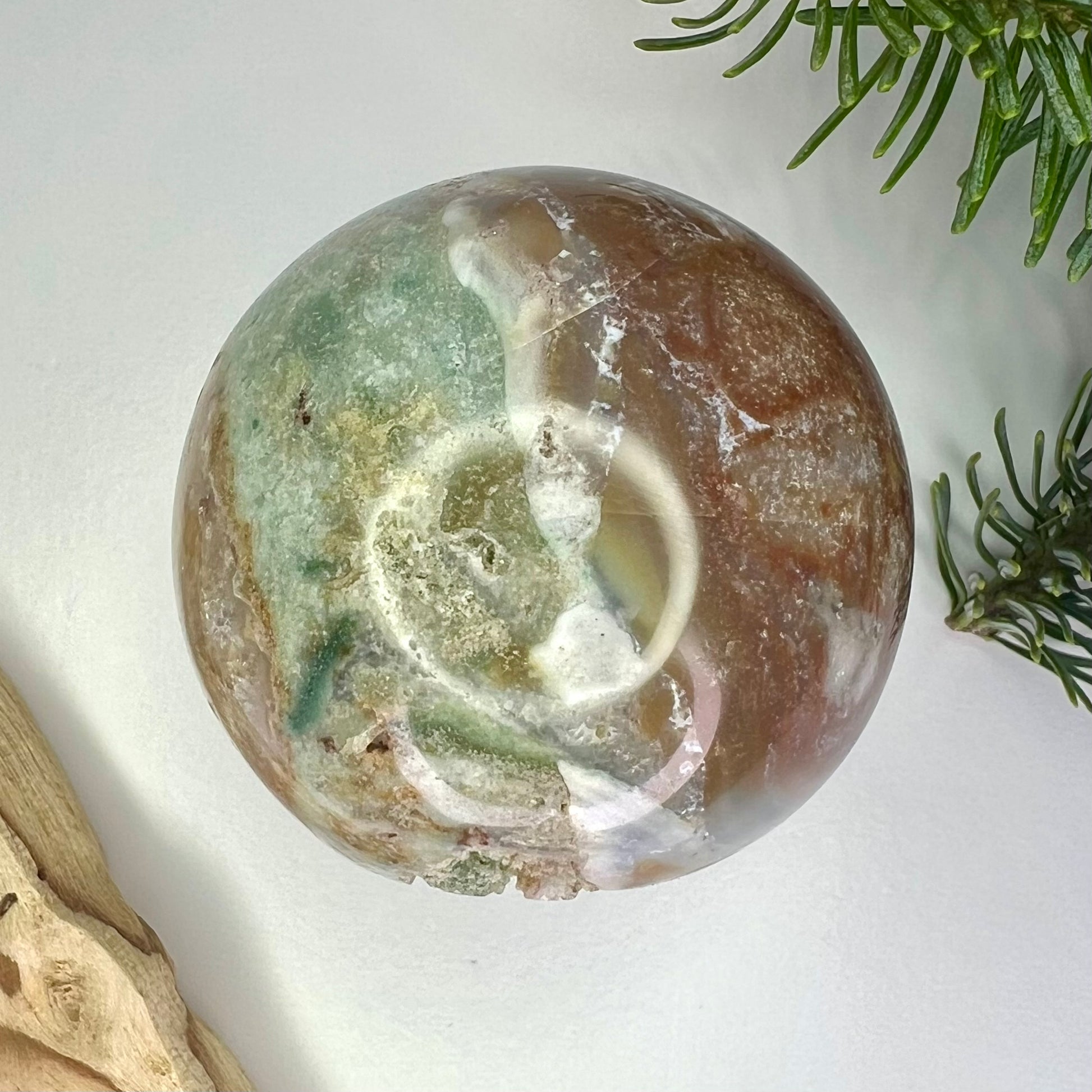 Ocean Jasper is a unique variety of jasper found only along the rugged coastlines of Madagascar // Its swirling patterns and orb-like inclusions are formed through ancient volcanic activity and mineral-rich waters, often found near chalcedony and quartz veins // Each piece reflects the layered movement of Earth and sea, holding deep emotional and energetic wisdom.