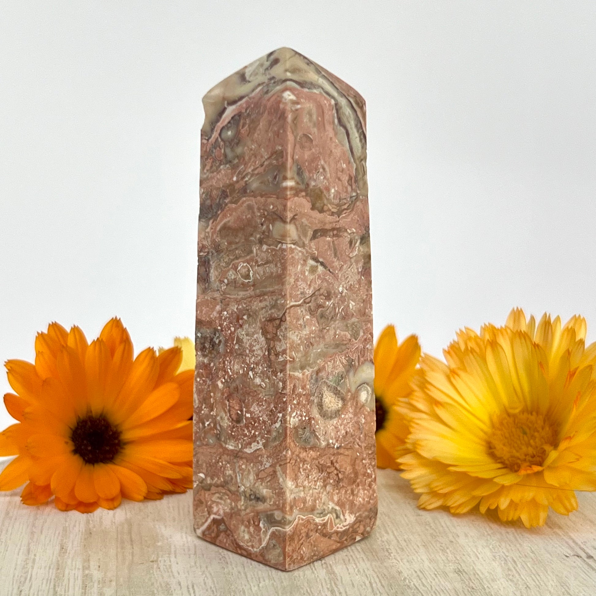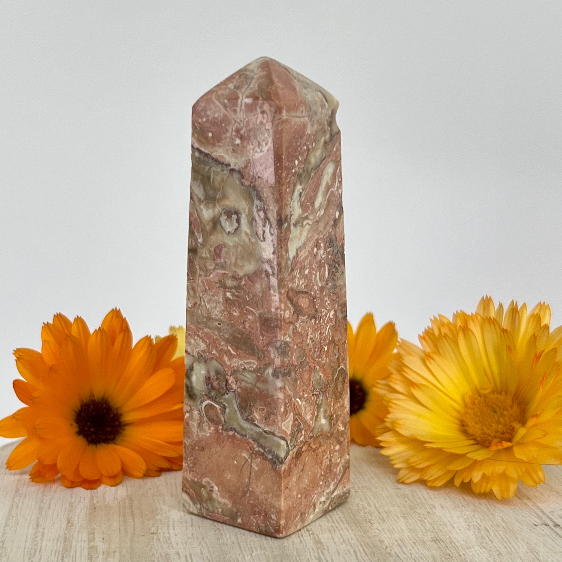 Pink Picasso Jasper is a cheerful stone that encourages celebration & embracing life with optimism & openness // Fosters positive transformations in relationships, attracting supportive & loving individuals into one's life // Nurtures healthy friendships & aids in rekindling old ones that may have been lost // With its grounding & calming qualities, Pink Picasso Jasper promotes inner strength & self-discipline.