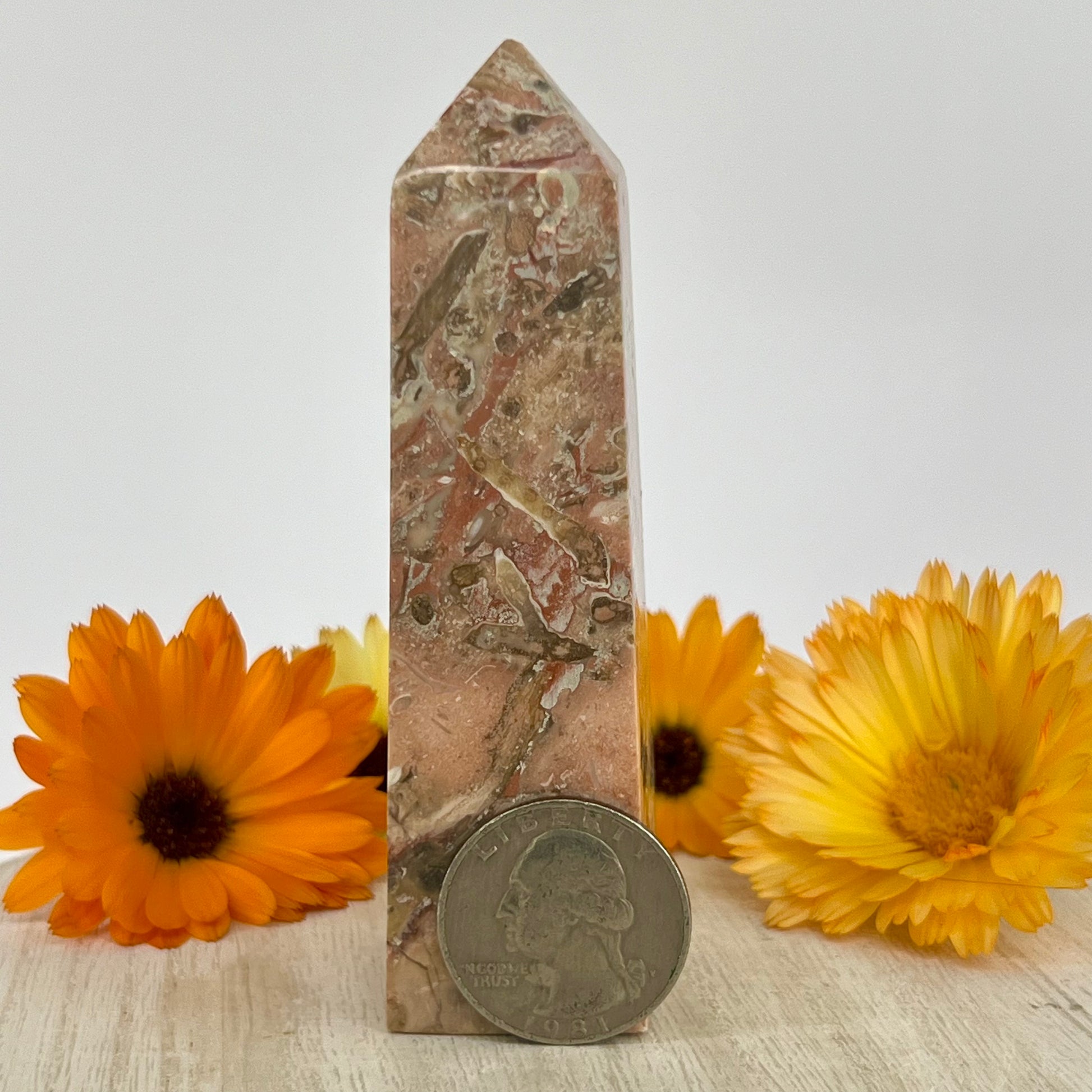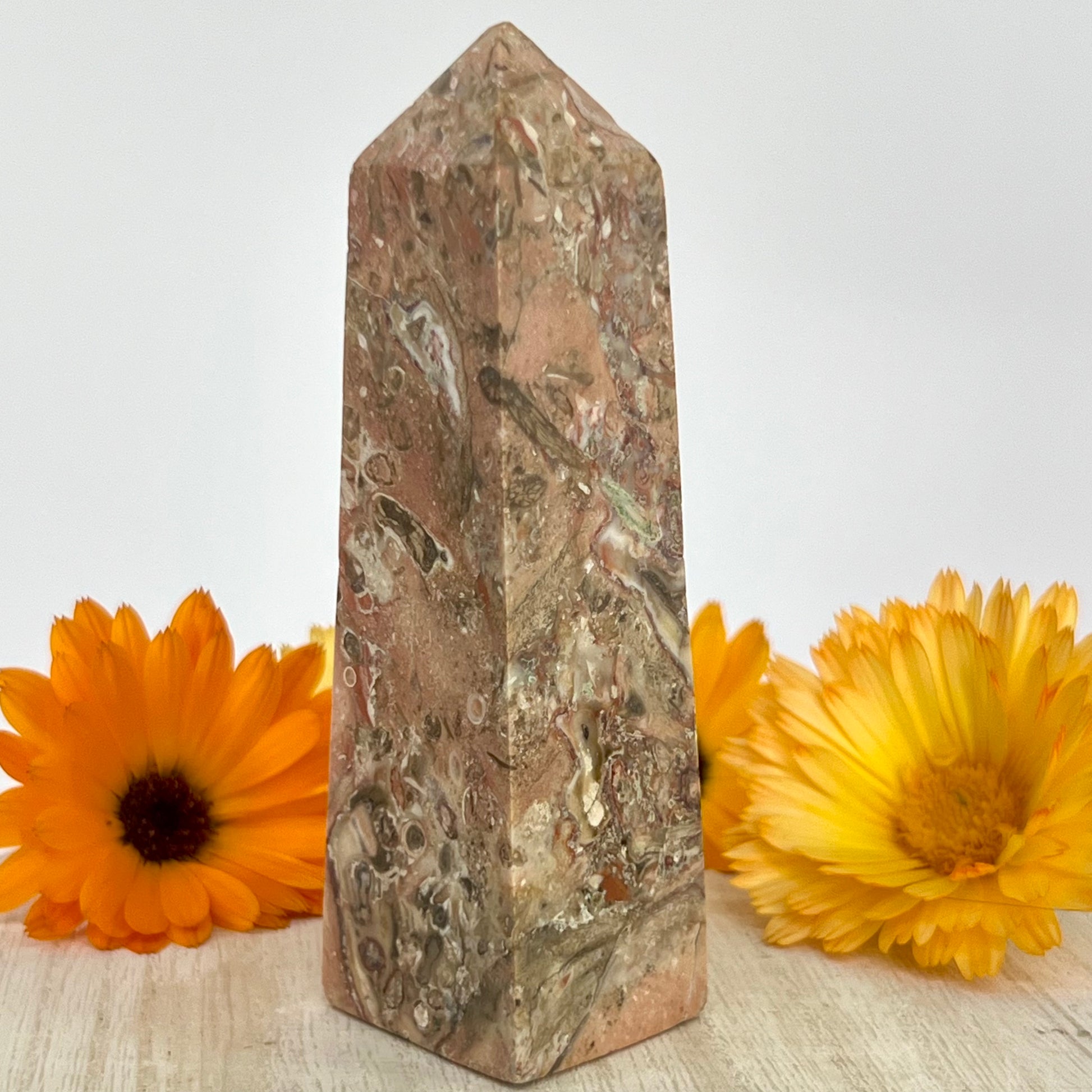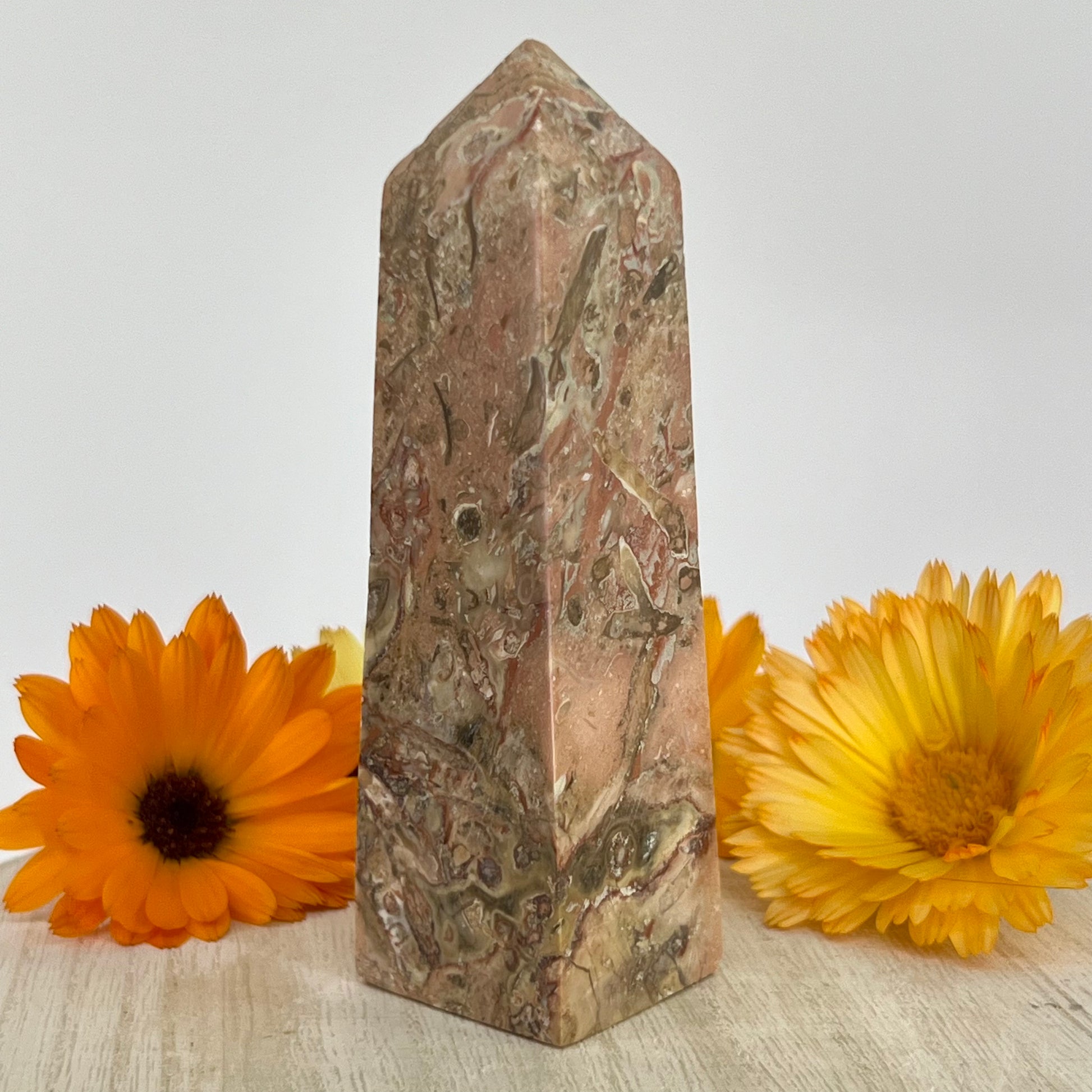 Pink Picasso Jasper is a cheerful stone that encourages celebration & embracing life with optimism & openness // Fosters positive transformations in relationships, attracting supportive & loving individuals into one's life // Nurtures healthy friendships & aids in rekindling old ones that may have been lost // With its grounding & calming qualities, Pink Picasso Jasper promotes inner strength & self-discipline.