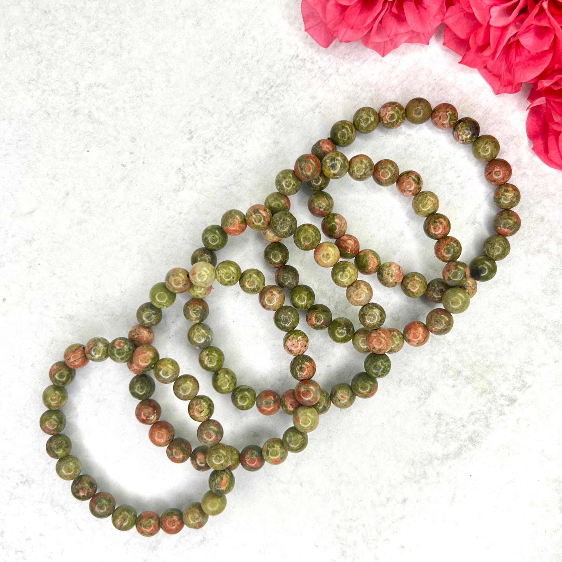 Unakite // A powerful tool for enhancing visions & deepening spiritual connection // Gently guides your consciousness to the present moment, clearing away distractions & promoting emotional balance // Highly sought after for its ability to facilitate personal growth, particularly in overcoming past traumas & blockages // Through its influence on the Third Eye Chakra, Unakite empowers your visionary abilities, helping you manifest your dreams & desires with clarity // The green and pink hues of Unakite symbolizes the harmonizing of both the physical & emotional aspects of the heart.