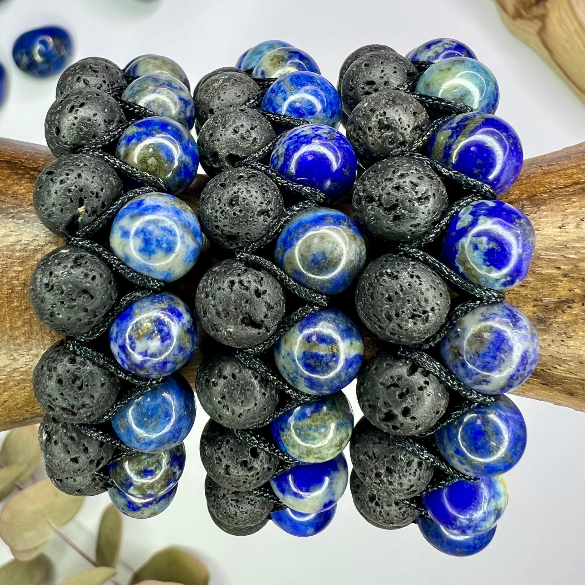 Lapis Lazuli // Lava // Woven Bracelet // 8mm