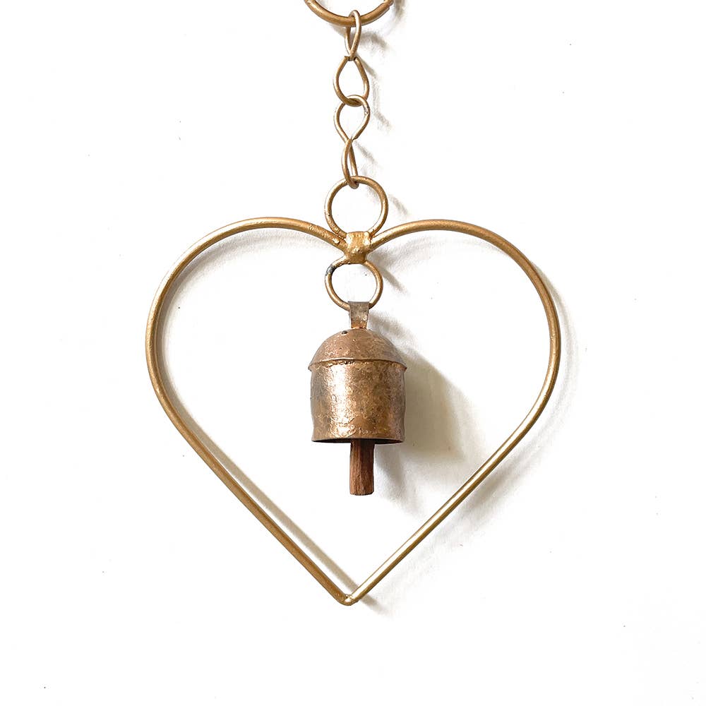 The mini heart wind chime features a golden heart that glistens in the sunlight and a mini bell that hangs in the center. It's perfect for infusing any space with warmth and charm, the magical sound of the bell creates a serene and calming ambiance. Suitable for both indoor and outdoor settings, this exquisite wind chime combines visual appeal with melodic harmony, making it a lovely addition to your home or garden.
