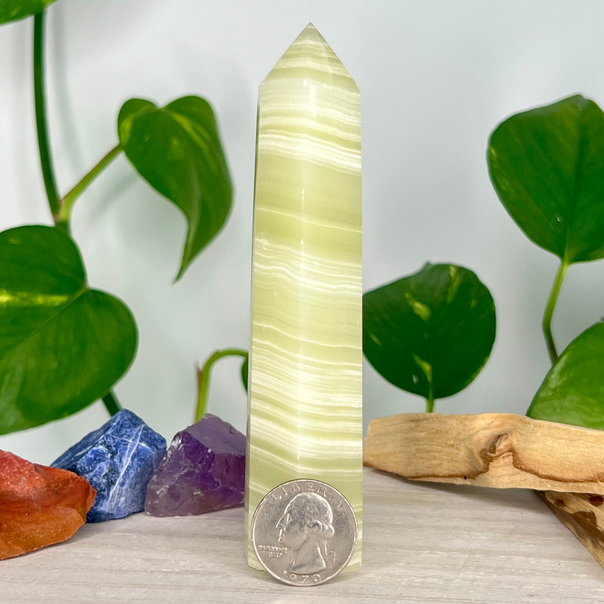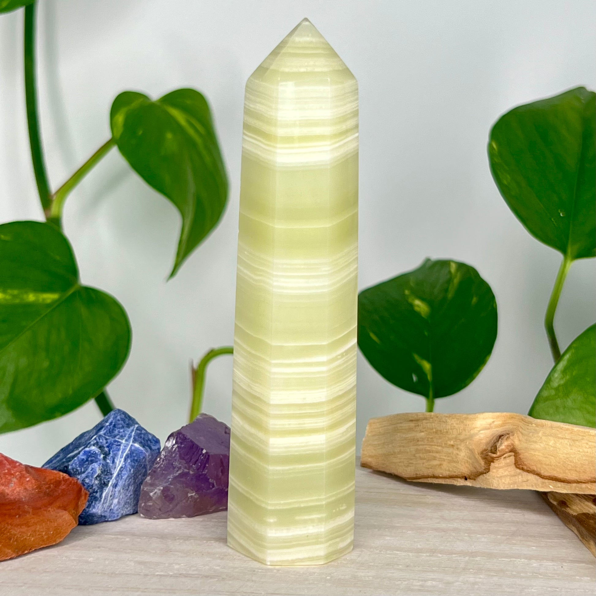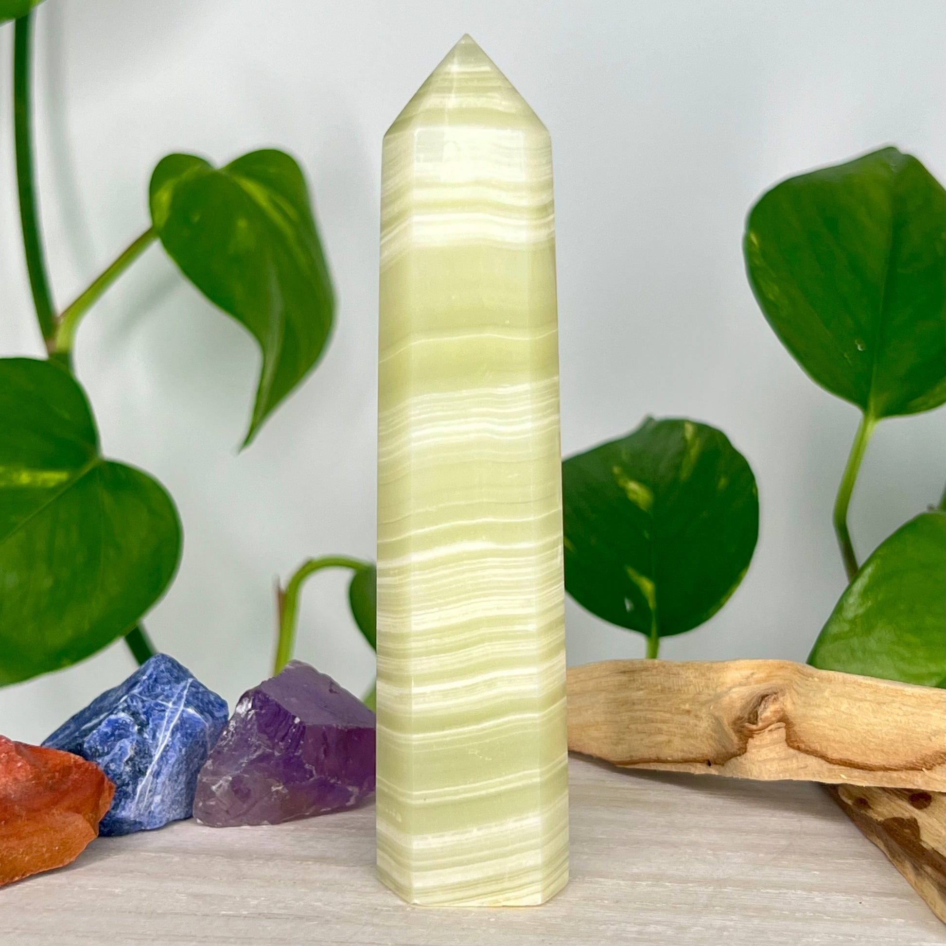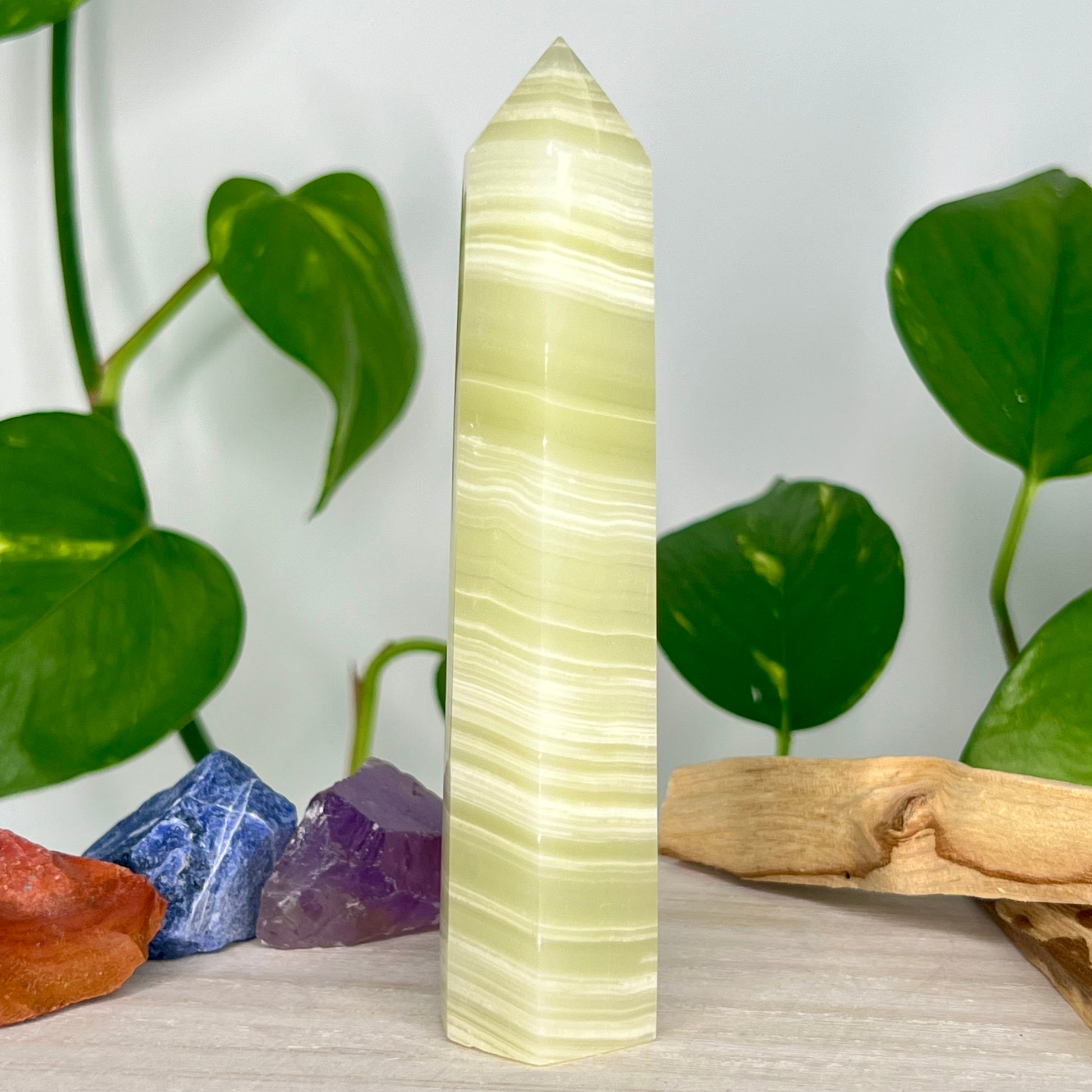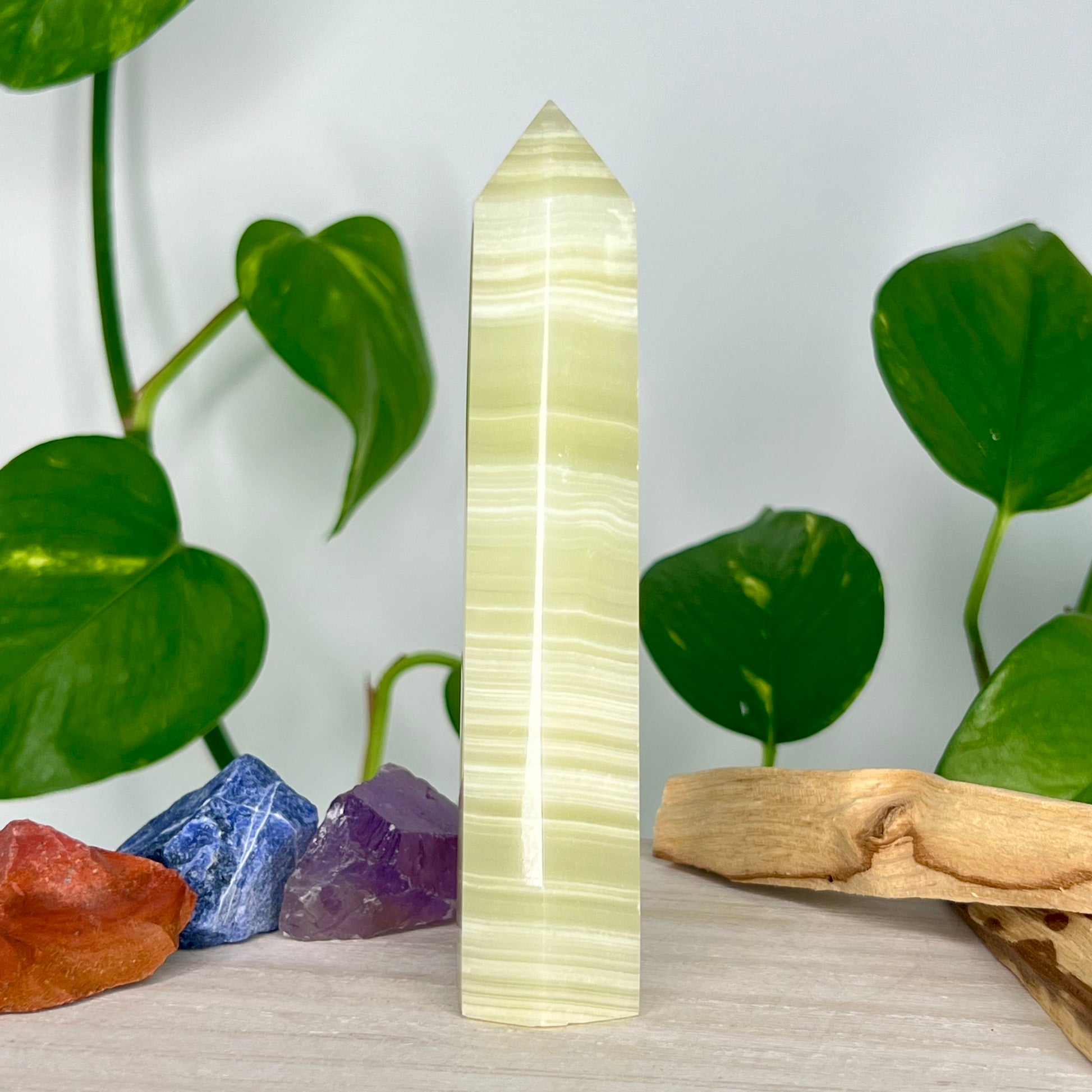Green Onyx, a variant of Onyx, embodies its core properties of strength, willpower & discipline, while specifically stimulating these attributes from the heart // By soothing the heart, it promotes emotional calmness & enables a tranquil state of mind, facilitating the summoning of inner endurance & persistence // Encourages truthful expression from the heart, fostering honesty & profound realizations by aligning the heart with the brain. It serves as an excellent mineral for working with the Heart Chakra.