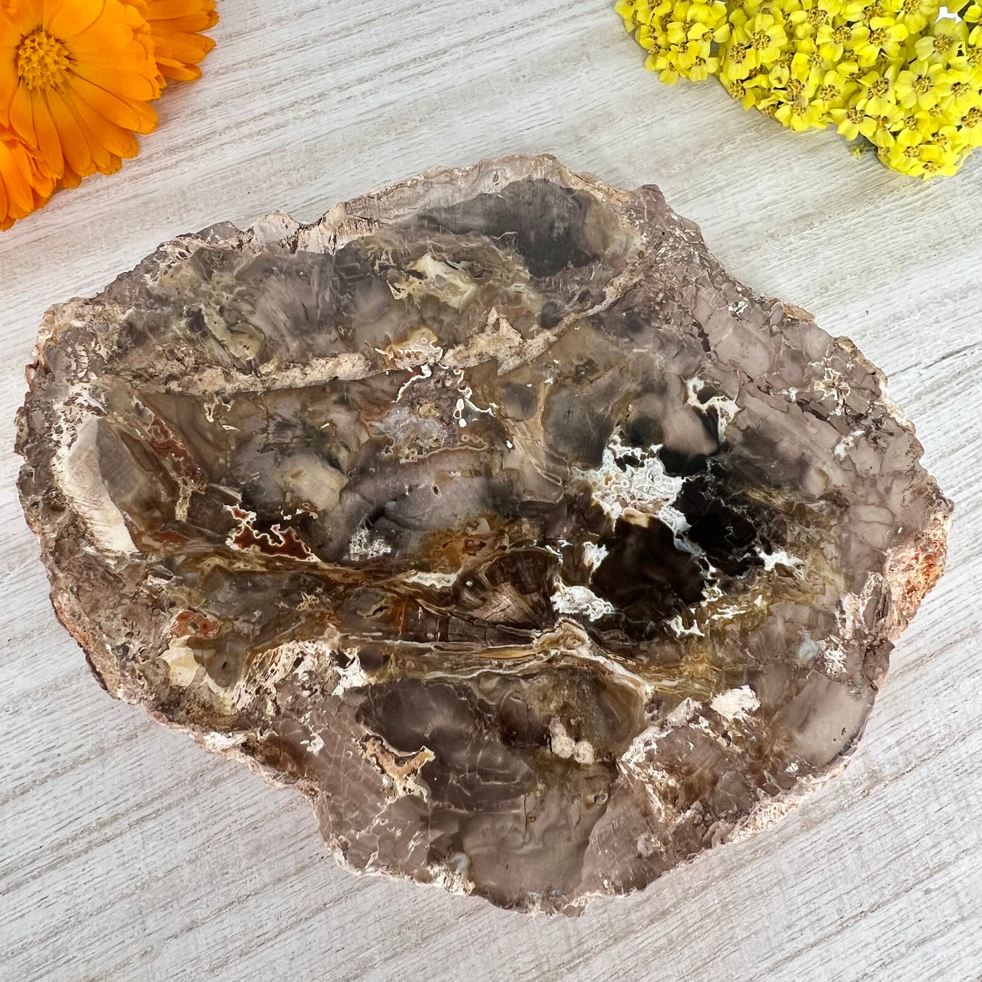 Petrified Wood is fossilized ancient wood that has slowly transformed over millions of years, replaced and hardened by minerals like quartz, chalcedony, and jasper // Found globally, with notable deposits in the U.S., Madagascar, and Indonesia, it carries the grounding essence of Earth’s ancient wisdom and time.