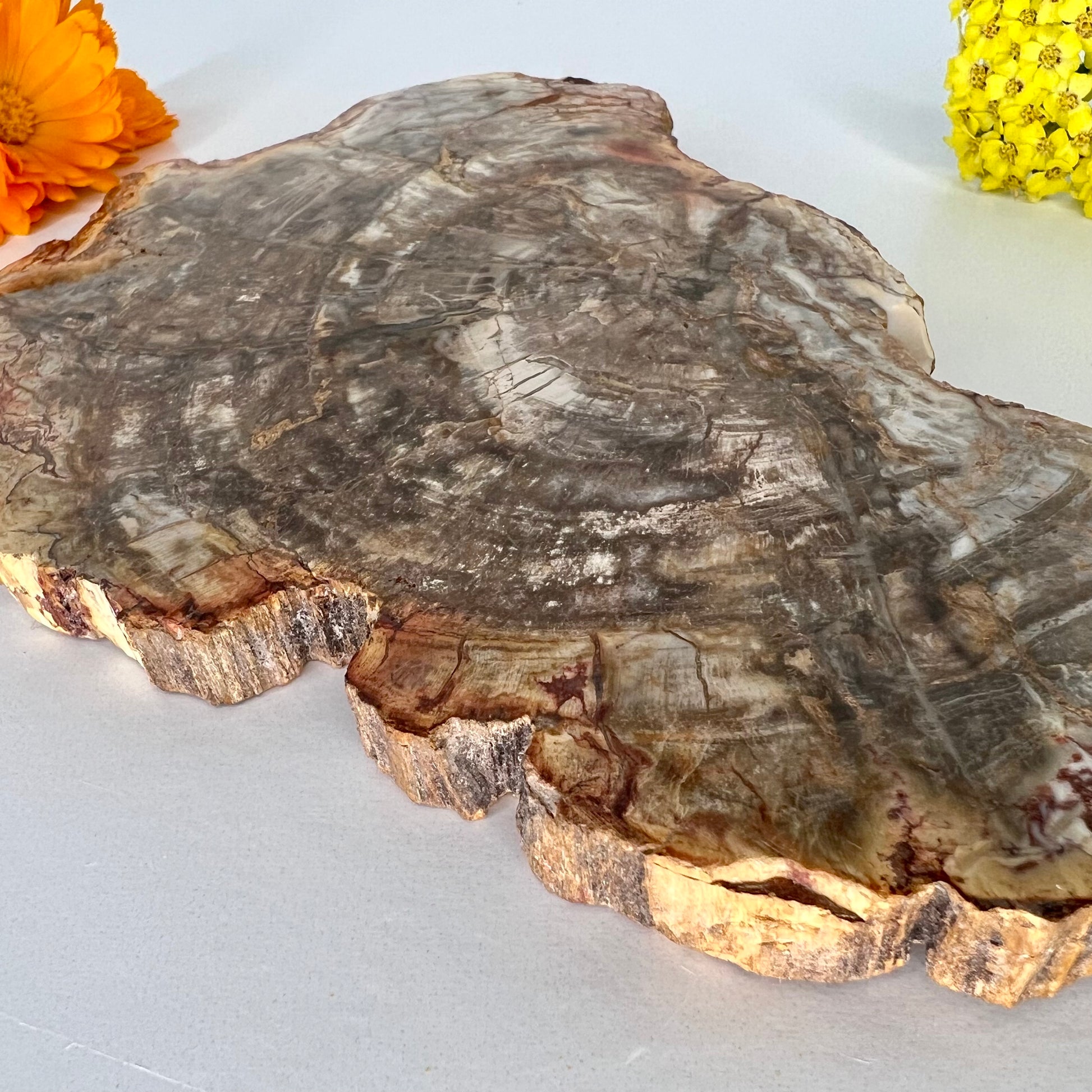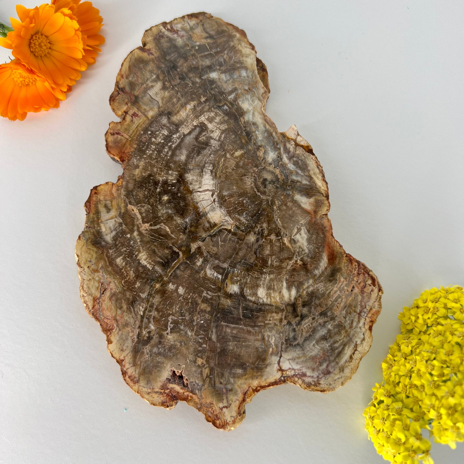 Petrified Wood is fossilized ancient wood that has slowly transformed over millions of years, replaced and hardened by minerals like quartz, chalcedony, and jasper // Found globally, with notable deposits in the U.S., Madagascar, and Indonesia, it carries the grounding essence of Earth’s ancient wisdom and time.