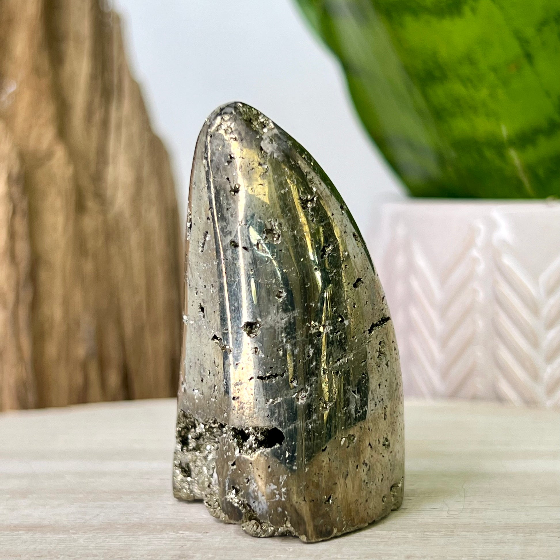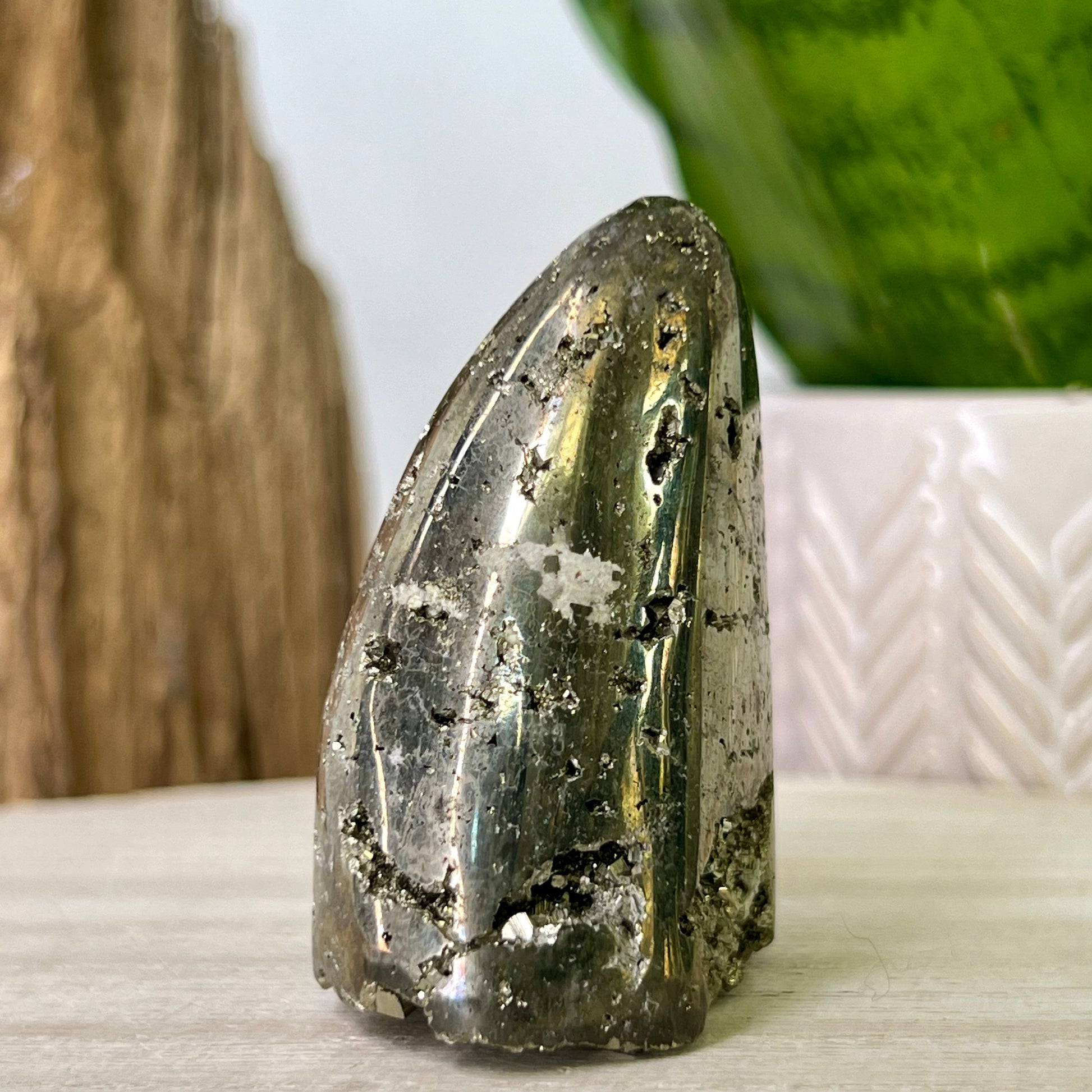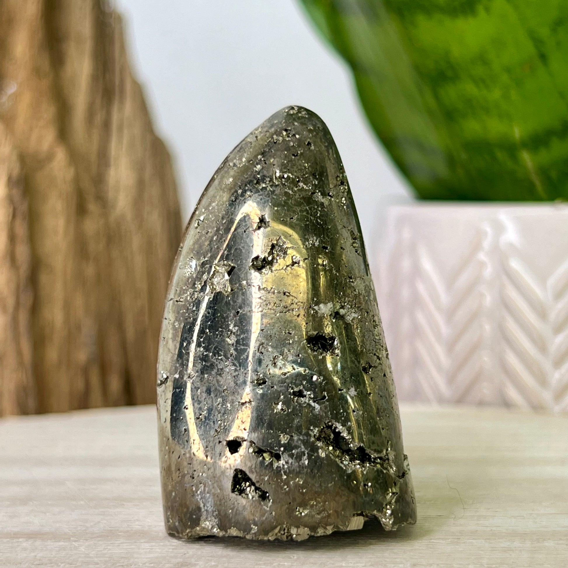 A stone of protection, determination, and focused manifestation // Pyrite shields the aura, strengthens boundaries, and helps remove negative influences or self-sabotaging patterns // Encourages a mindset rooted in confidence, resilience, and optimism, especially useful when setting goals or launching a new business or project // Known to promote follow-through, it keeps you aligned with your intentions and supports steady progress until your goals are realized.