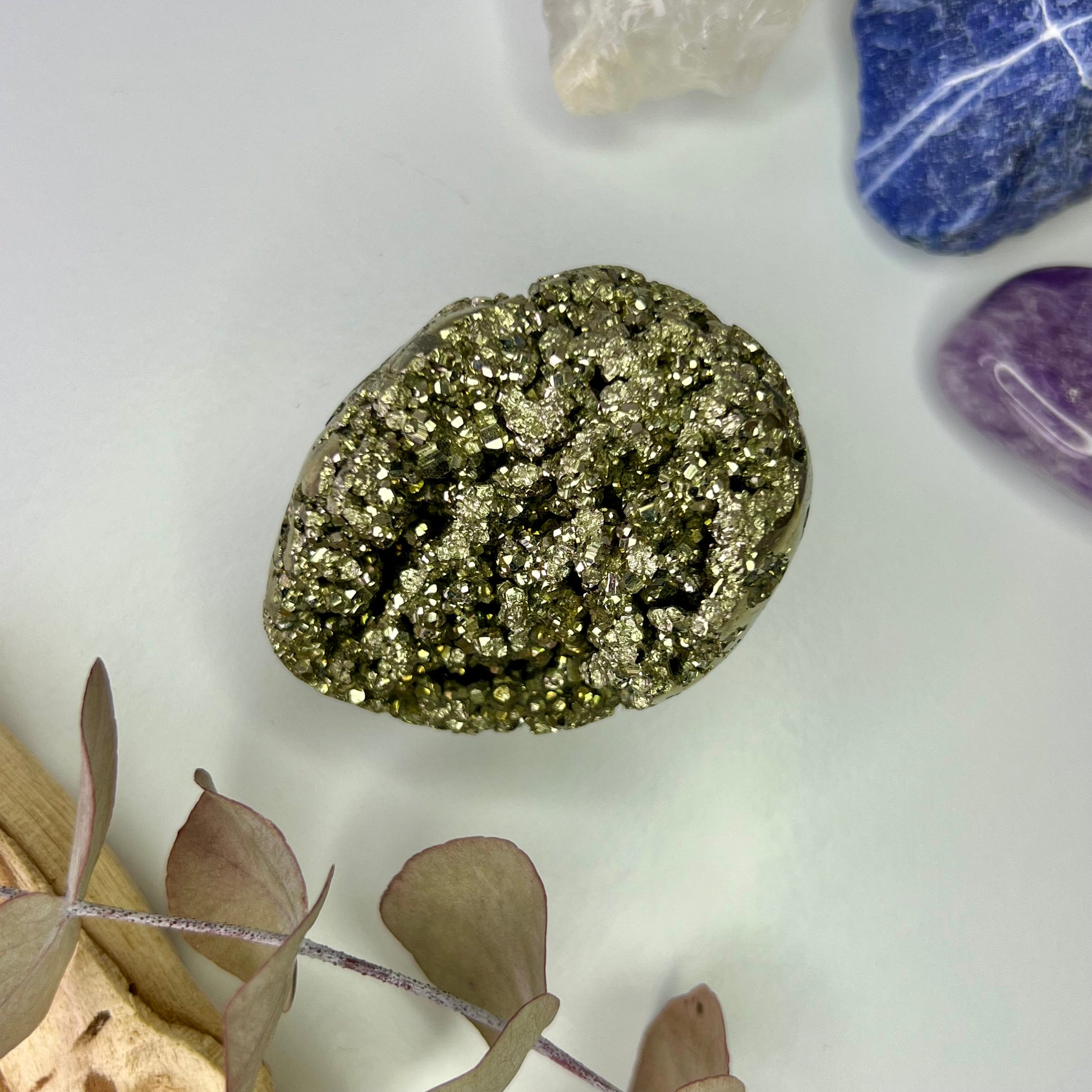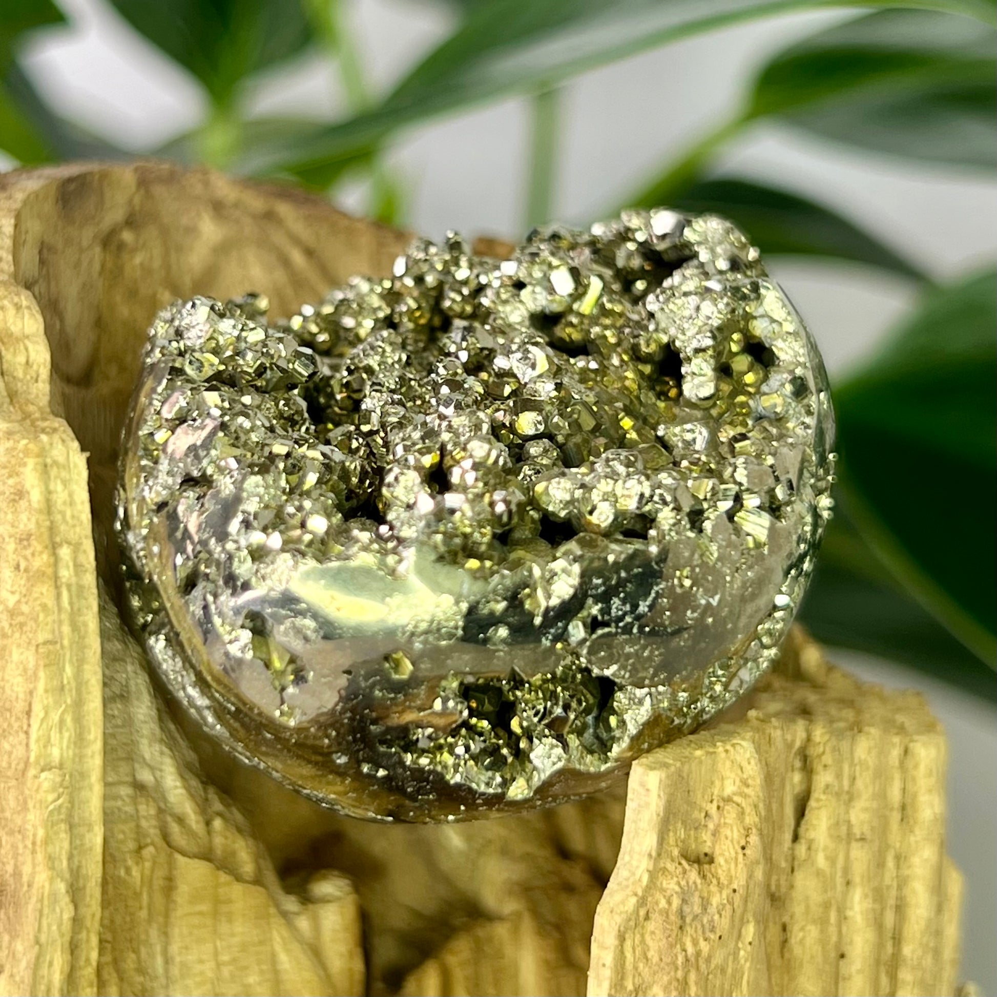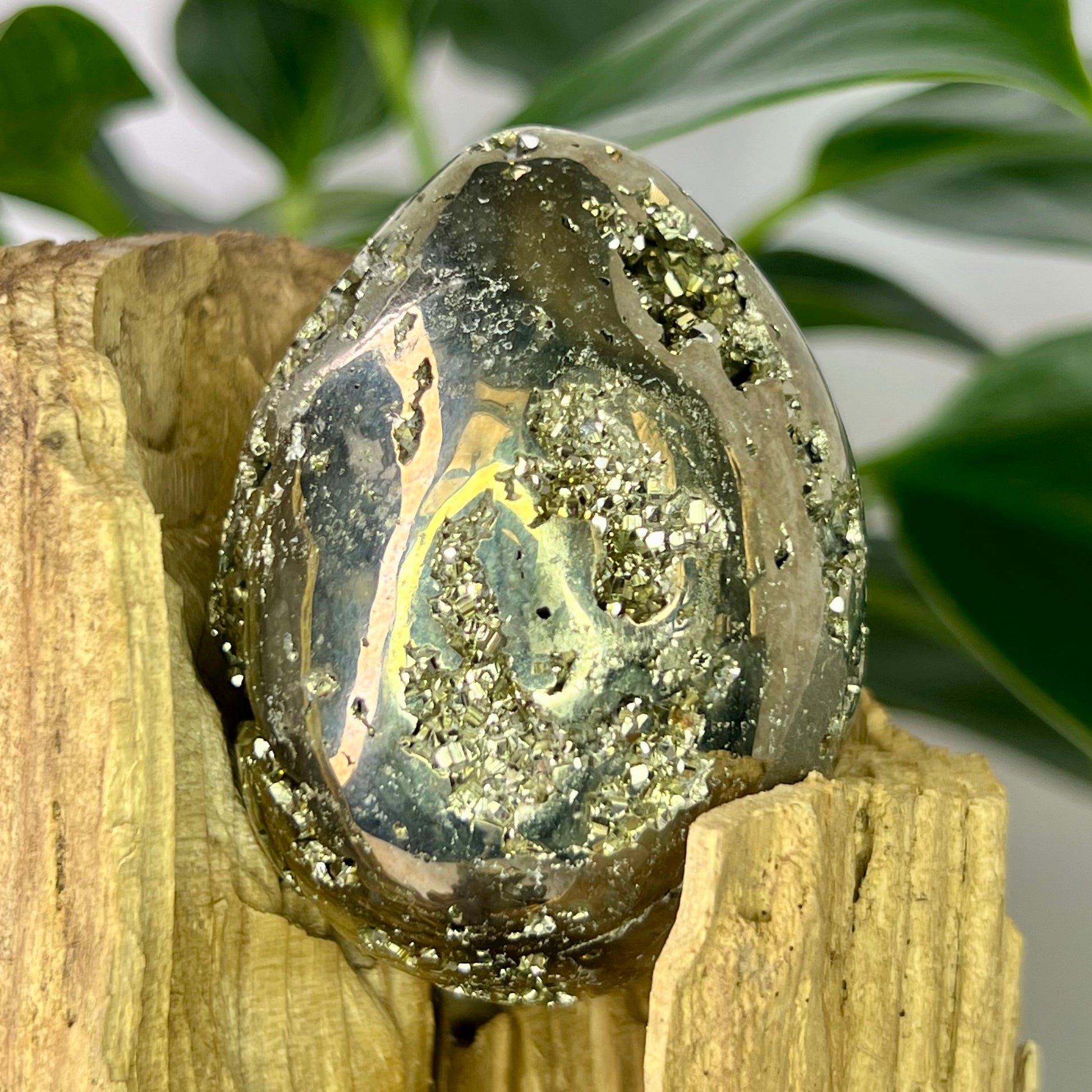 A stone of protection, determination, and focused manifestation // Pyrite shields the aura, strengthens boundaries, and helps remove negative influences or self-sabotaging patterns // Encourages a mindset rooted in confidence, resilience, and optimism, especially useful when setting goals or launching a new business or project // Known to promote follow-through, it keeps you aligned with your intentions and supports steady progress until your goals are realized.
