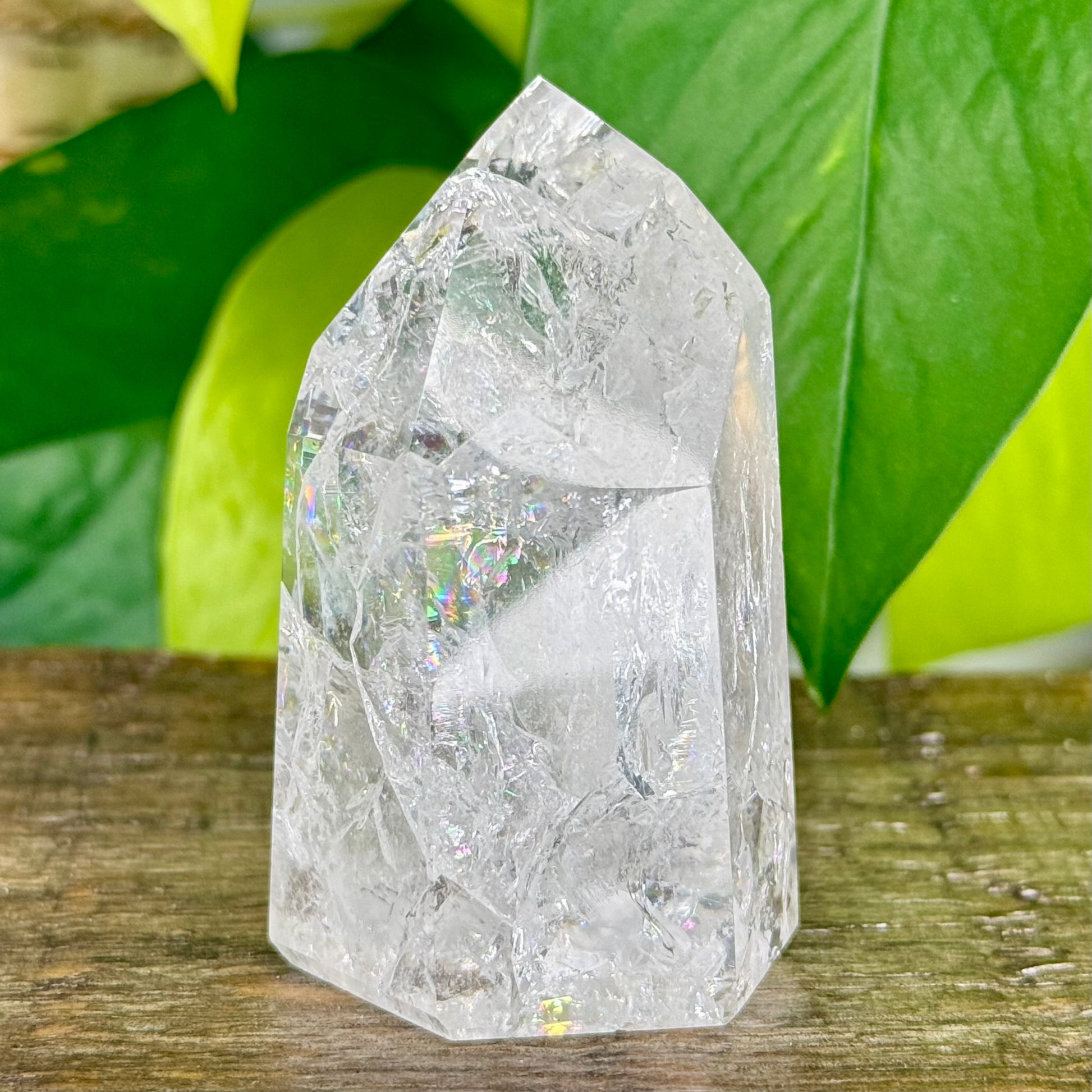 Crackle Quartz is a form of Clear Quartz that has been heat-treated to create internal fractures, resulting in brilliant rainbow flashes throughout the stone // Like traditional Quartz, it carries high vibrational energy and is one of the most versatile and essential stones in crystal healing // Found worldwide, it’s often the first stone many connect with on their crystal journey.