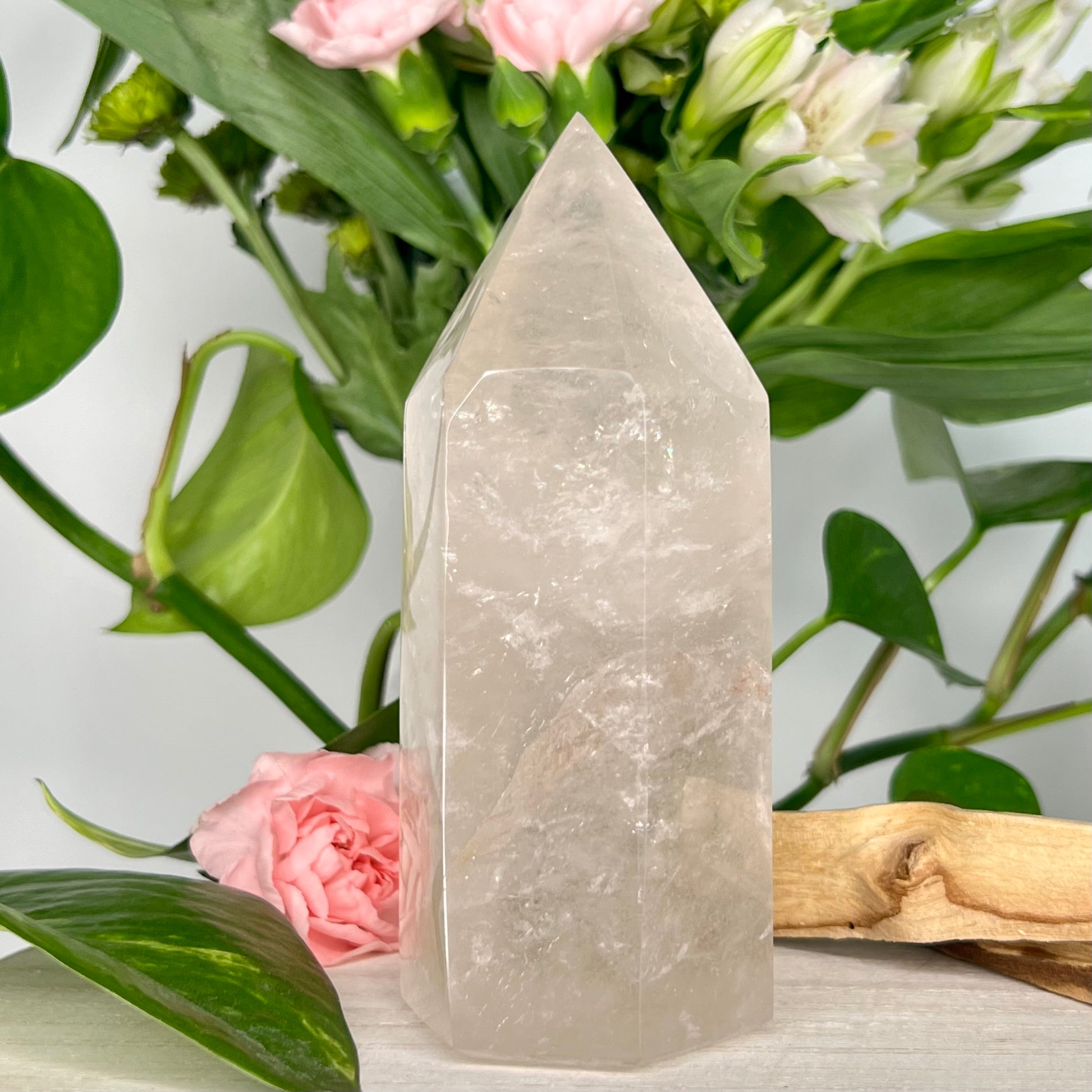 Clear Quartz is one of the most popular & essential crystal healing stones // Starting out on a crystal journey, clear quartz is one of the first materials crystal enthusiasts start with // This crystal encourages clarity on all levels // Stimulates & opens all chakras & energy pathways in the body, allowing for a more enlightened & expansive auric field // It is emotionally neutral, but will amplify any emotion with which it moves into resonance with // Quartz is a crystal for the Crown Chakra & excellent stone when working & connecting to the higher self.