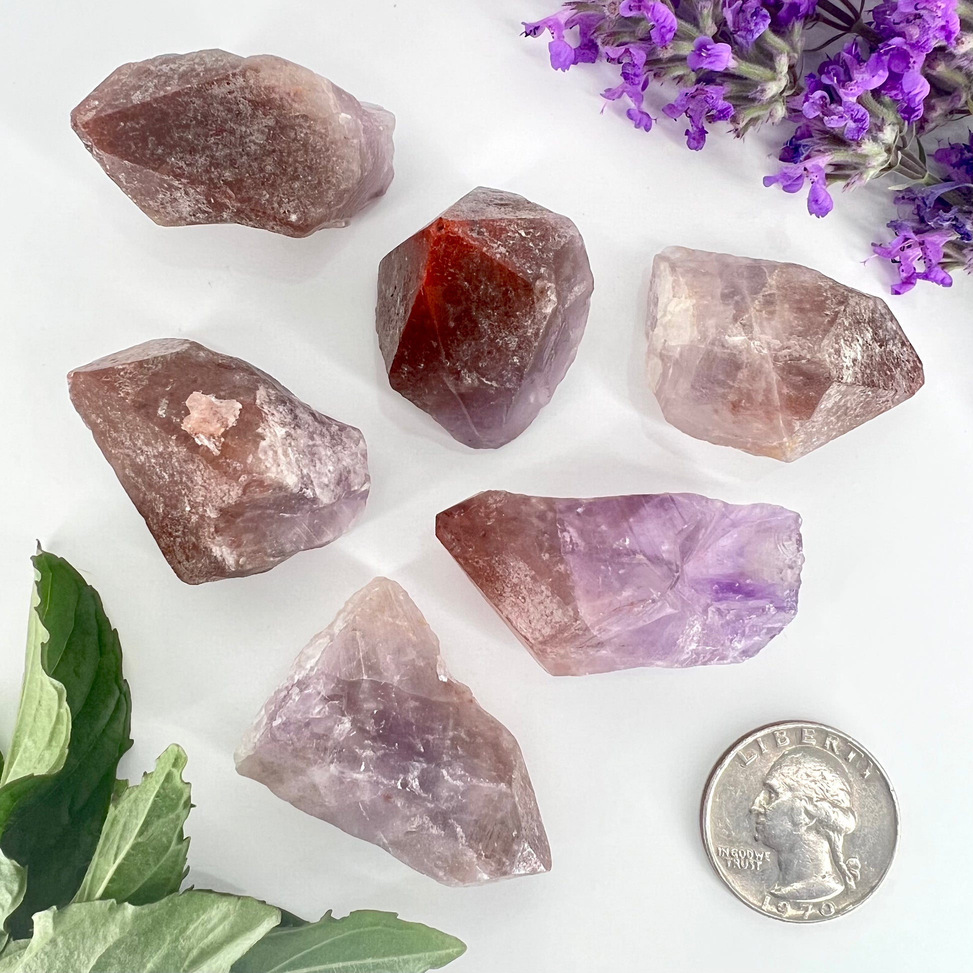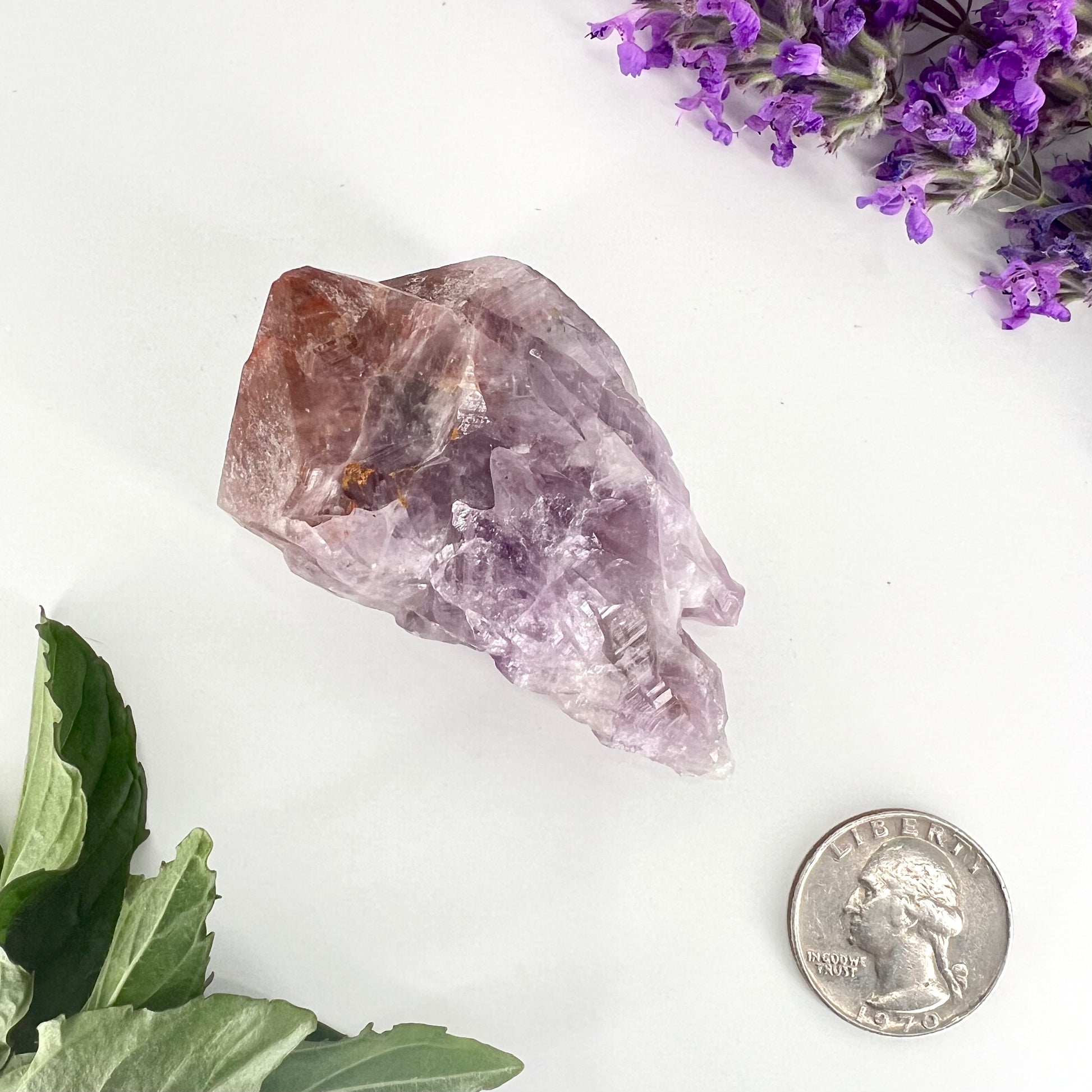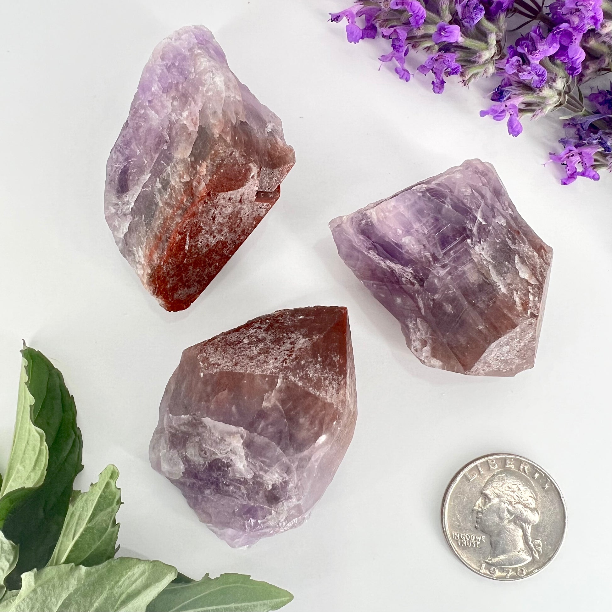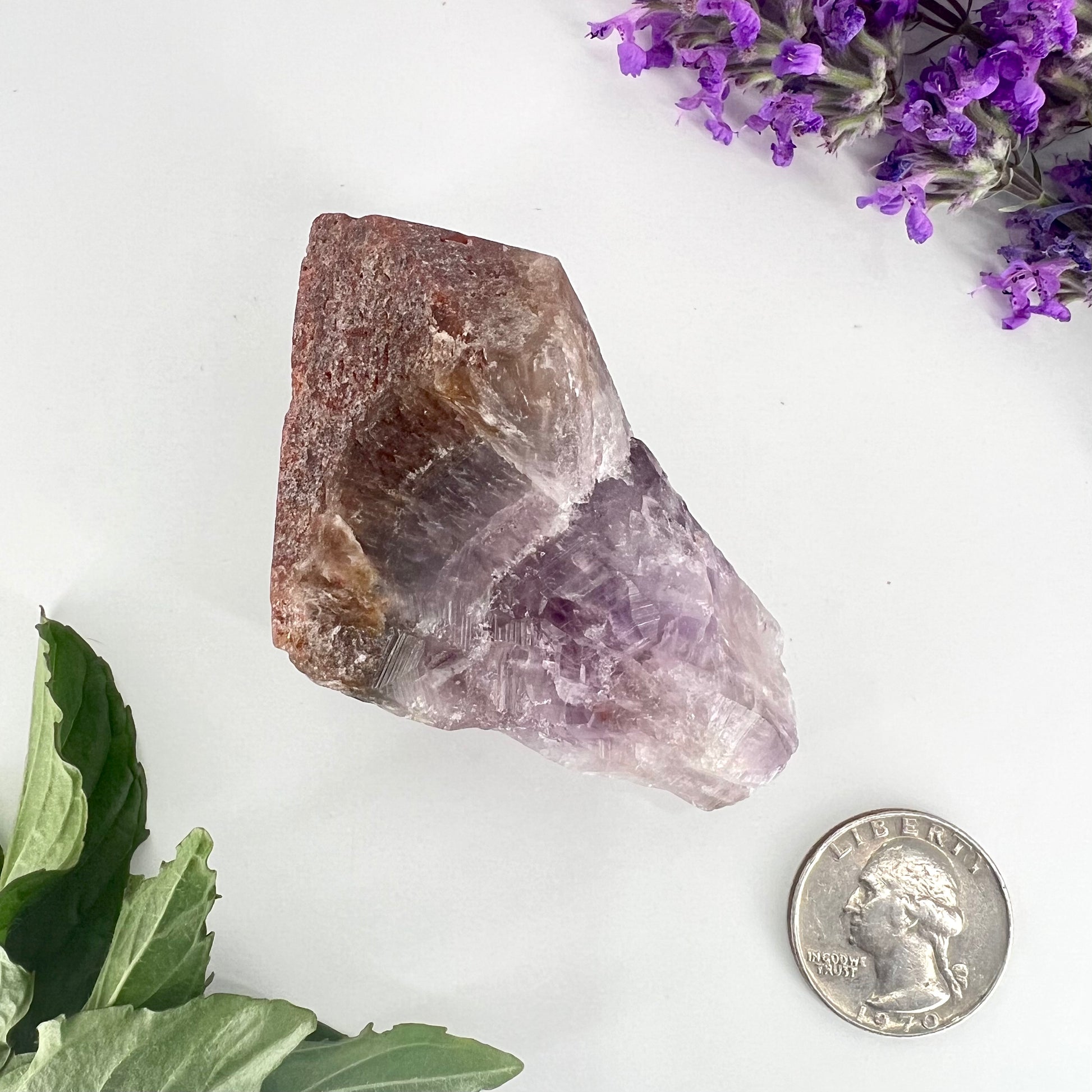 Red Cap Amethyst combines the energy of the Amethyst & Iron // It is considered a very protective & healing stone // Can help keep one grounded during spiritual work // Helps stimulate the movement of energy in the body & promote the continual flow of this energy within the aura // A known healer that has profound effects in balancing the Crown Chakra.