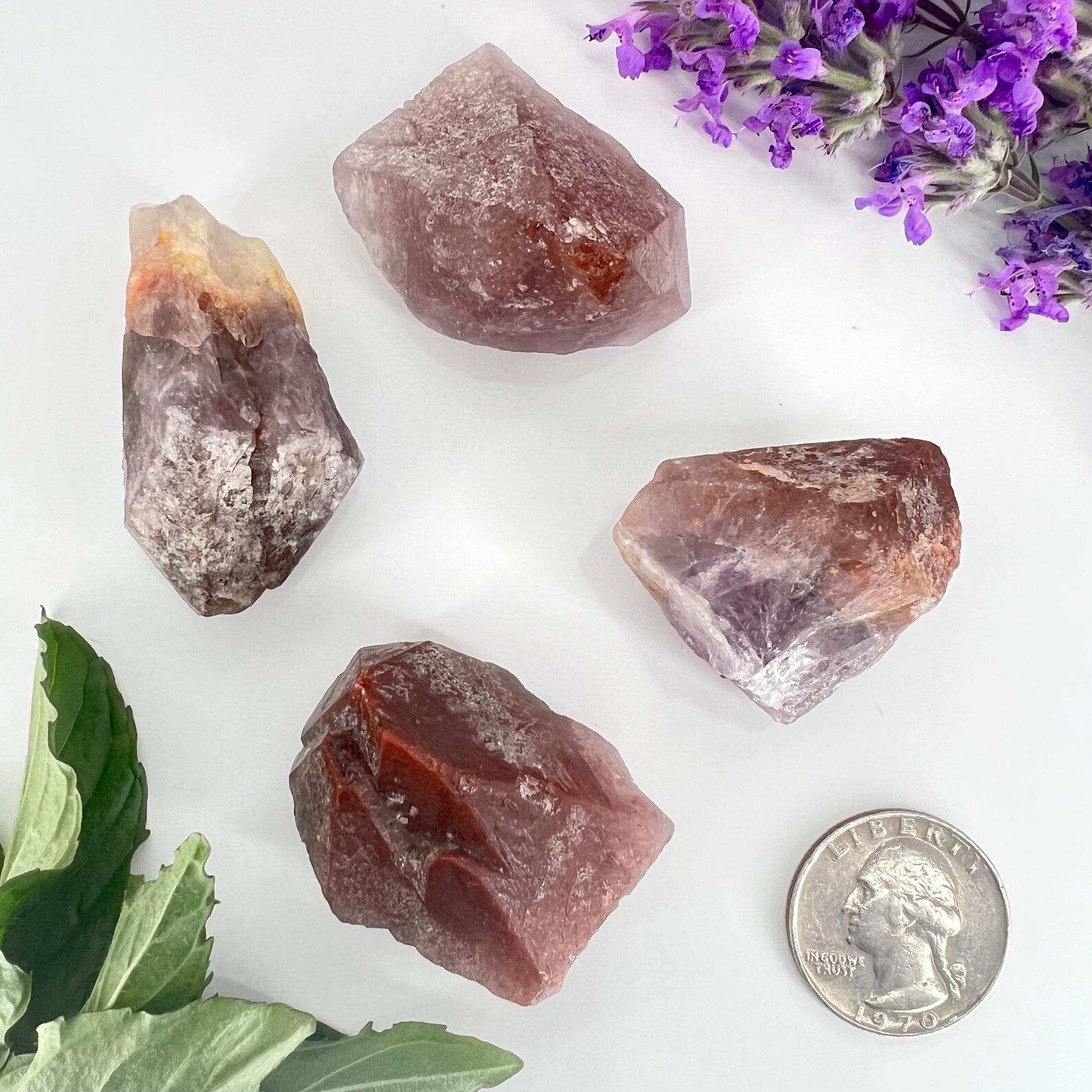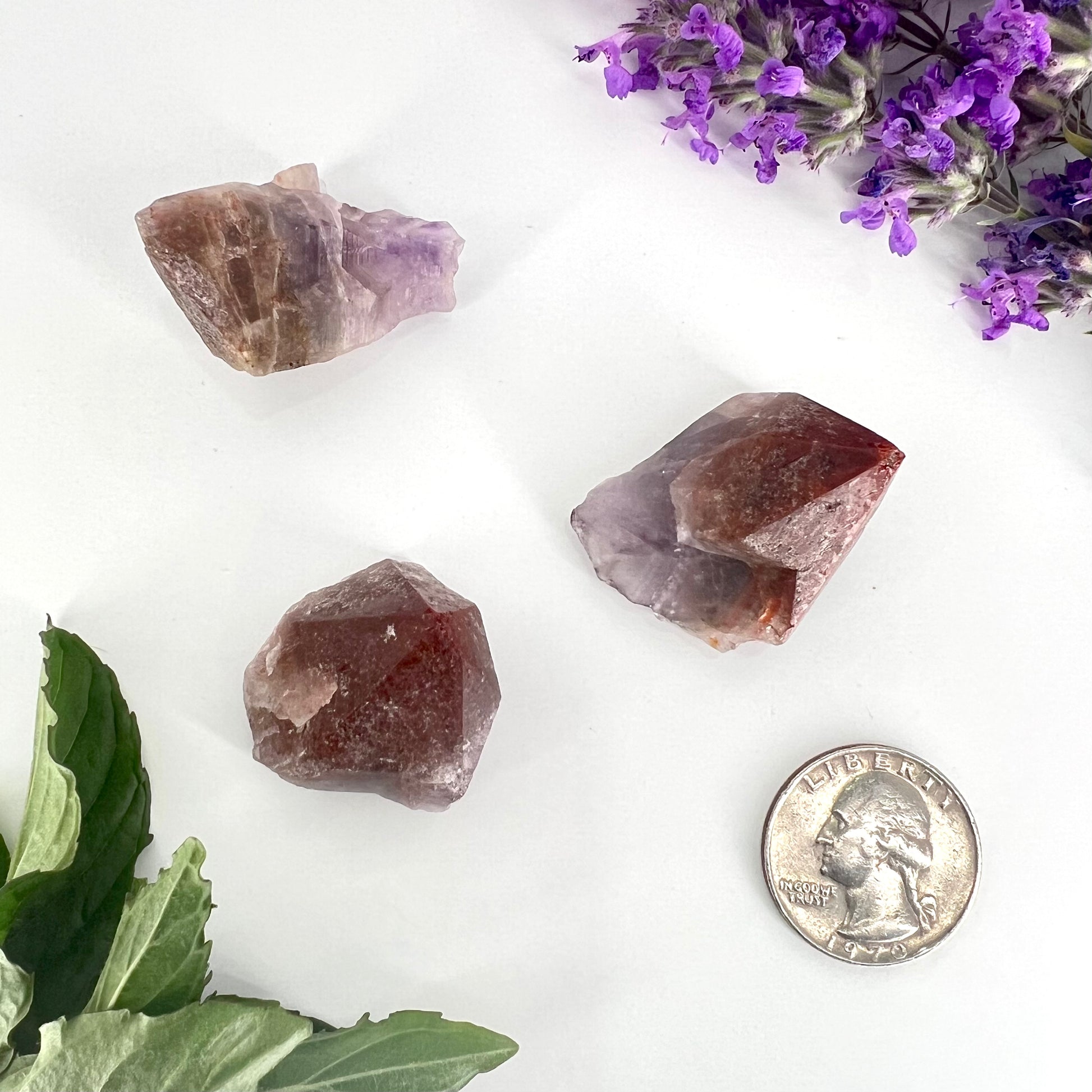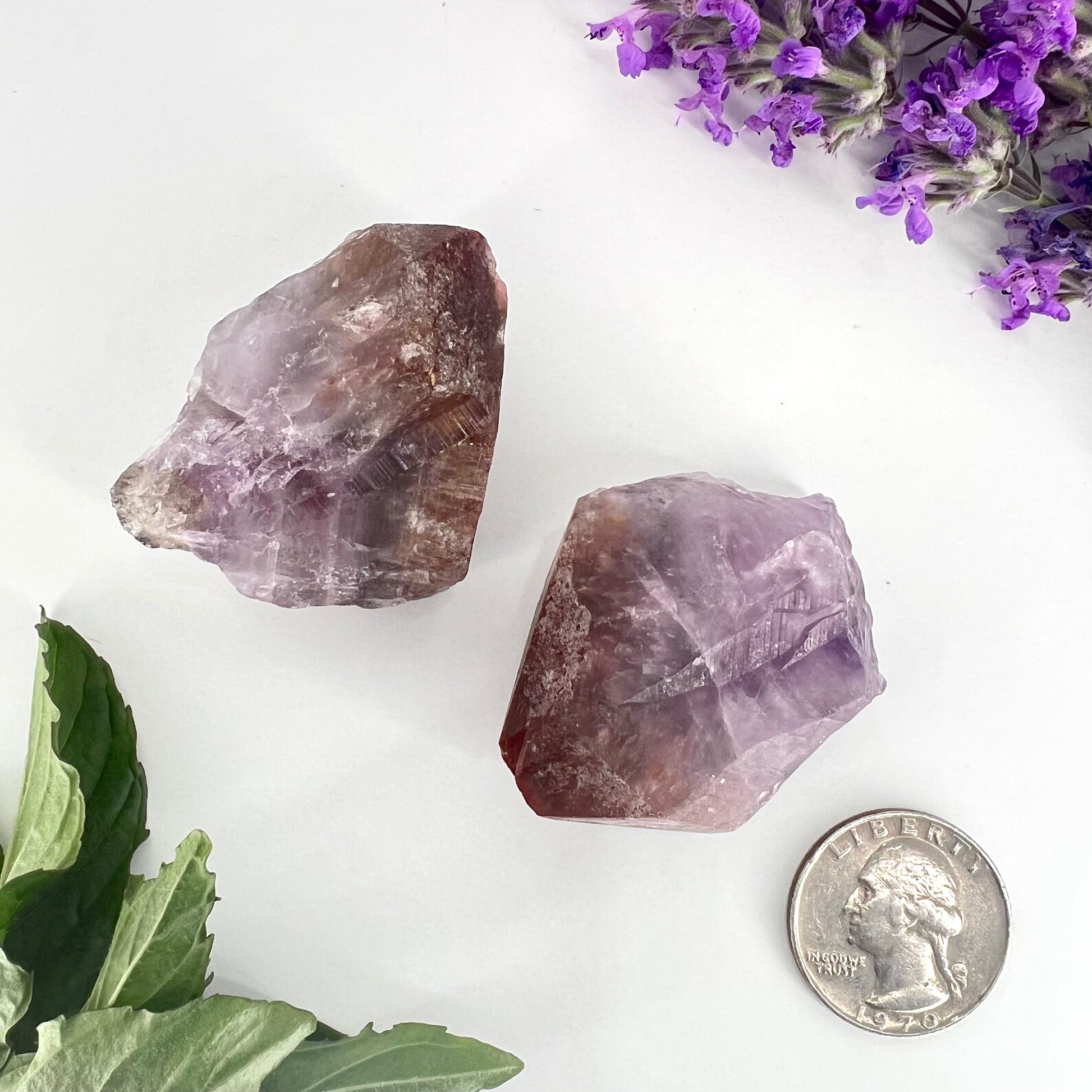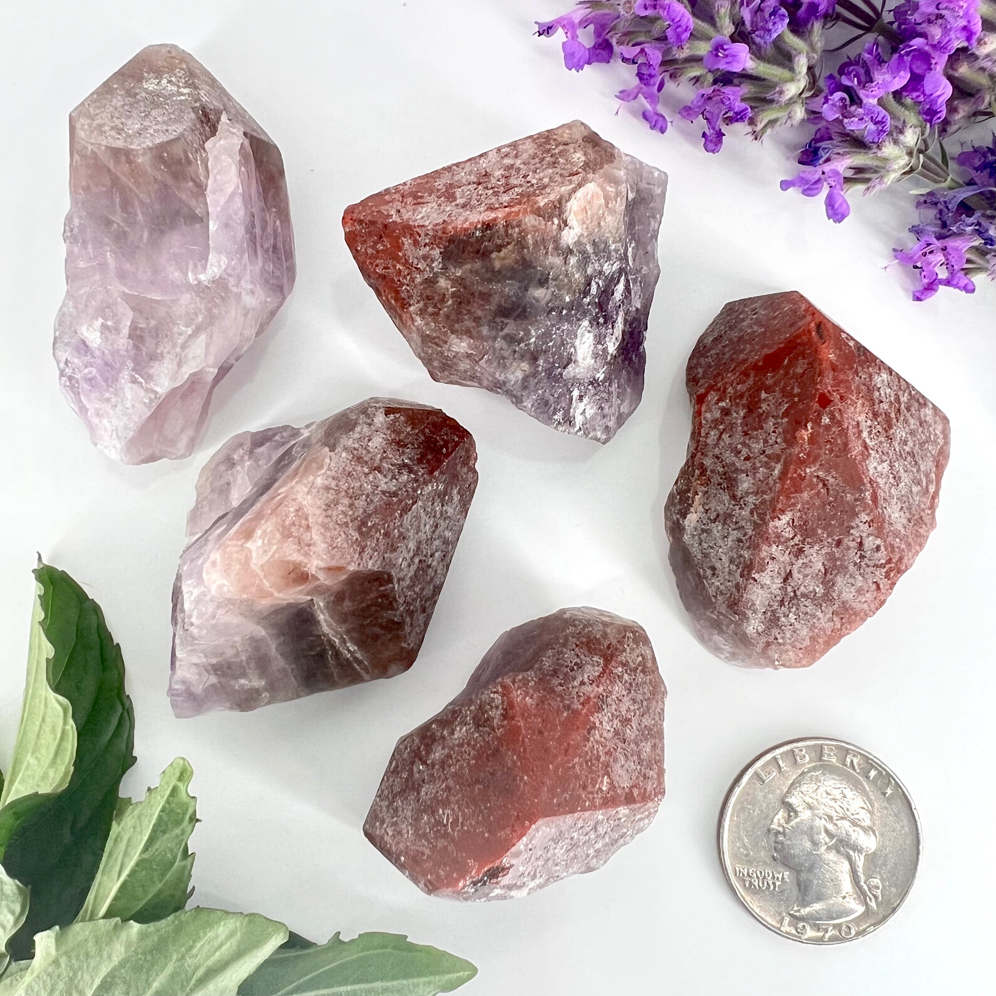 Red Cap Amethyst combines the energy of the Amethyst & Iron // It is considered a very protective & healing stone // Can help keep one grounded during spiritual work // Helps stimulate the movement of energy in the body & promote the continual flow of this energy within the aura // A known healer that has profound effects in balancing the Crown Chakra.