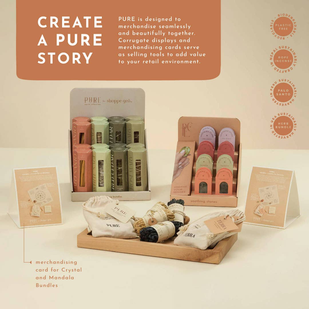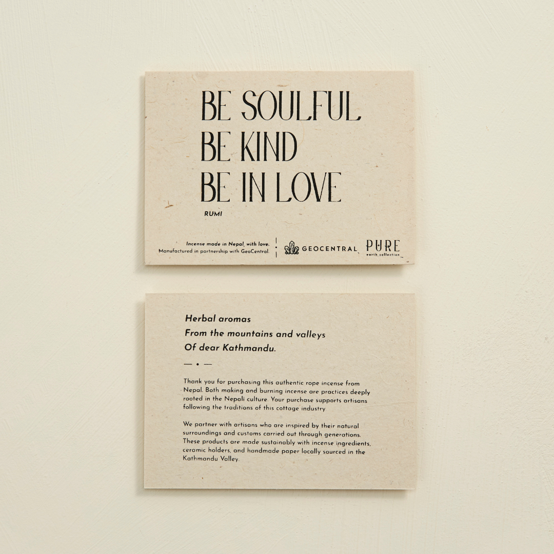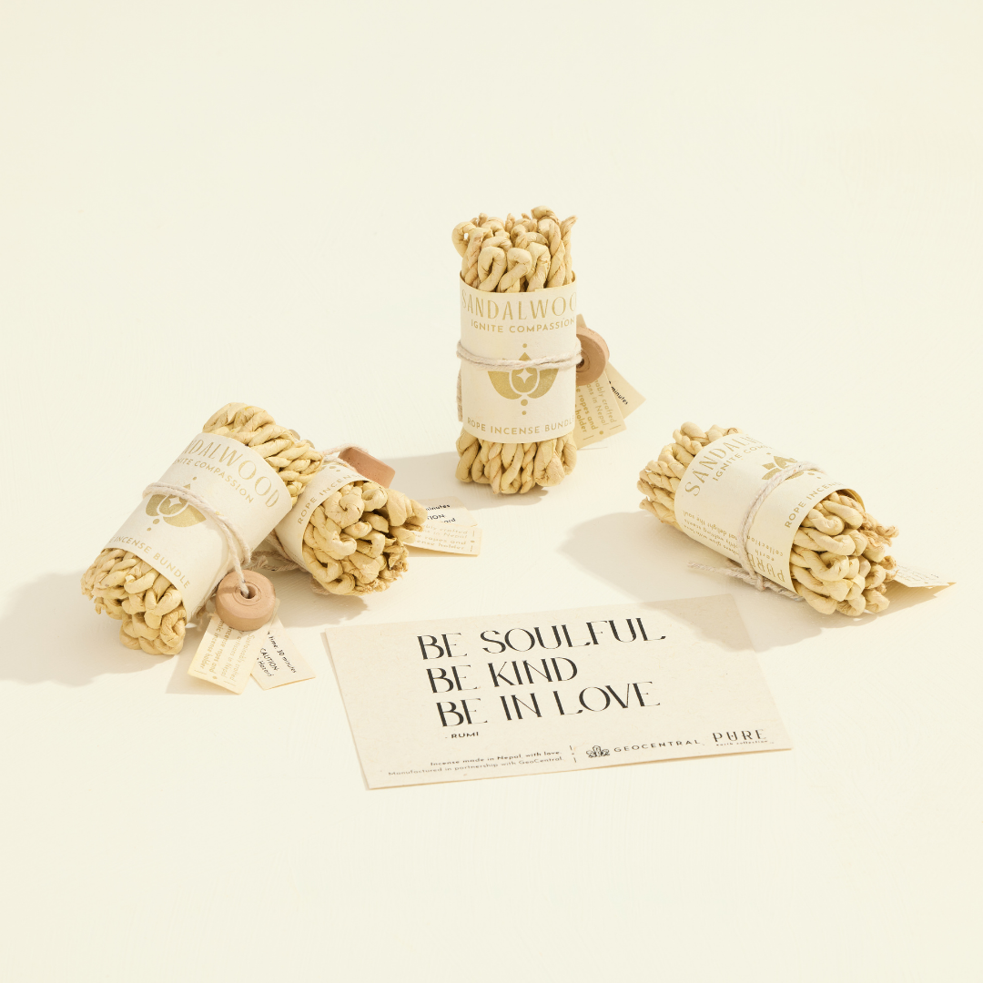 This product is part of our PURE Earth Collection. Each product includes: - 1 bundle of 30 pcs. sandalwood rope incense wrapped in undyed lokta paper // 1 pc. terra cotta incense holder