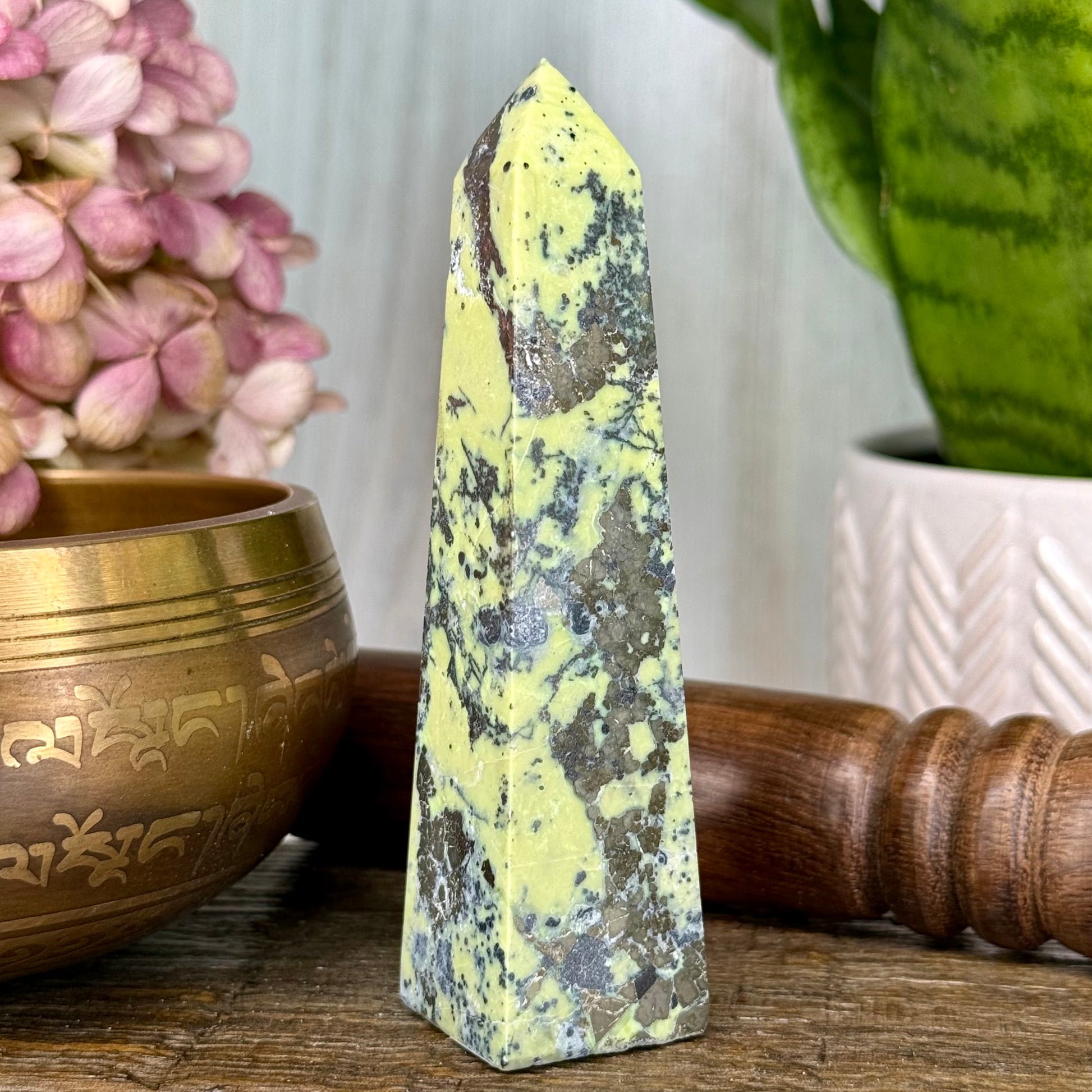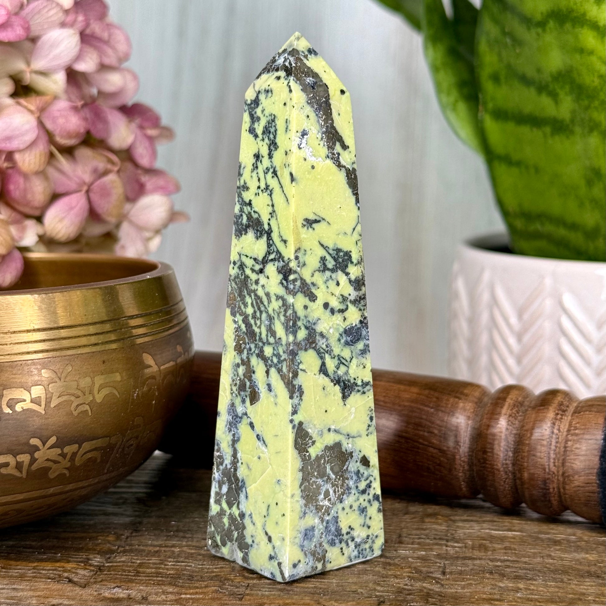 Serpentine has a harmonious connection with the heart center, assisting in self-love, compassion, and emotional balance // Helps dissolve sticky emotions, allowing for deep release and relief once past burdens are lifted // Teaches that true love must start within before it can be shared outwardly, acting as a powerful force in promoting love even in the darkest of spaces // Capable of realigning the entire Chakra system, making it an essential tool for energetic transformation // Serves as a driving force in altering one’s current life path, offering guidance, renewal, and a deeper understanding of life’s purpose.
