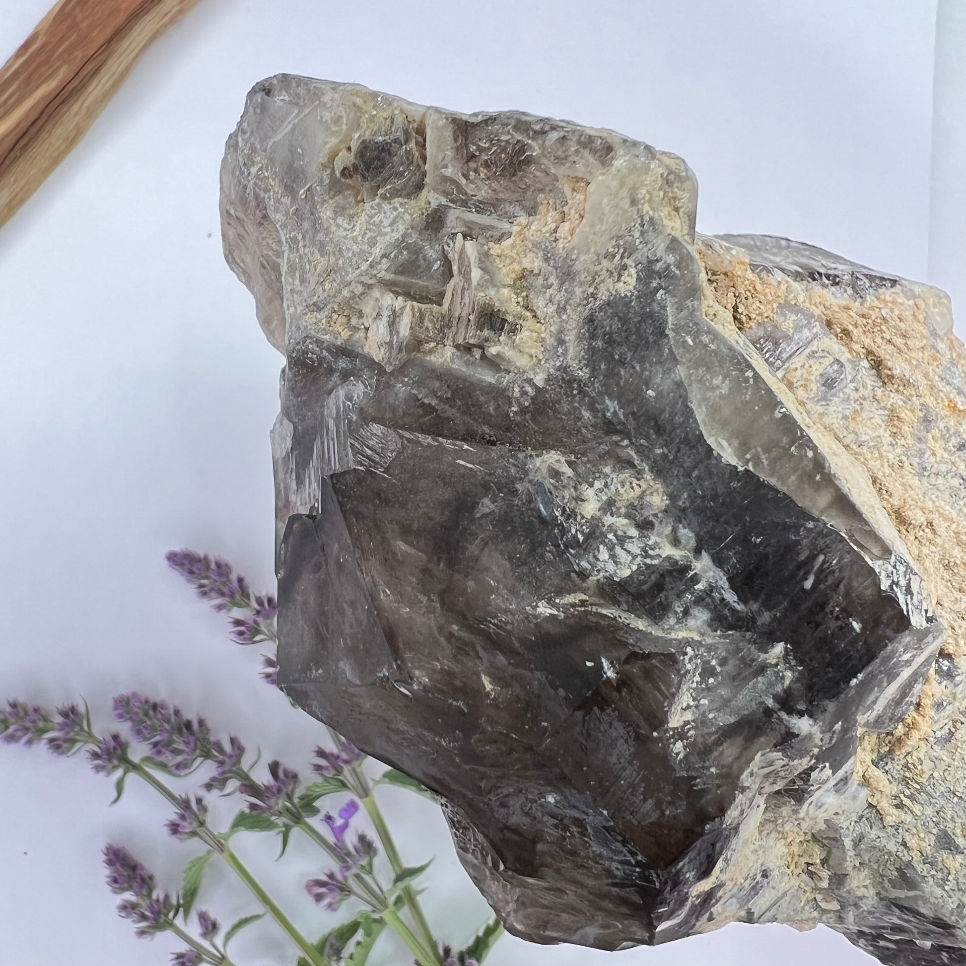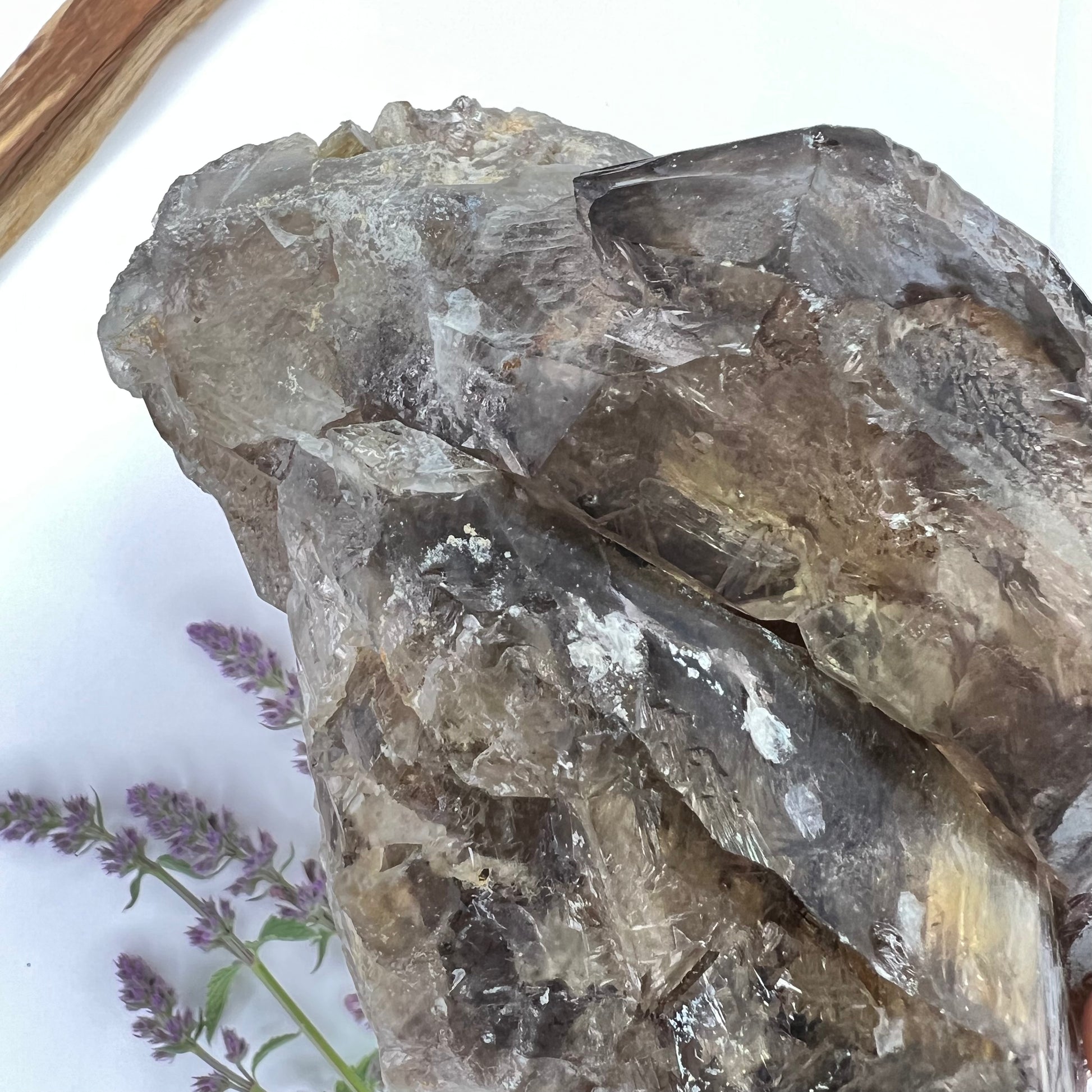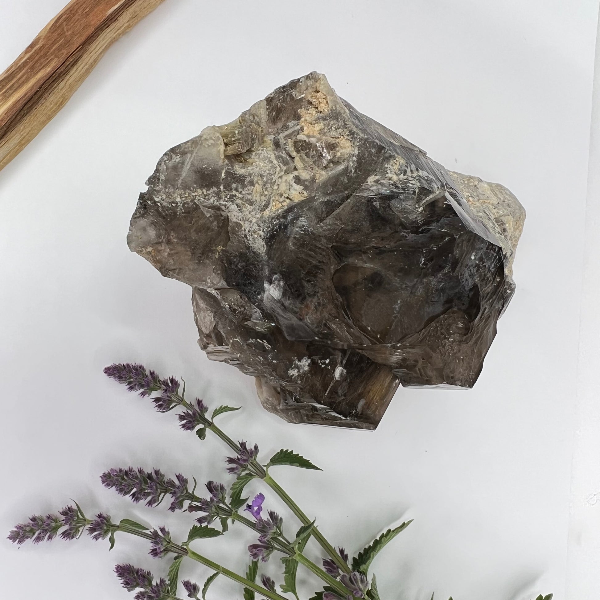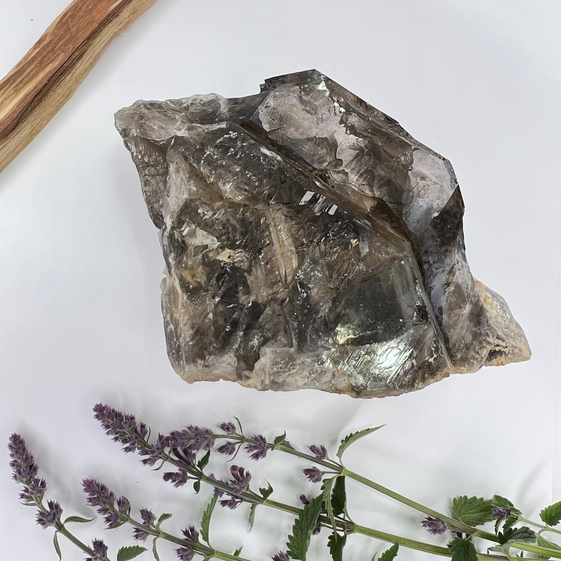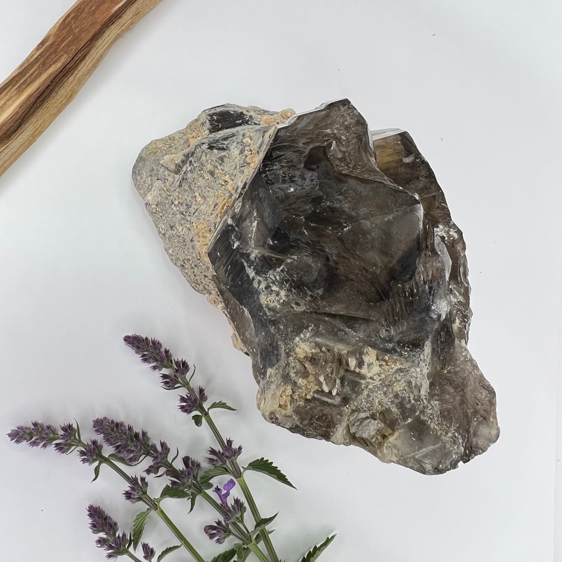 Smoky Quartz is a darker, translucent variety of quartz known for its strong grounding and protective energy // Found in Brazil, Switzerland, the United States, and Madagascar, it forms in igneous and metamorphic environments and is often discovered near clear quartz and feldspar // Its earthy tone reflects its ability to anchor the body while still raising energetic awareness.