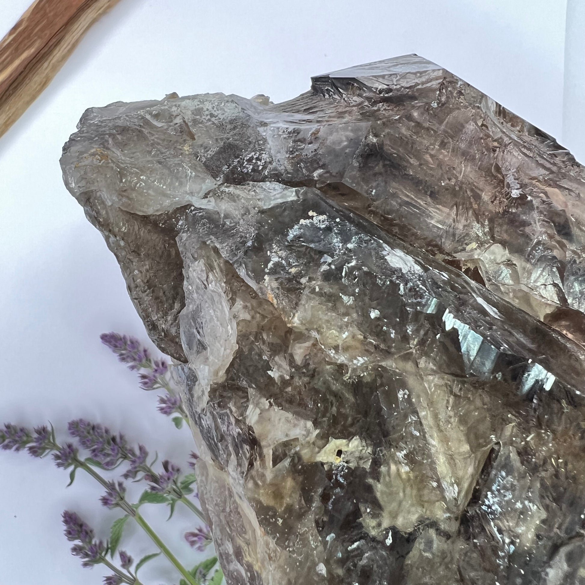 A stone of protection, presence, and clarity // Smoky Quartz grounds spiritual energy into the physical body, making it especially useful in meditation and energy work // It dissolves negativity, helps release fear and pessimism, and creates a strong energetic barrier against unwanted frequencies, particularly EMFs // Enhances focus, attentiveness, and clear communication, making it a powerful stone for group settings, business collaboration, and goal-oriented work.