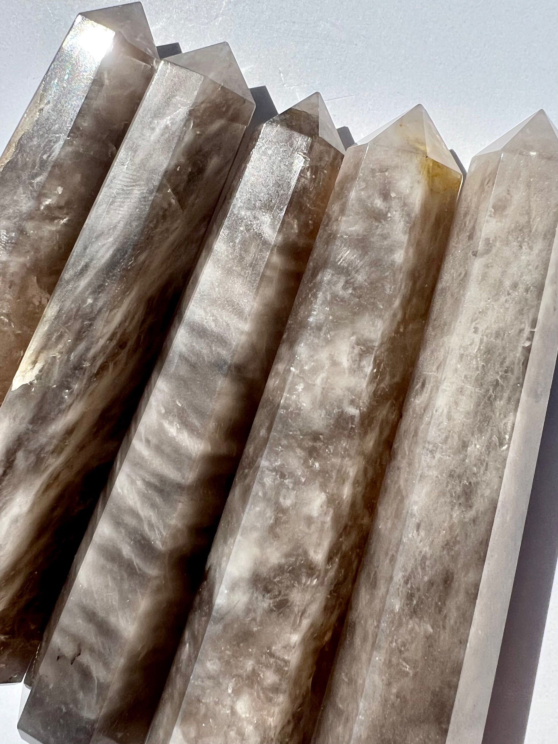 A stone of protection, presence, and clarity // Smoky Quartz grounds spiritual energy into the physical body, making it especially useful in meditation and energy work // It dissolves negativity, helps release fear and pessimism, and creates a strong energetic barrier against unwanted frequencies, particularly EMFs // Enhances focus, attentiveness, and clear communication, making it a powerful stone for group settings, business collaboration, and goal-oriented work.