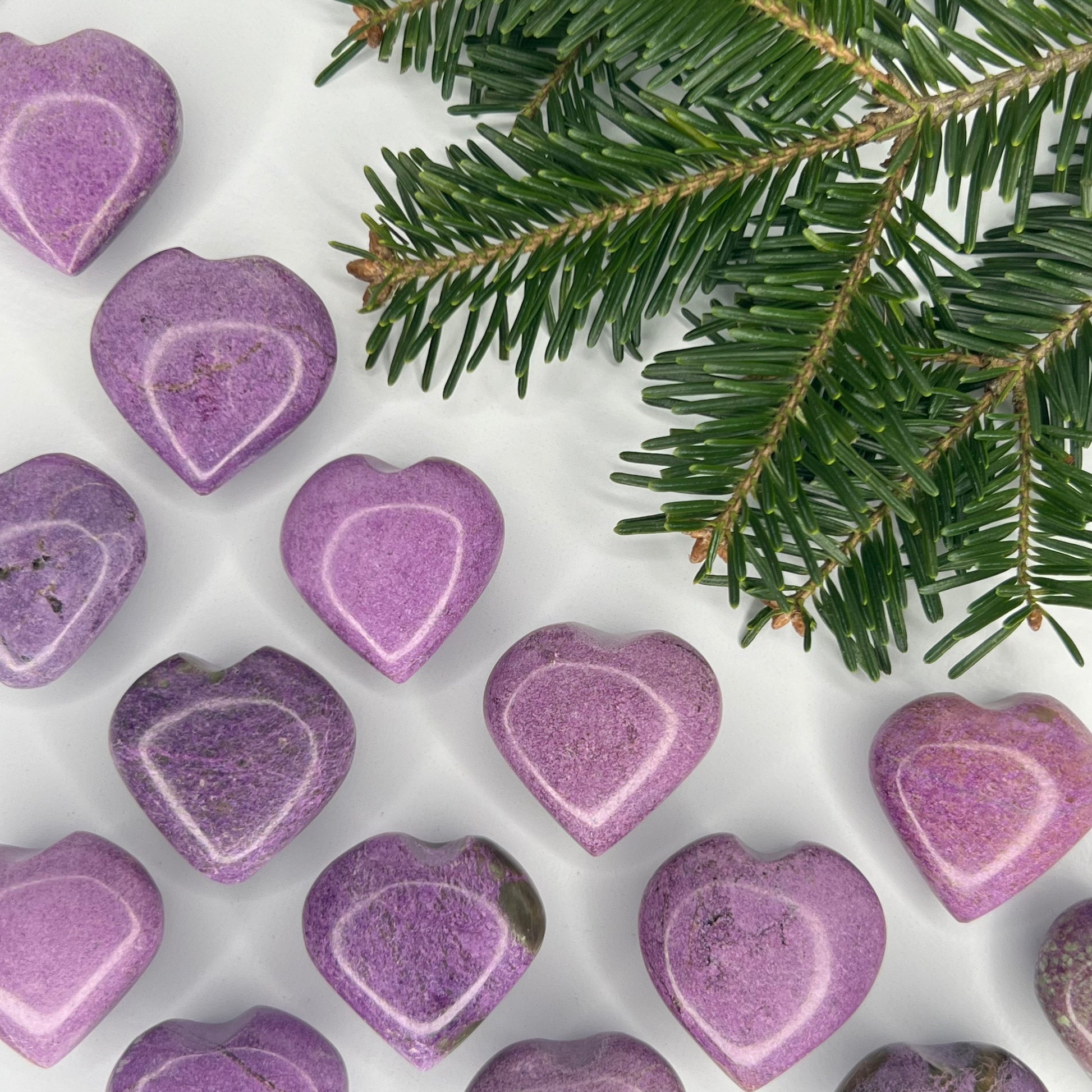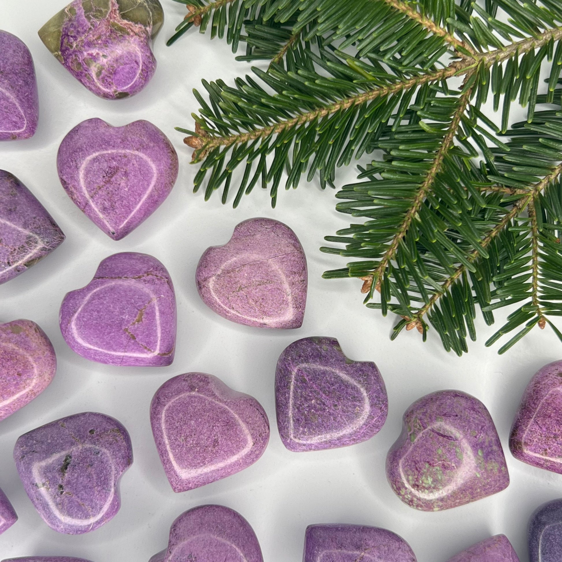 Stimulates Kundalini energies // Moves dormant energies at the base of the spine up through the chakras to the crown of the head // Blends the vibrations of love, forgiveness and spiritual illumination // Links the Heart and Crown Chakras // Emanates energies of protection from negativity // Purple Ray stone // Energy is stimulating to the higher mind // Soothing to the body and nervous system // Stone of love, unity and cooperation.