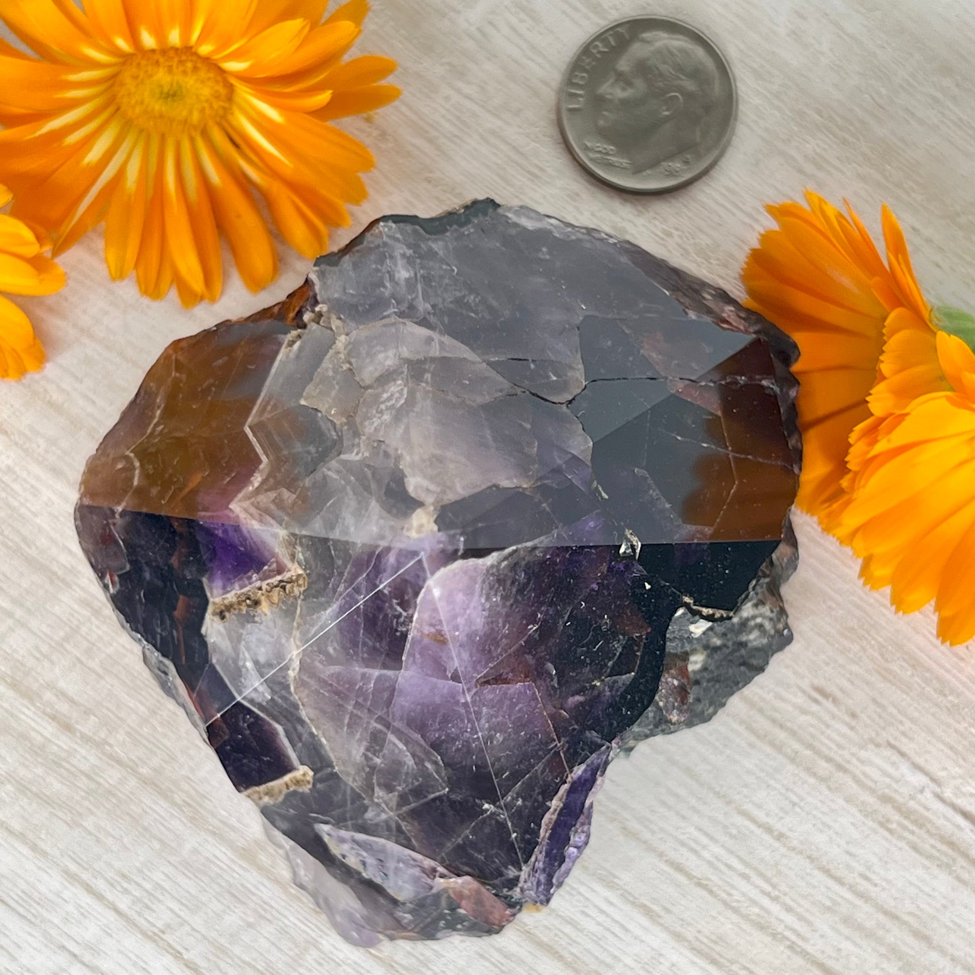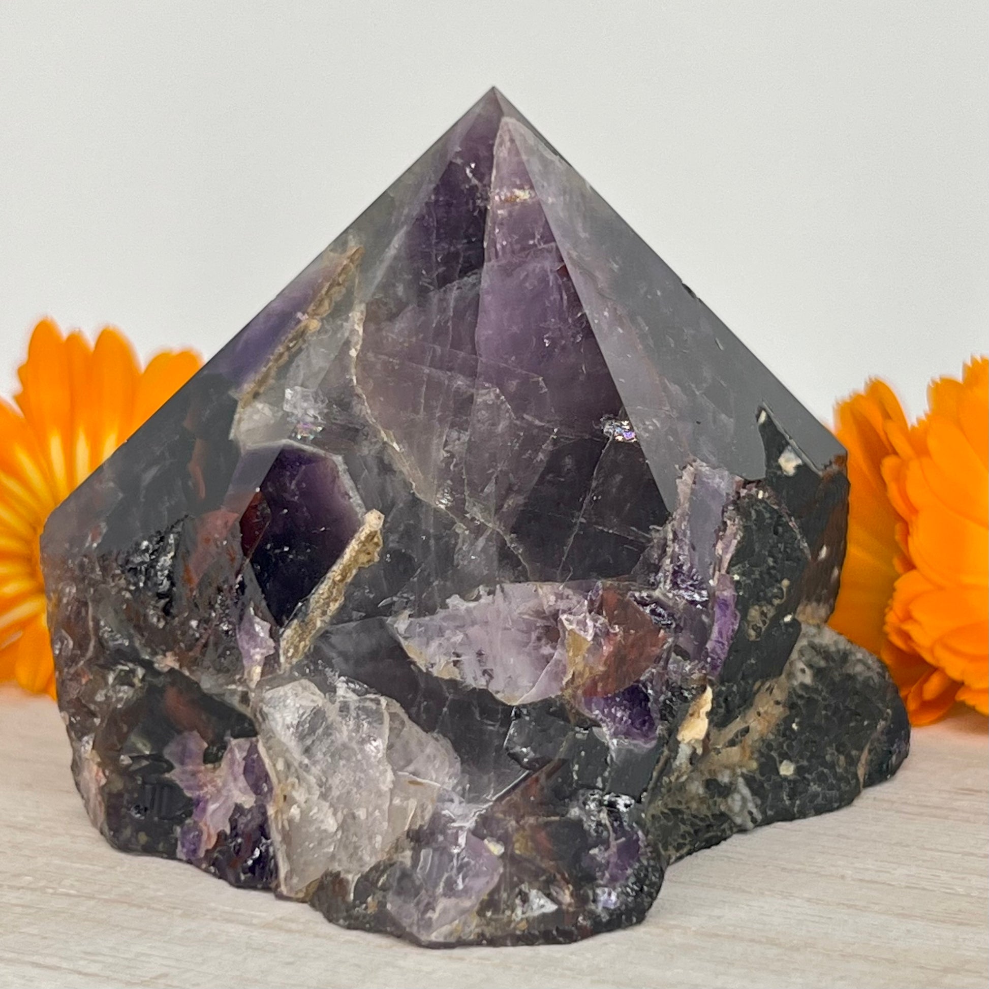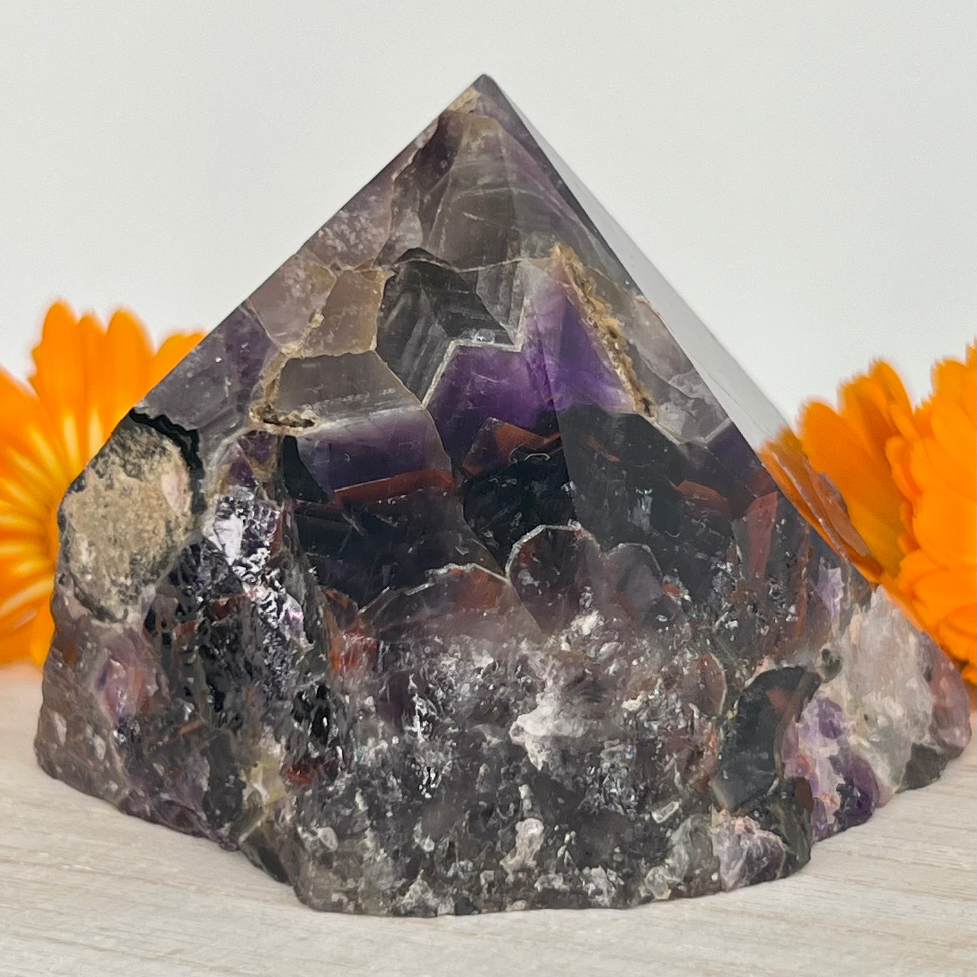 Found in Brazil, Super Amethyst Quartz is related to “Super 7” and can be comprised of different minerals, including Amethyst, Clear Quartz, Smoky Quartz, Cacoxenite, Rutile, Geothite and Lepidocrocite // The minerals in Super Amethyst Quartz can make it an extremely powerful & high vibrational stone // Has all the healing & metaphysical properties of each mineral // Aligning to all chakras.