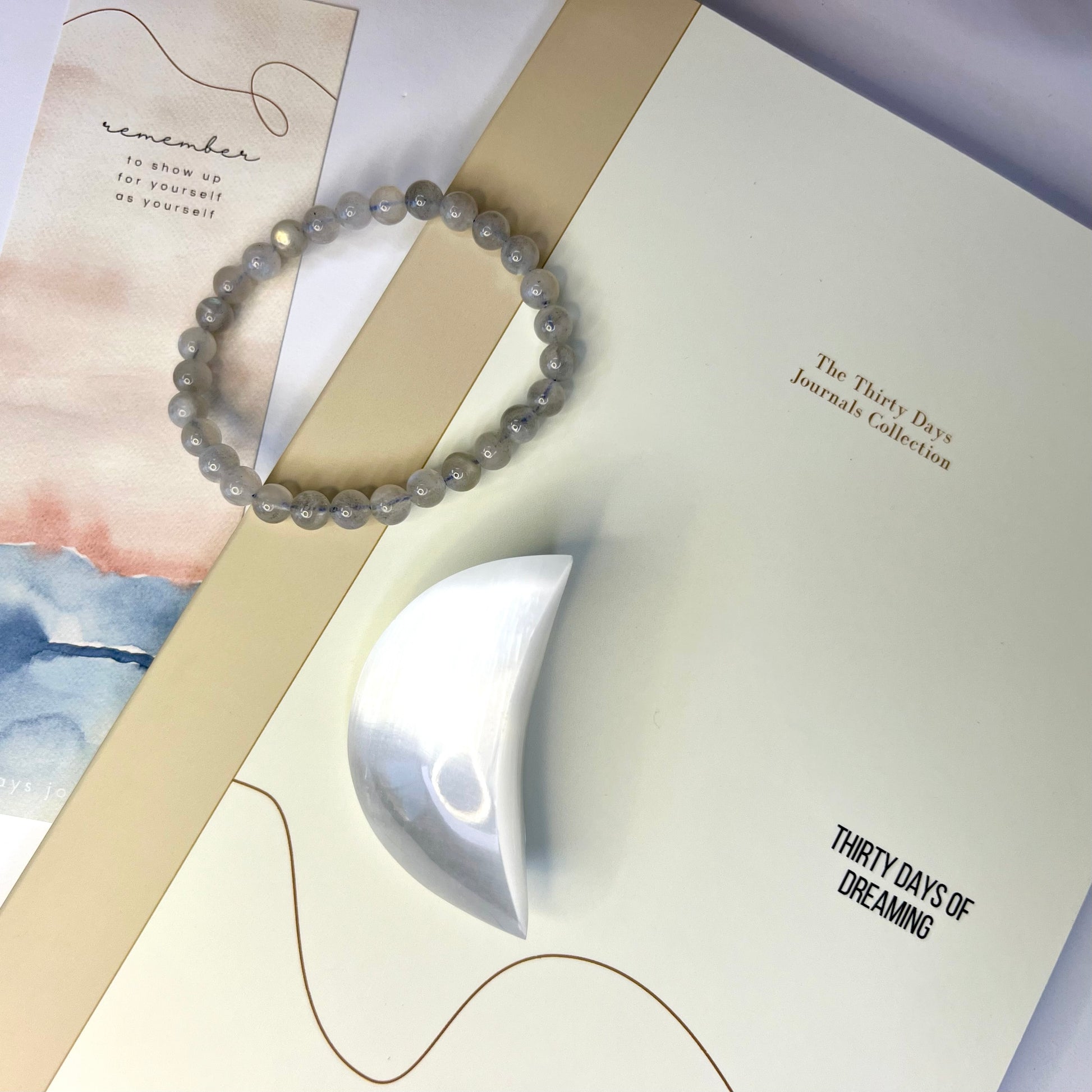 • Journaling // Use Selenite to create a peaceful environment, allowing its calming energy to help you focus and Labradorite to enhance intuition and inspire creative thoughts.