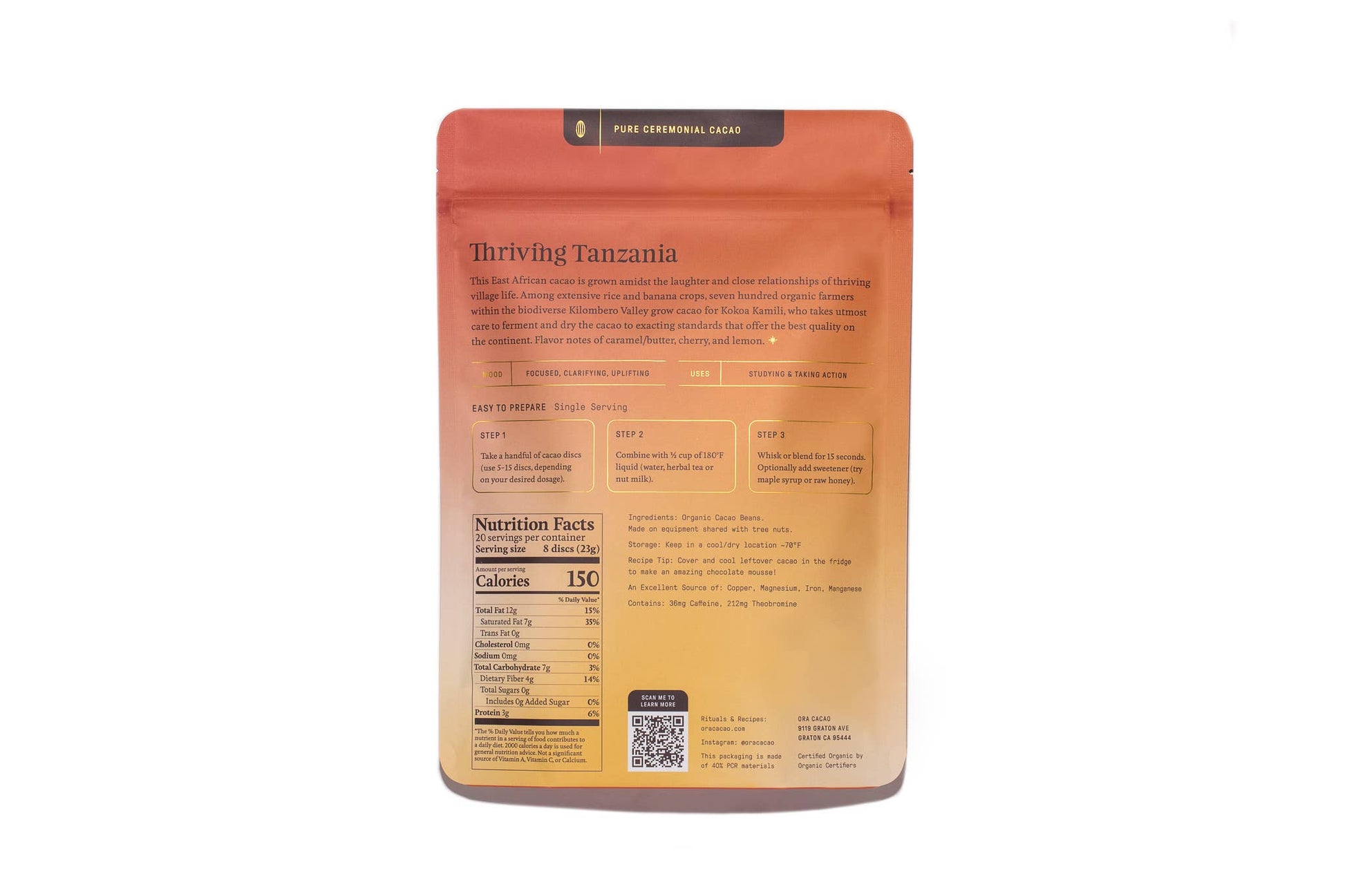 This ceremonial cacao comes from 700 small (0.5-2 acre) organic family farms in the Kilombero Valley, which borders Udzungwa Mountains National Park, a spot known for its biodiversity. Our partners here are Kokoa Kamili (Quality Cacao in Swahili), and their model is inspired by our partners in Belize. In its first three years, Kokoa Kamili farmers have received the highest prices for cacao in Tanzania.