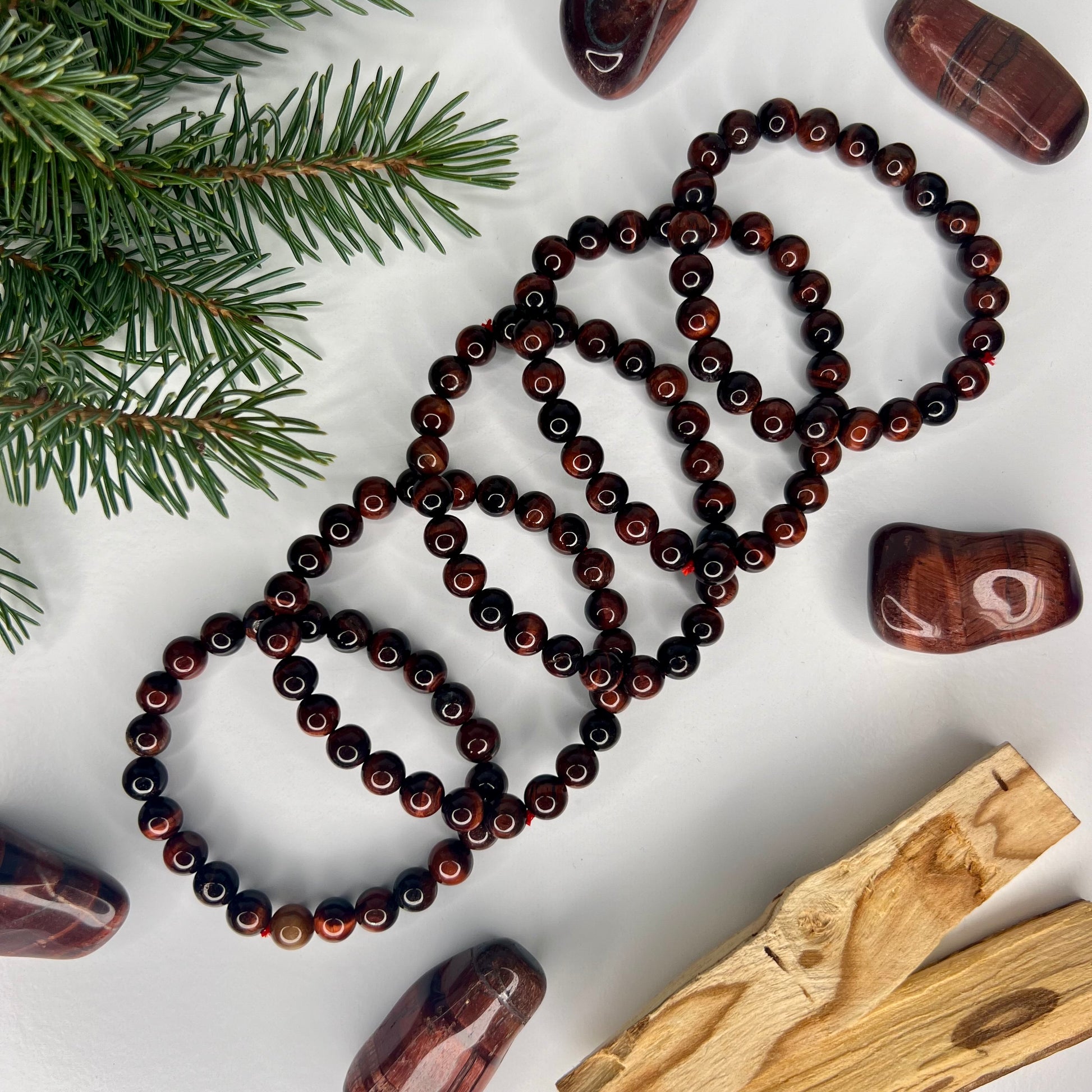 Red Tiger Eye is a variety of Tiger Eye, recognized by its deep red and reddish-brown tones that shimmer with a silky luster // Forms in Quartz-rich environments, often near Hematite and Jasper, and is primarily found in regions such as South Africa and Western Australia // The rich coloration comes from iron content, giving it a bold yet grounding appearance that mirrors its energetic properties.