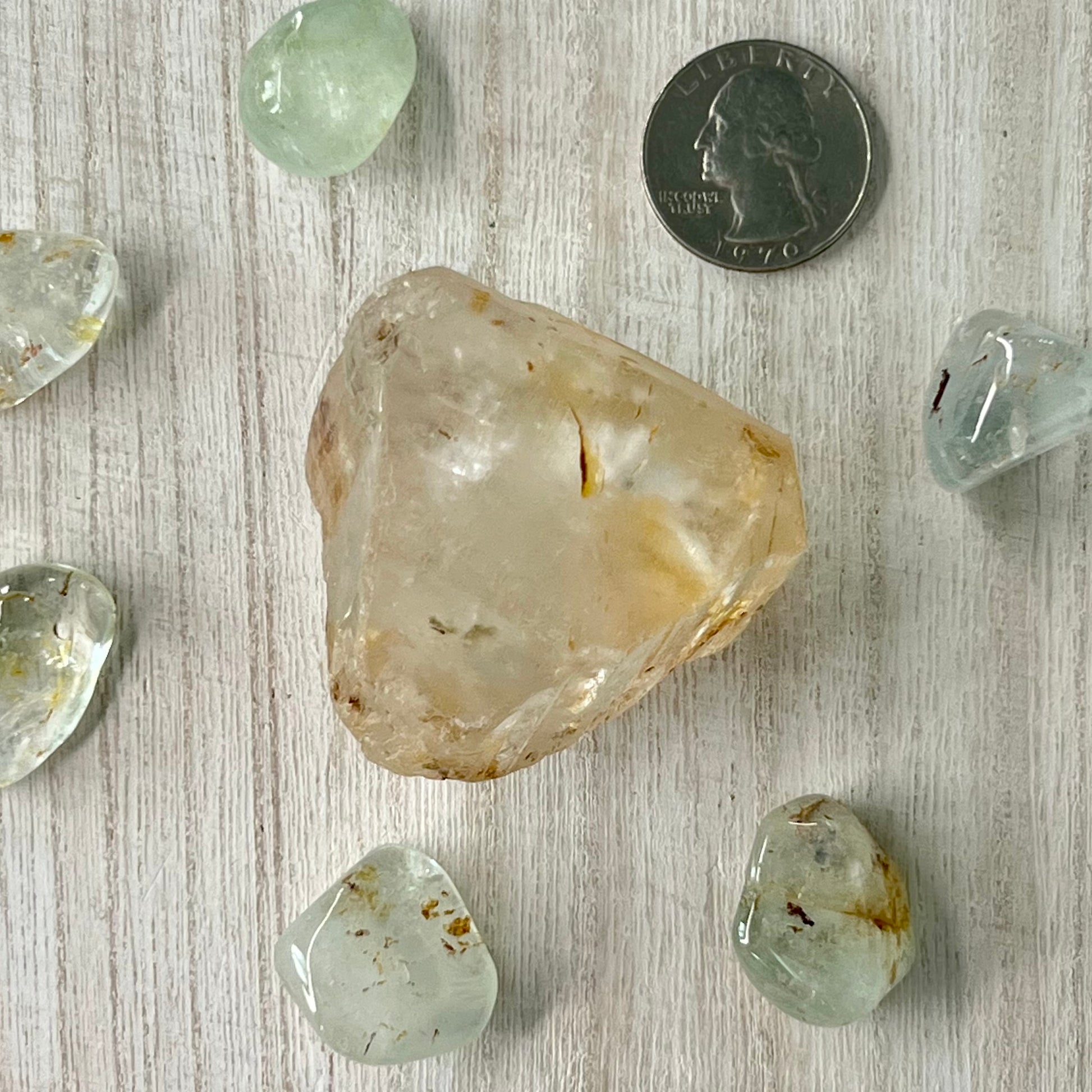 Blue Topaz // Helps integrate lessons & gain knowledge from experiences // Helps to calm the mind for meditation // Helps in communication with higher spiritual beings // Has a calming, soothing effect on the emotional body // Can facilitate communication of deeper feelings & highest truth // Provides an enhancement of mental processing & verbal skills // Improves attention span & ability to concentrate on mental tasks // Reflects the energy of the mind & of knowledge // Gently open the Throat and Third Eye chakras, facilitating the communication of visions & knowledge // Helps express emotions & needs // Promotes sharing, communication, learning & mental perception.